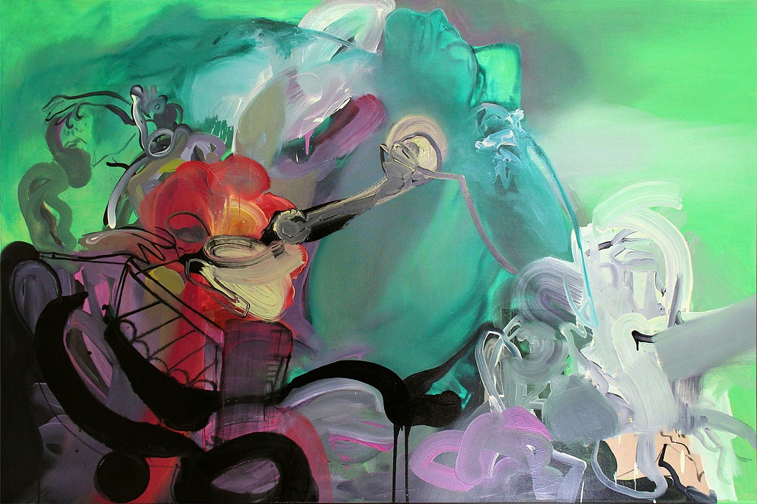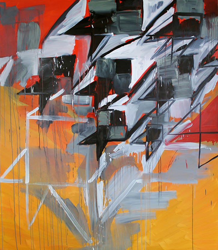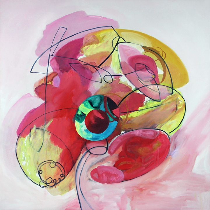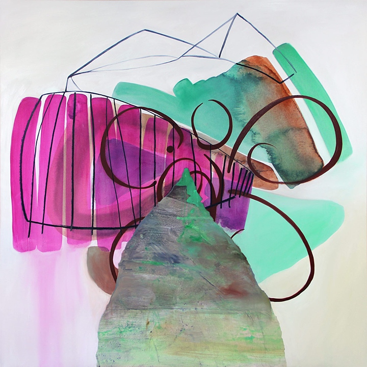 Staker is an abstract artist based out of Chicago. Available on her website are a multitude of paintings, but Staker coins herself as more of a mixed media artist. Her paintings are characterized by vibrant color choices, gestural strokes, and contrasting organic and geometric elements. Though in control of her pieces, Staker is also not afraid to let her paintings act like paintings and embraces drip accents.