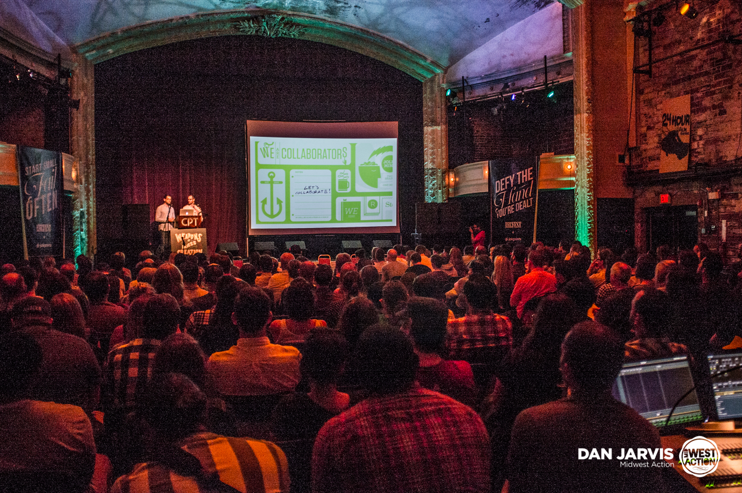 If I ever found myself with some spare time, I wandered to the Marketplace upstairs and had no problem filling it. Arranged in two rows were poster artists, crafters, printers, entrepreneurs – all sorts of sellers that supported the Weapons of Mass Creation Fest mission and creative spirit. The photobooth gave everyone the opportunity to throw money around and wear giant hats, and the vendors offered up great conversations and even better bodies of work. We left each day with a tube full of gig posters.