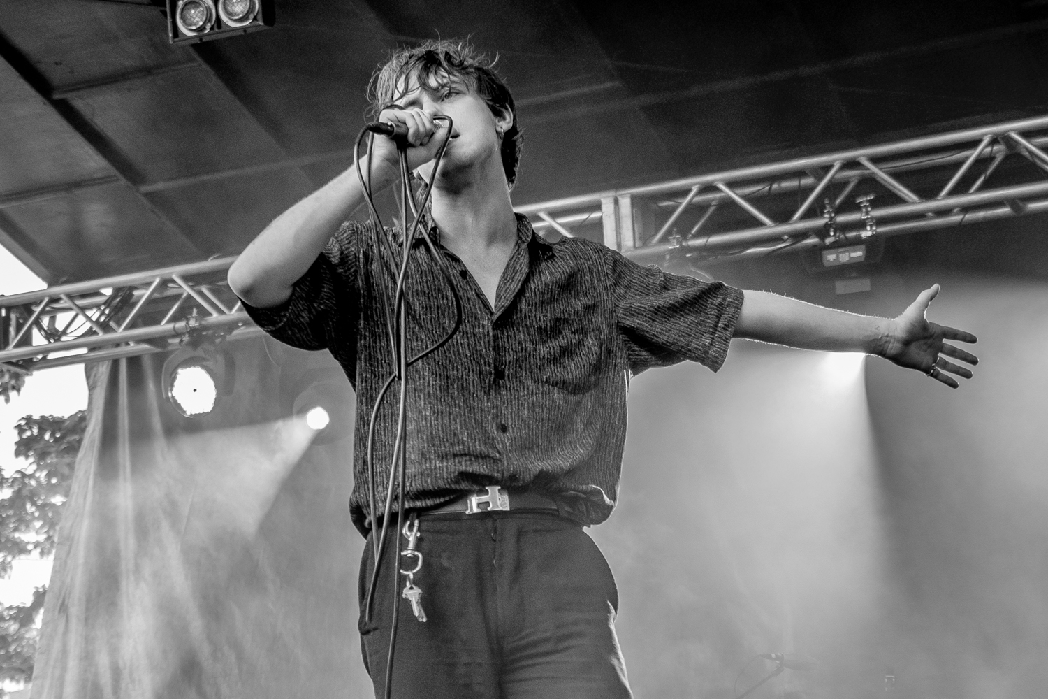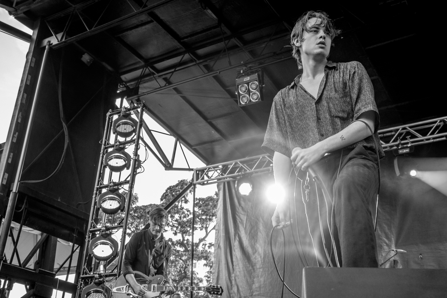 Ryley Walker and Jessica Pratt performed one after another on the Blue Stage, tucked in the corner of the festival grounds. They were each worthy of the chill opening spots for the festival, as the crowd slowly filled in and enjoyed some damn skillful folk and acoustic tunes. A light breeze occasionally cooled the crowd down, and clouds rolled by overhead. It was very hot, and the audience wasn’t rowdy, just in the mood to listen and enjoy. Even when ILoveMakonnen’s subs interrupted Jessica Pratt’s otherwise intimate set, the crowd only huddled in closer.