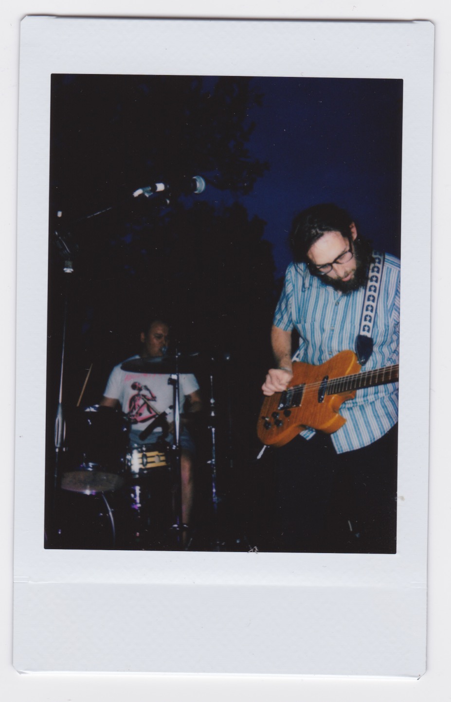ALEX: all the different instruments were recorded in different spaces so we had to figure out where we could do what and how we could work with the space. at the magic shop, bill hung up a bunch of curtains and things to deaden the room. when we recorded guitar, we stuck a mic in an adjacent bathroom to get a weird resonant ambiance. we used what we had in terms gear and we ended up borrowing some stuff for drum tracking. when we recorded guitars, my interface crapped out on me and we had to drive an hour to the nearest guitar center to get a new one.