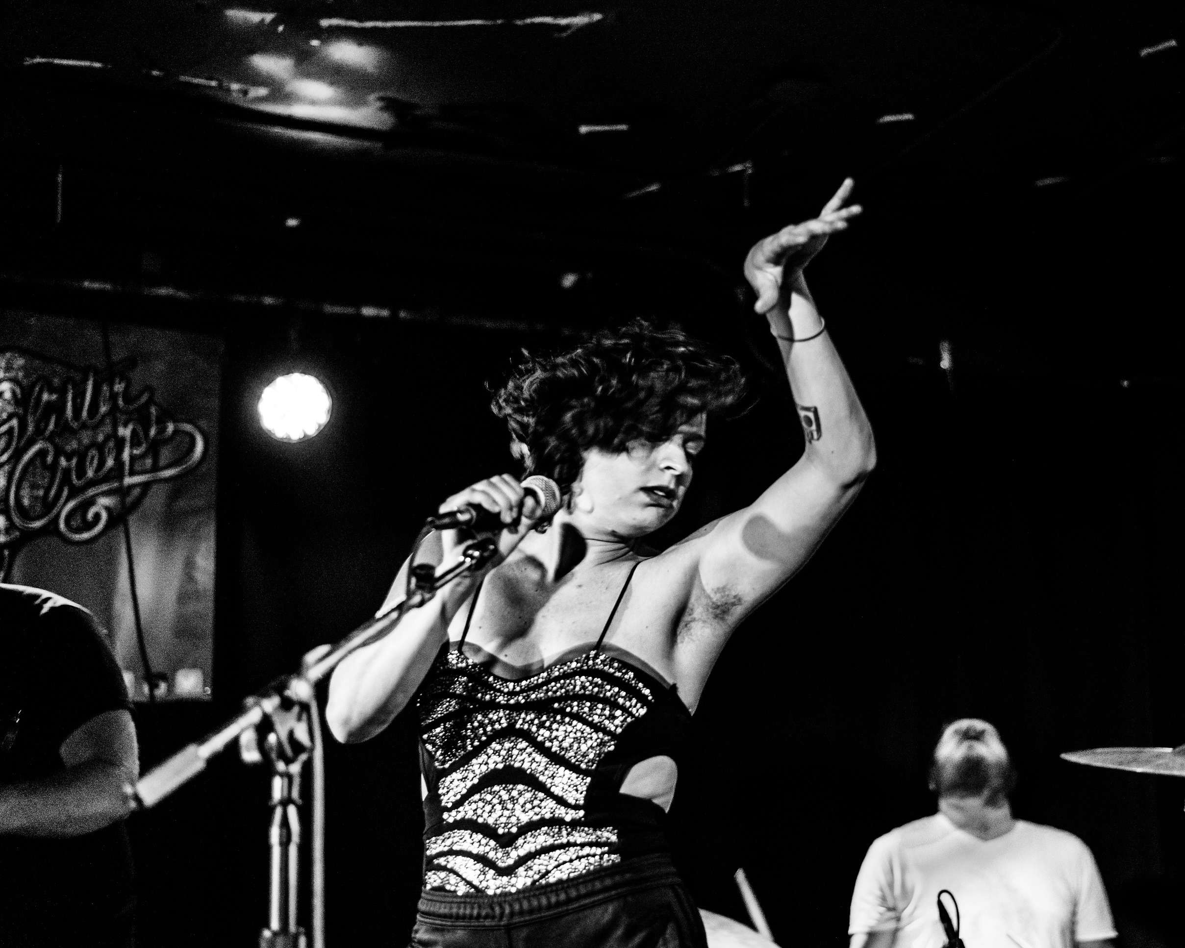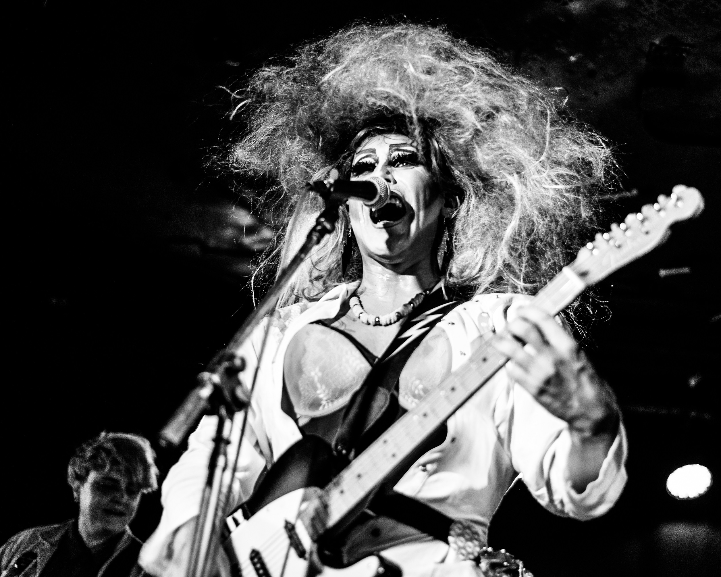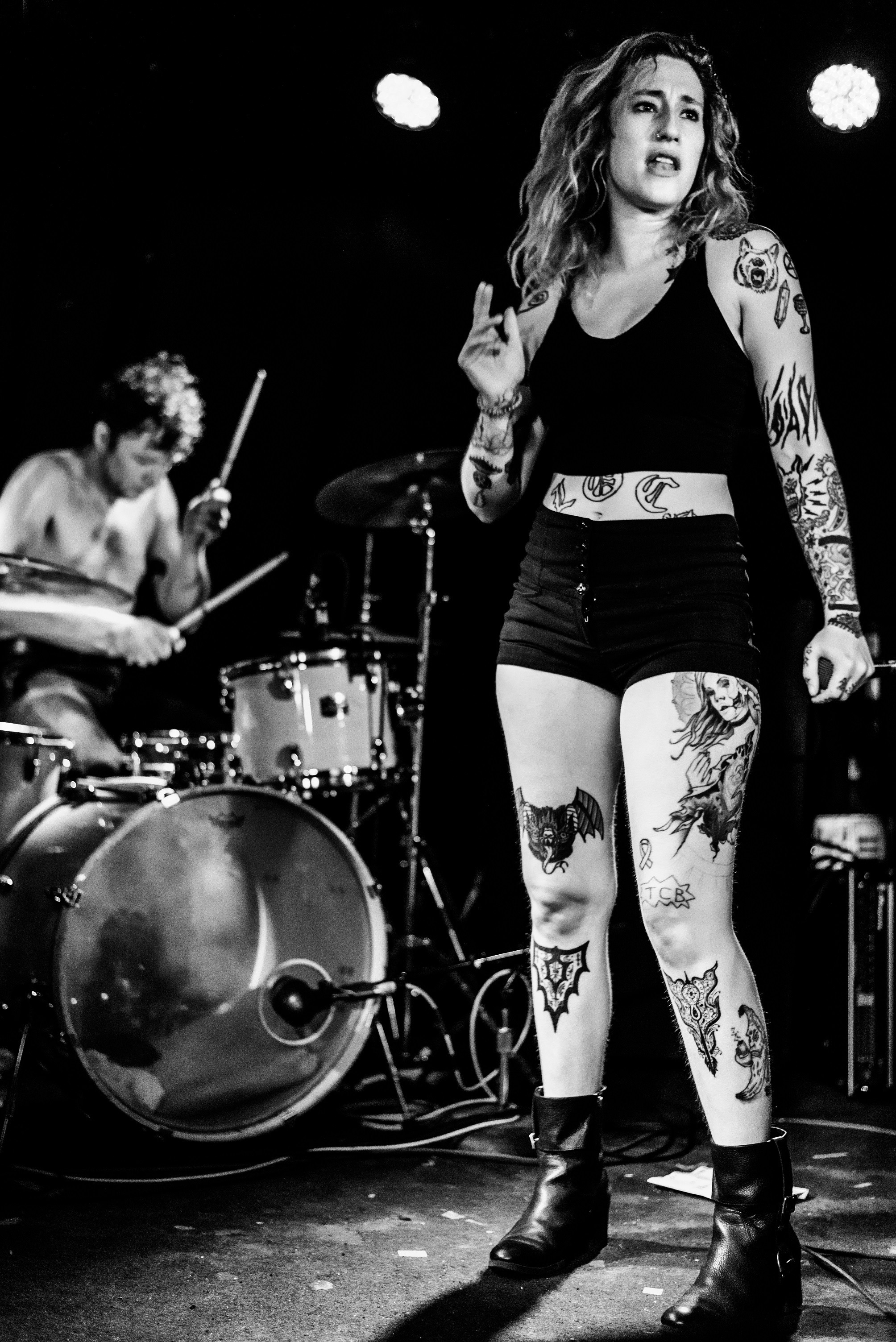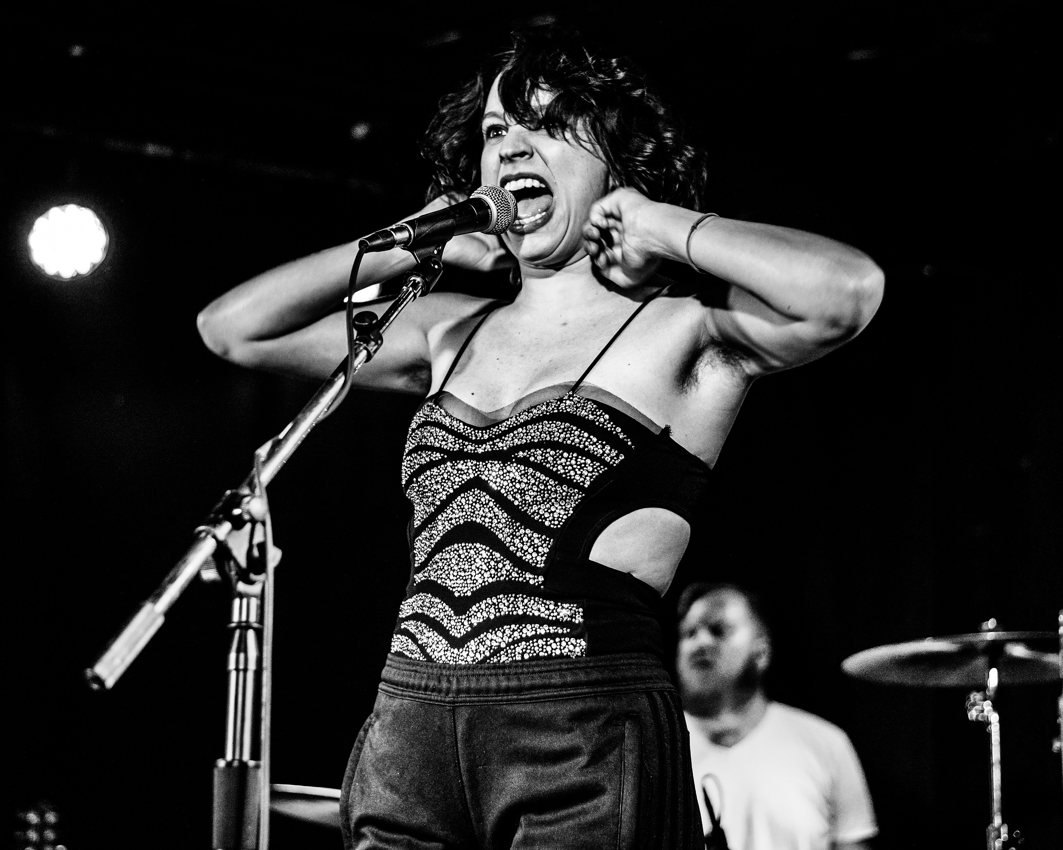 A Giant Dog opened their set with my favorite tune, “Photograph”. It might just be the perfect punk rock love ballad. The sound was perfectly balanced, and I could hear every word Sabrina sang. I love their music–indie rock that perfectly pulls and blends from many areas and eras of rock–and simply hearing it played live would have been enough to make me happy, but seeing the performance definitely took my admiration to another level. The whole band puts it all out there, tight and fast and headbanging. But, it cannot be denied that Sabrina is creating an experience with her performance. The way she moves around the stage is confident, awkward, sexy, and experimental. She engages the audience in a way that makes it absolutely clear she is here to challenge us and be worshipped by us.