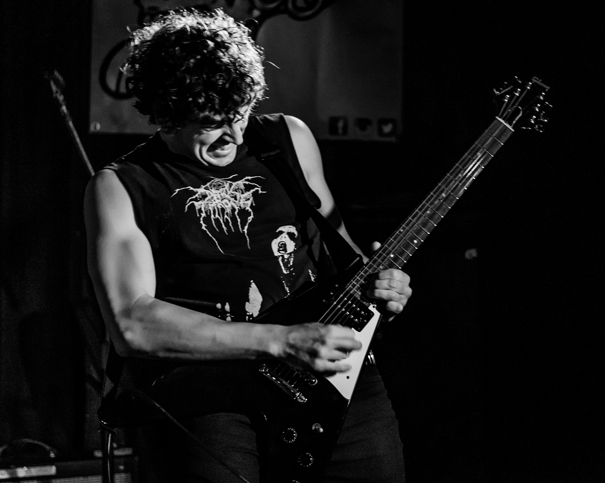 I was standing too close when Hitter started up. The volume was Empty Bottle’s classic teeth vibrating loud and the vocalist was wailing more than singing, so I had no idea what she was singing. I admit I was a bit shocked when someone in the audience yelled, “Turn it up!!!” Perhaps they were being sarcastic? It doesn’t matter that I can’t understand the lyrics, I do not regret being as close to the action as possible. This music is noisy and visceral, even if I have no idea what it is lyrically about, I felt it and was not bored for one moment watching it.