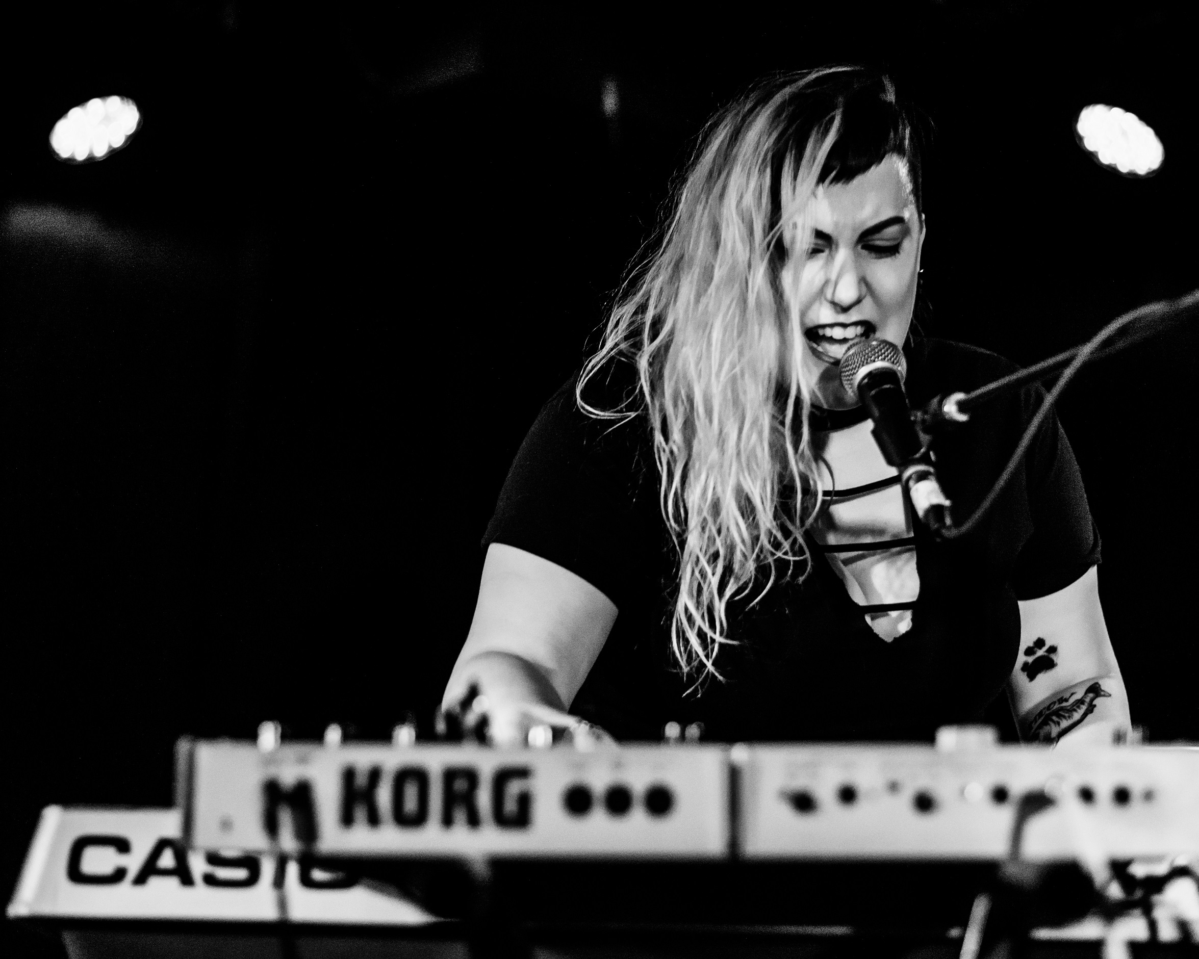 Absolutely Not consistently kicked ass, playing a set full of contrast and sharp turns. The surprises kept my attention; just when I thought I knew what the song was, something new happened that caught my ear and made me even happier. The deep fuzz noise was suddenly cut through with melodic keys. A delightfully percussive song turned languid. The vocals went from guttural to falsetto screech. Throughout, they kept up a rhythm that was driving and angry and bouncy. It was all perfectly designed to inspire the audience to break out into a happy mosh. Check out their song “Blue Boys”, it really killed live.