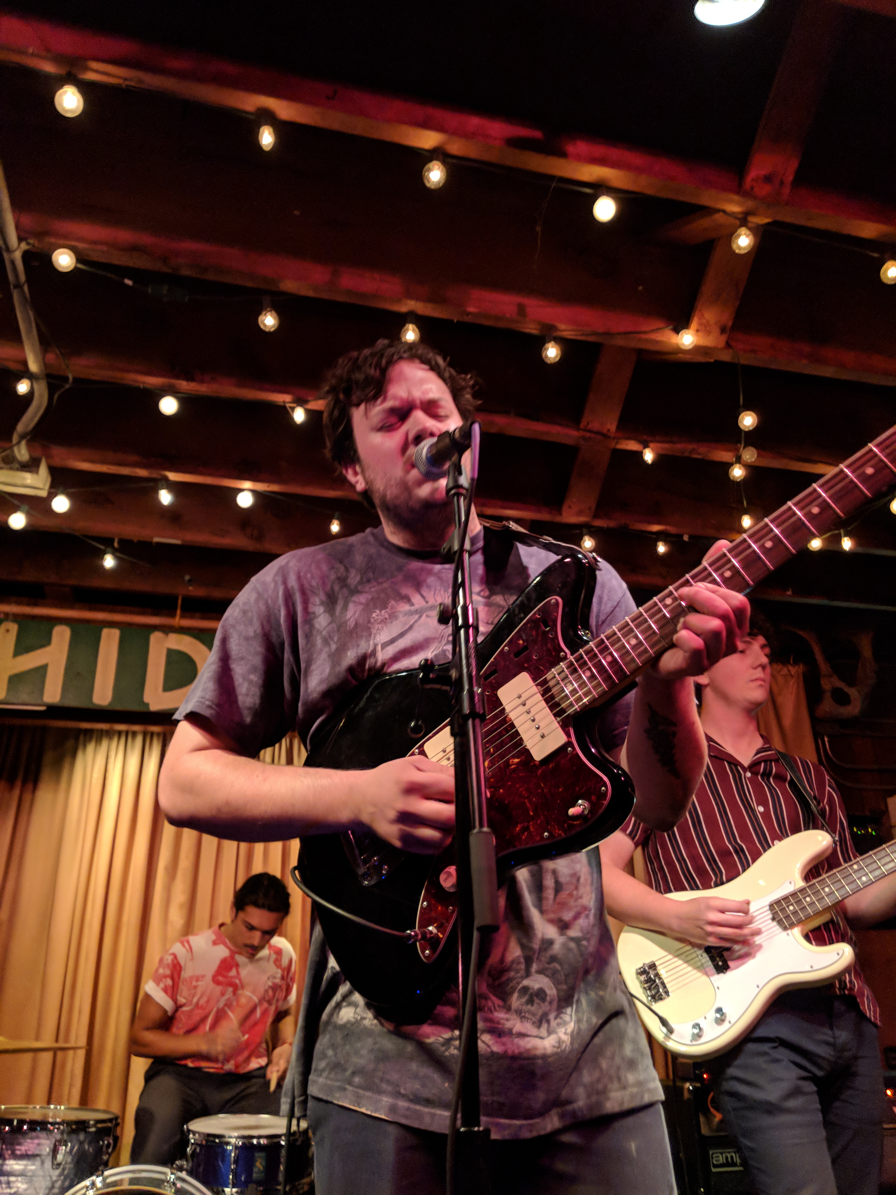 I listened to a number of Deeper‘s tunes before the show, but gained a new appreciation for their music after seeing it live. The lead vocals, in particular, had more clarity, and Nic delivered an aggressive performance. The drummer used a stripped-down kit and kept the beat light and punchy. I love how the jangly guitar cut through the rumble. The musicians’ attitudes were serious, driving their sound. The whole performance came together bouncy, yet, kind of angry.