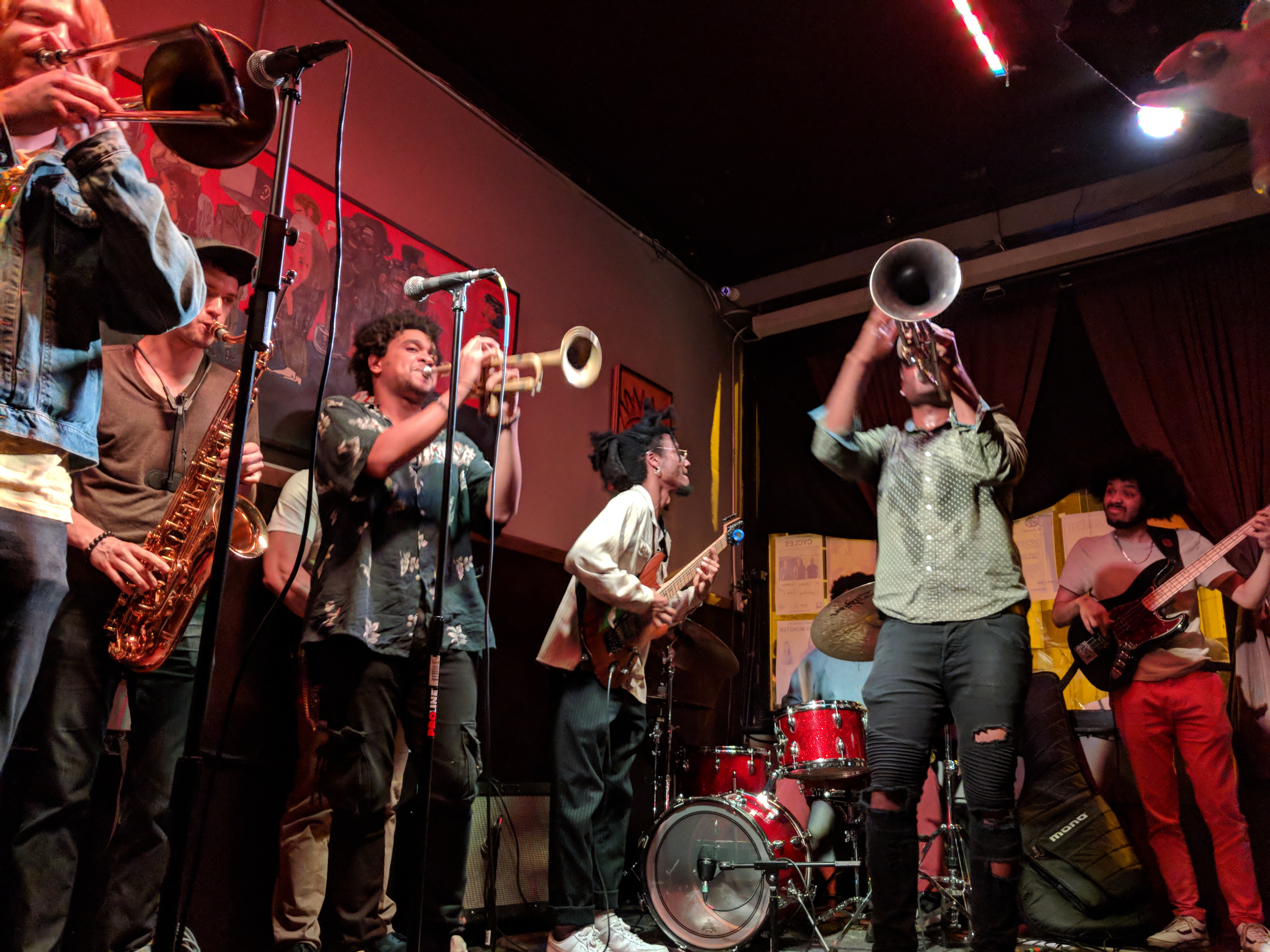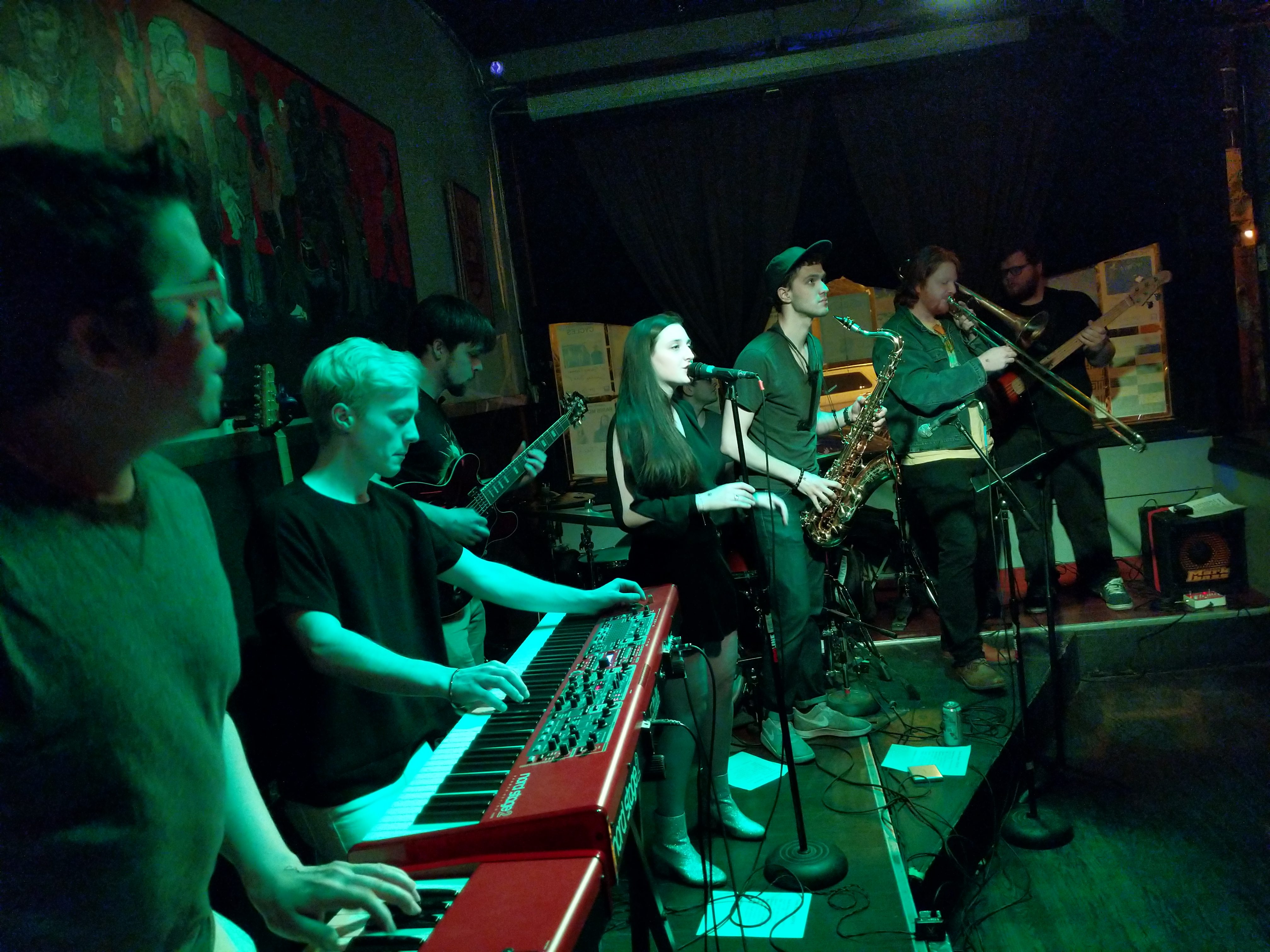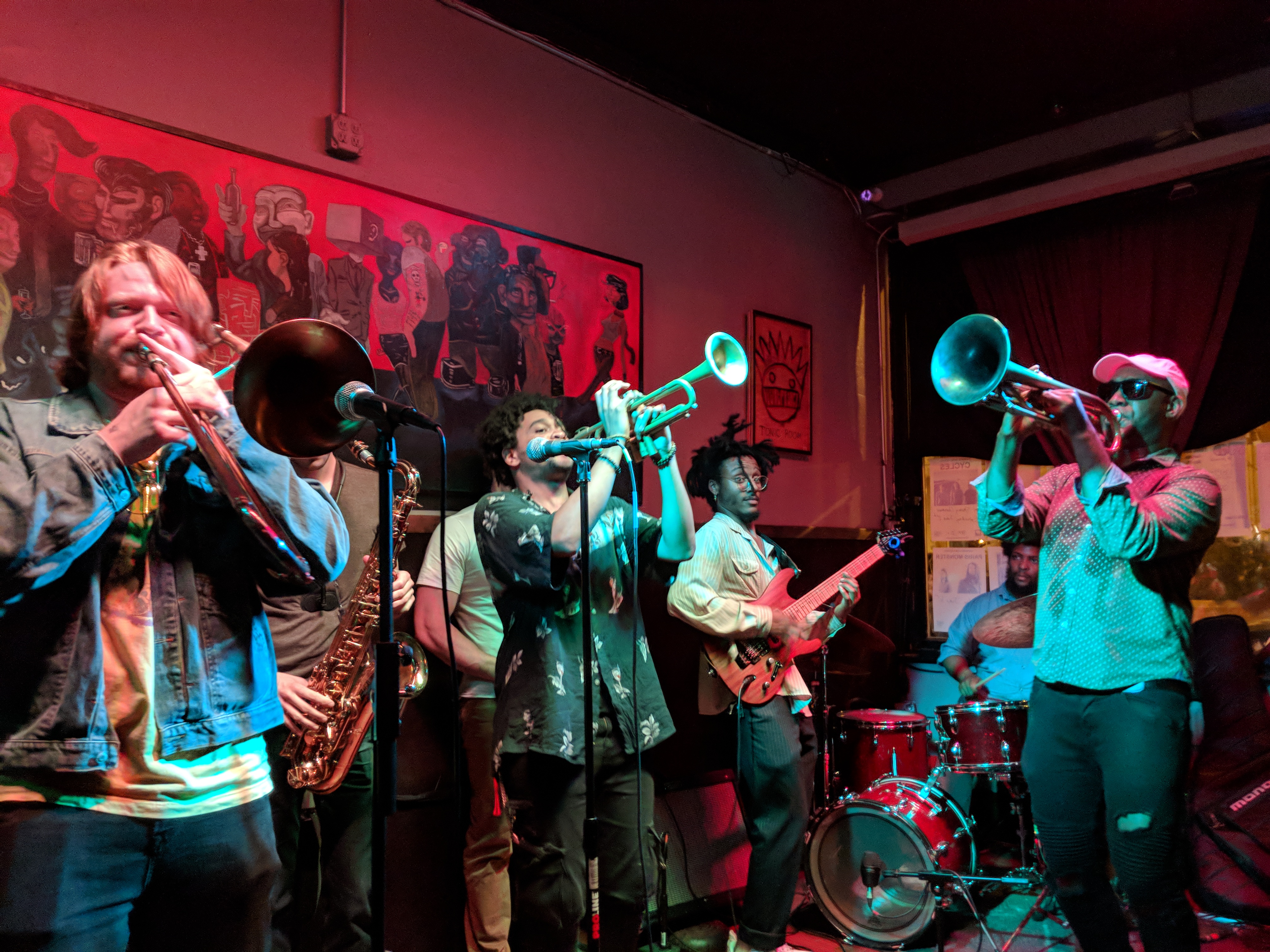 The eight person band Fay Ray takes up the entire length of the Tonic Room stage. With all those instruments, you’d think the sound would be overwhelming, but they show great restraint and craftsmanship in how they layer and use each musician. It is both smooth and chill, yet has great forward momentum. This is great music to groove to. Their special brand of pop jazz was the perfect bridge between opener and closer.