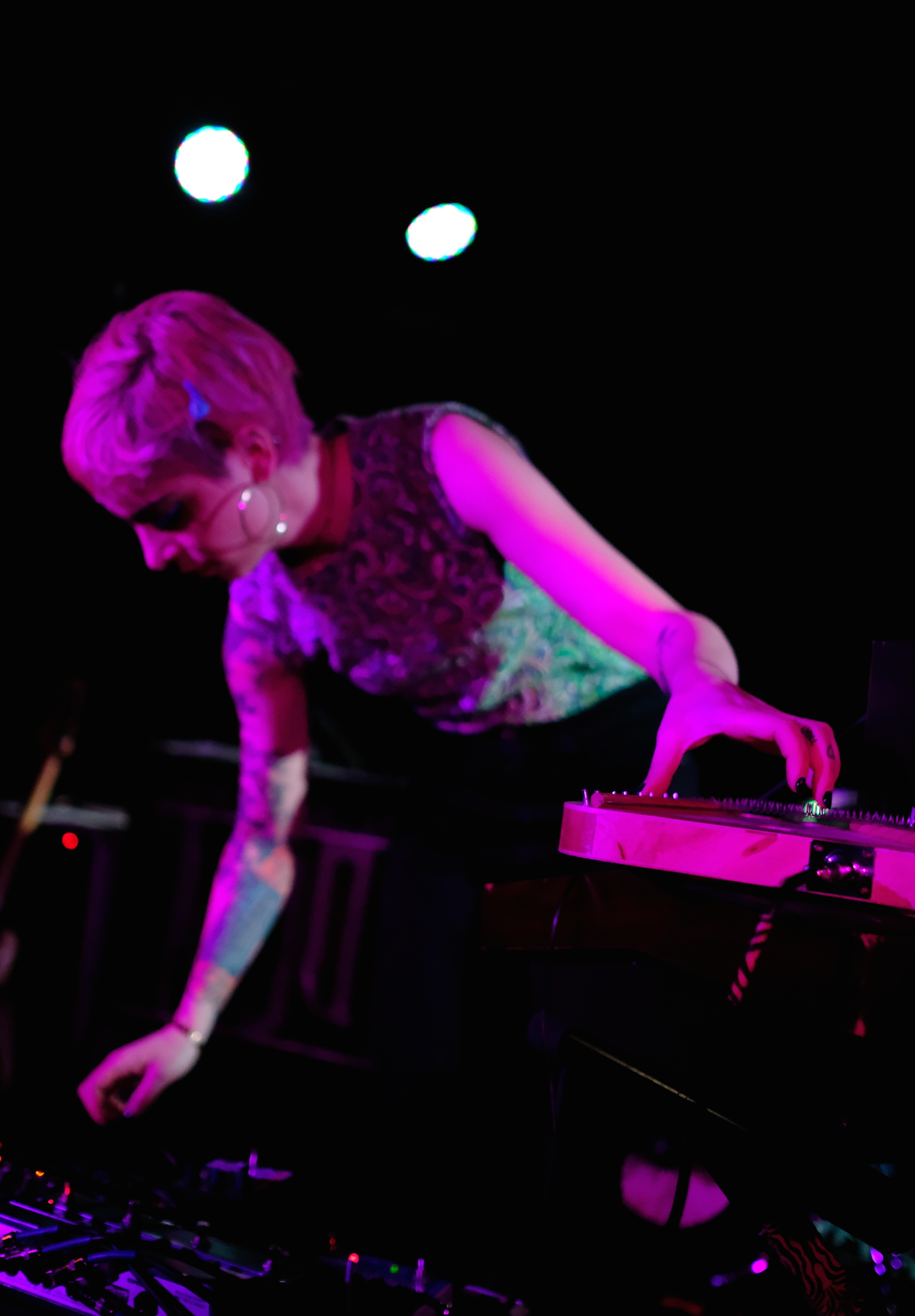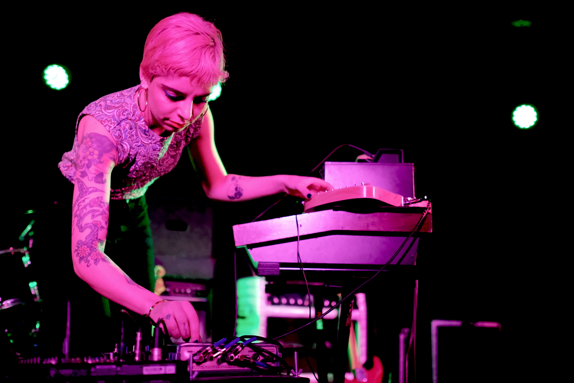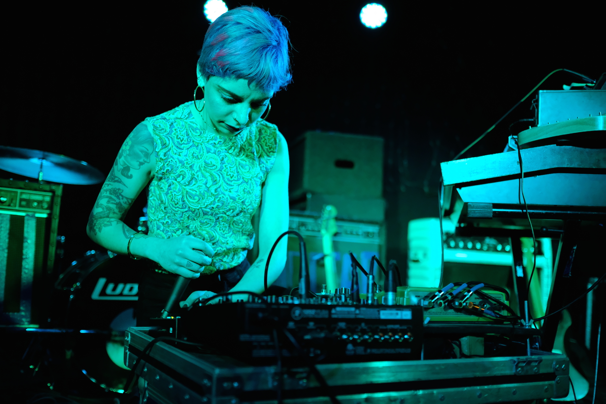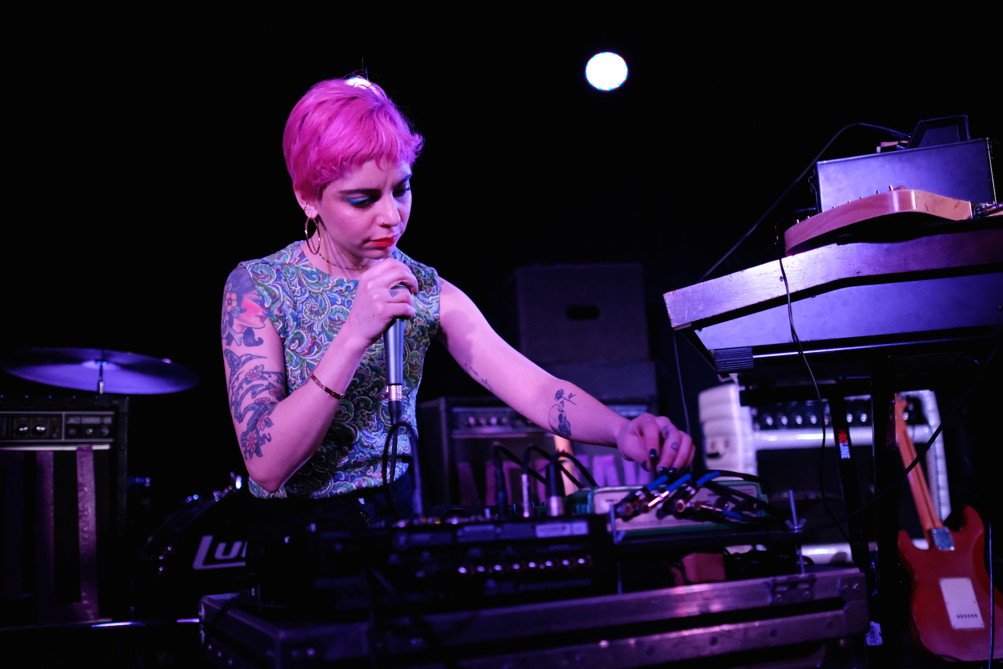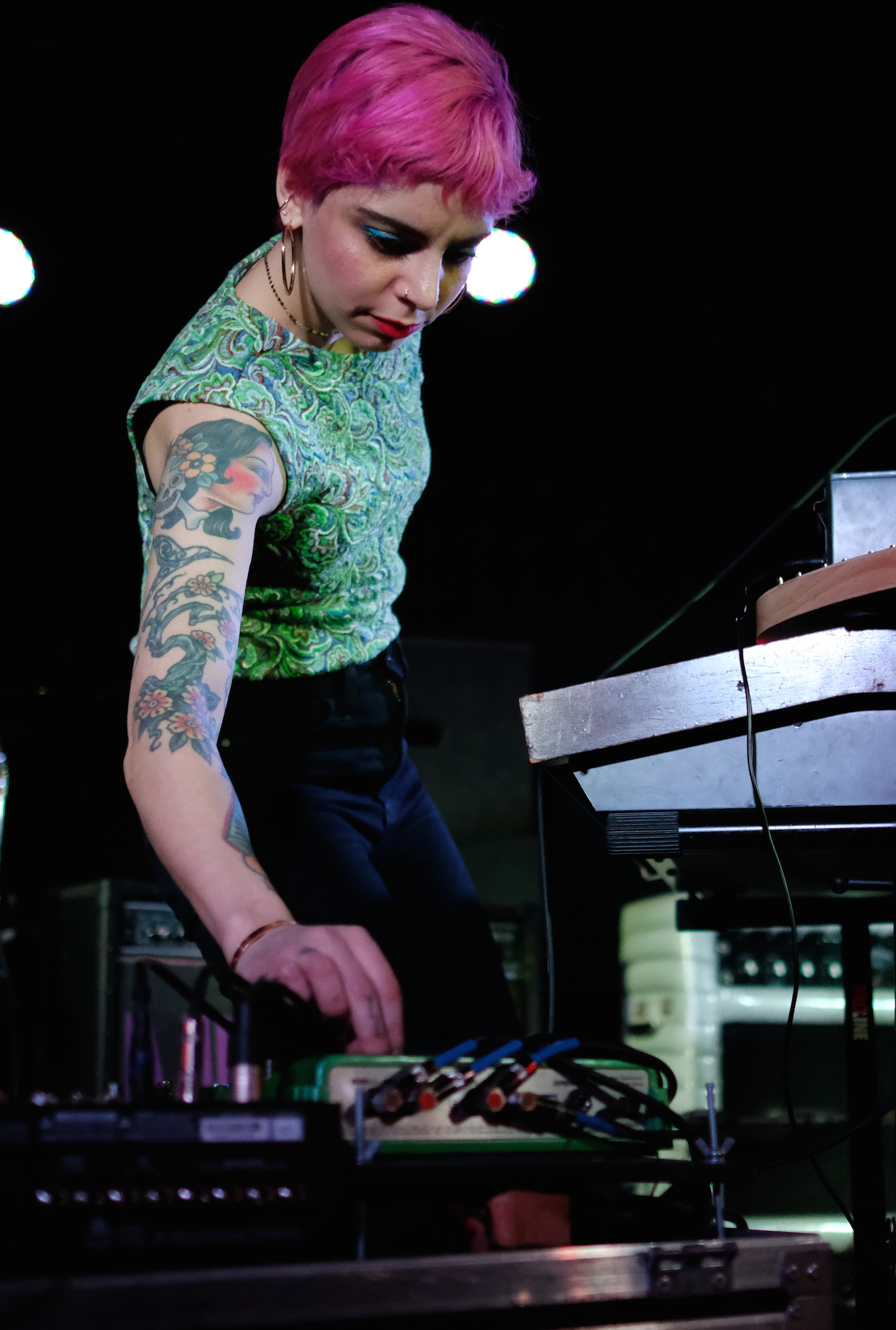 TALsounds lulled us with her soft and gentle music. She built up layers slowly, methodically. Much like she does in the her other project, Good Willsmith, Natalie Chami used her voice as an instrument—adding effects to it, looping a syllable, distorting it so that the momentary meaning was lost within the layers piled on top of it. You could feel the audience chatting ebb and then return during her set, almost like an undercurrent to Chami’s (mostly) smooth and warm music. The moments in which she disrupted that smoothness were more striking–sounds like a rattling fan, or a stick against a chain link fence. Repetitive and metallic. When the notes turned dissonant, it made my skin crawl, in a good way.
