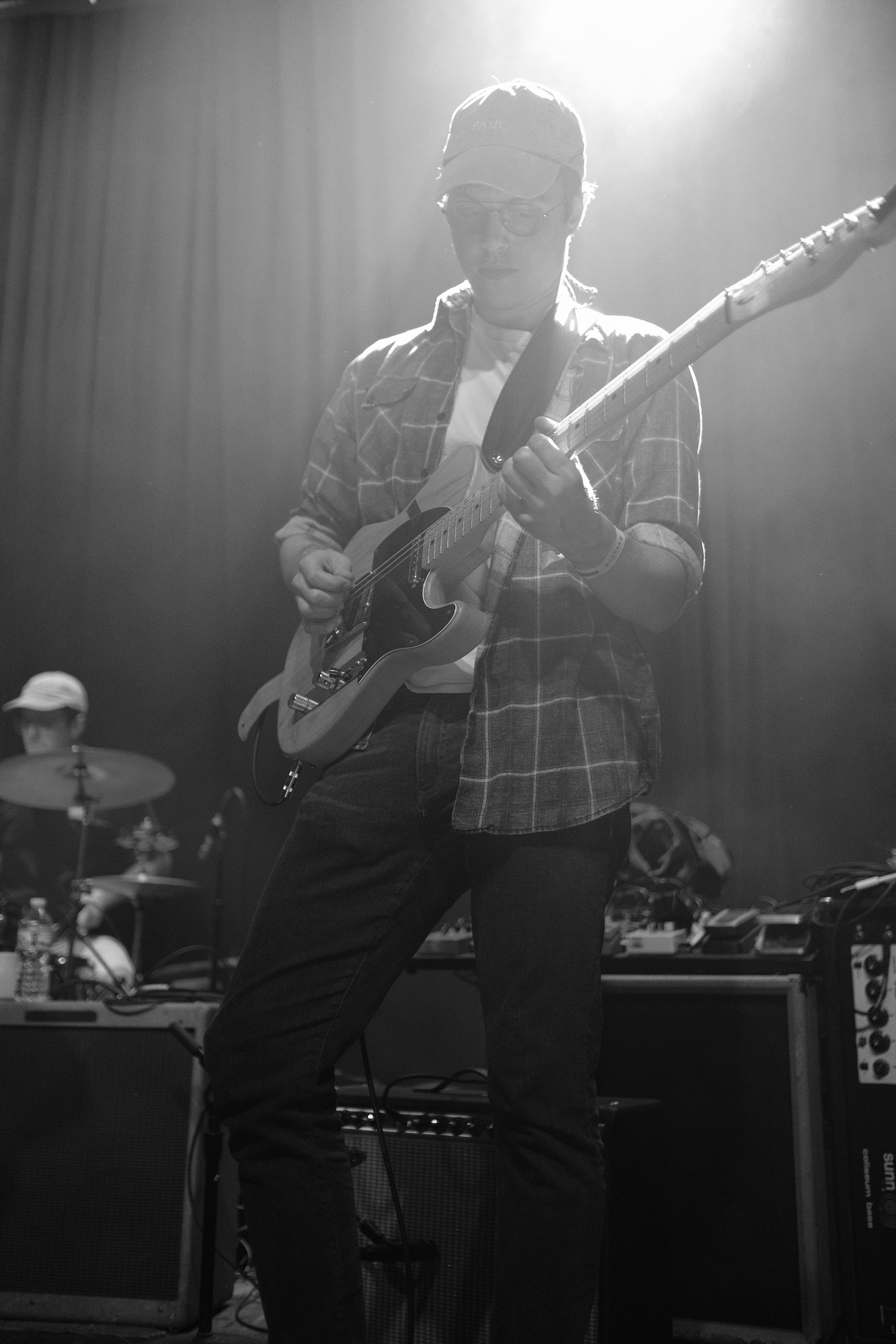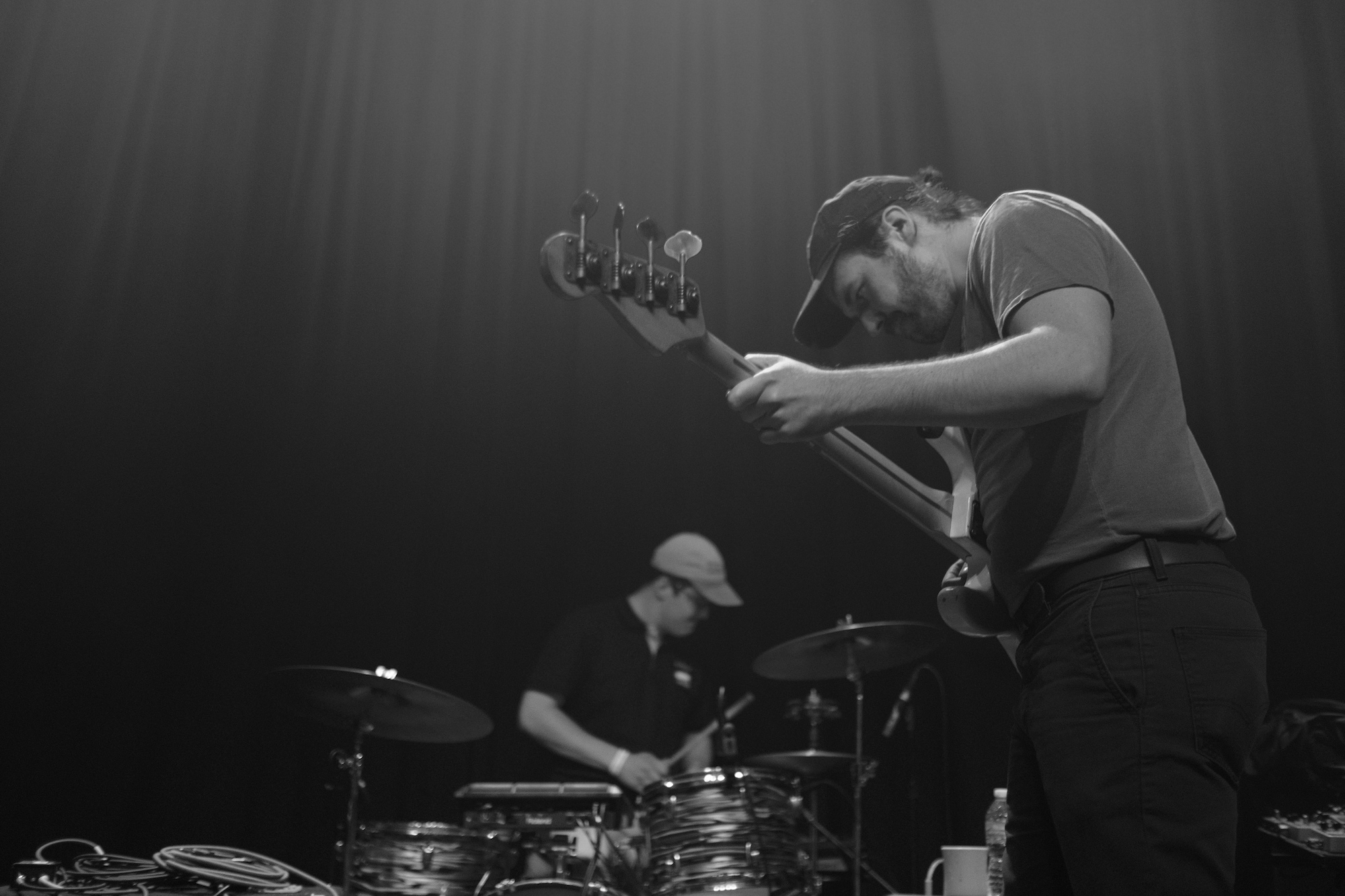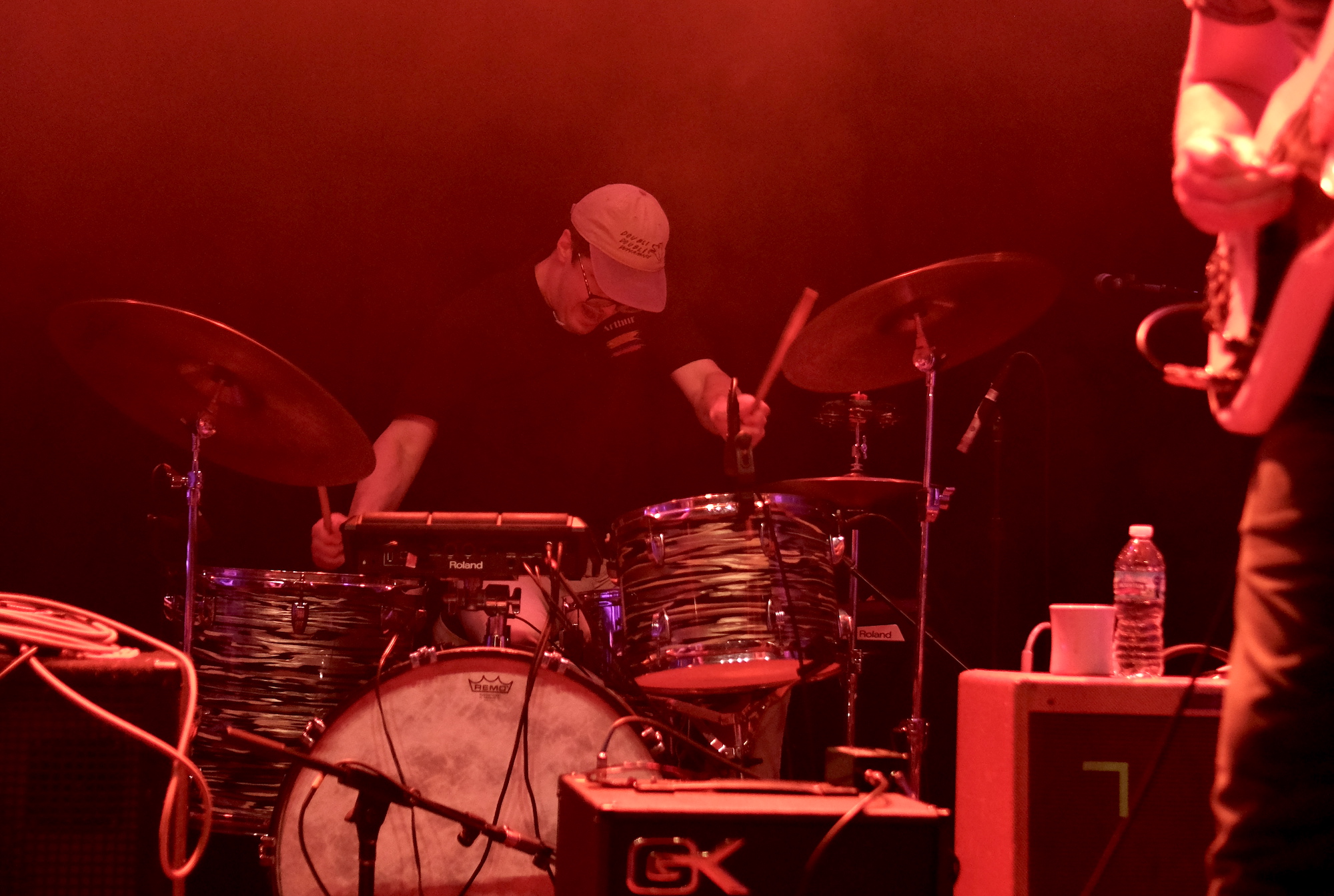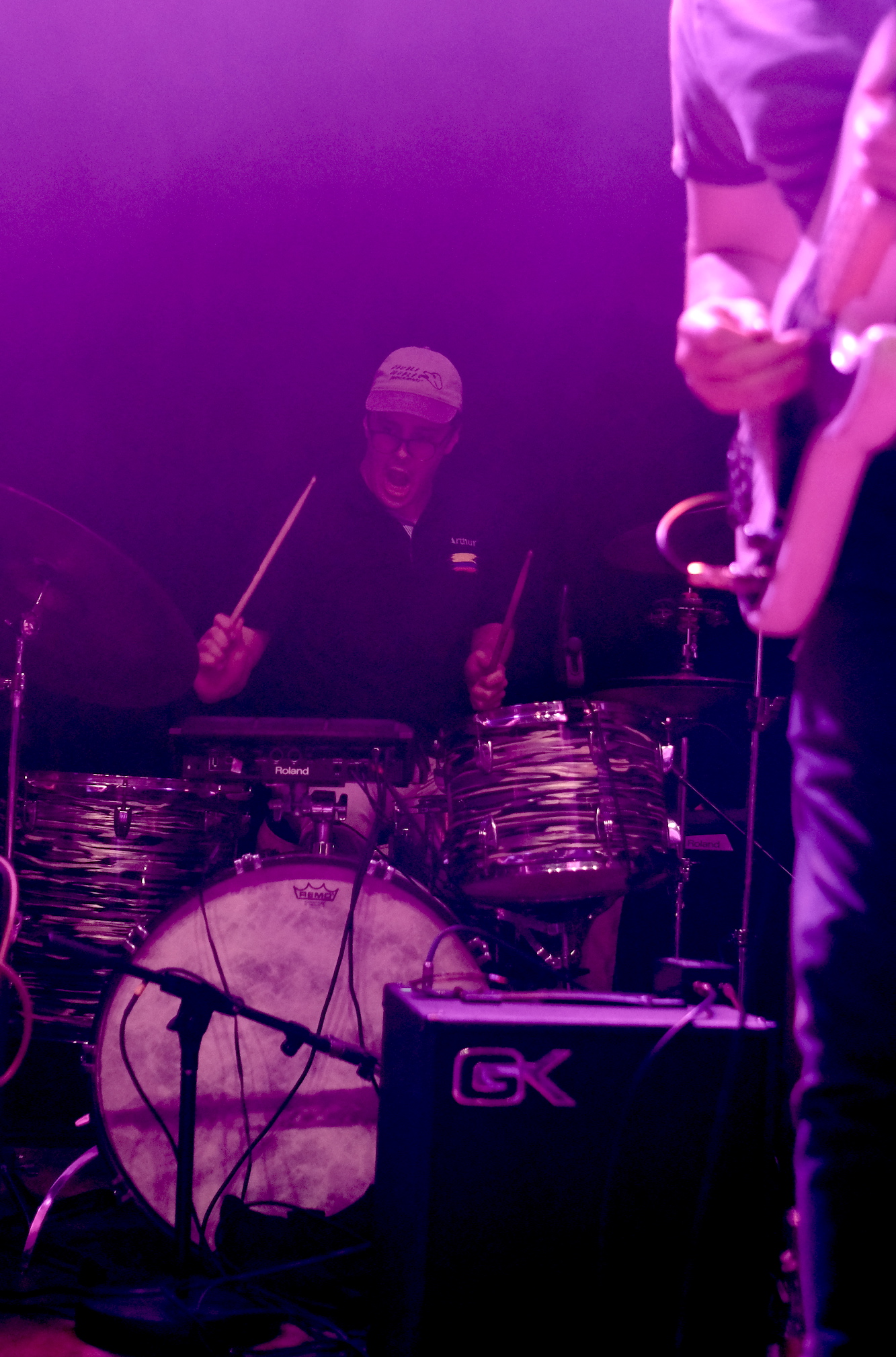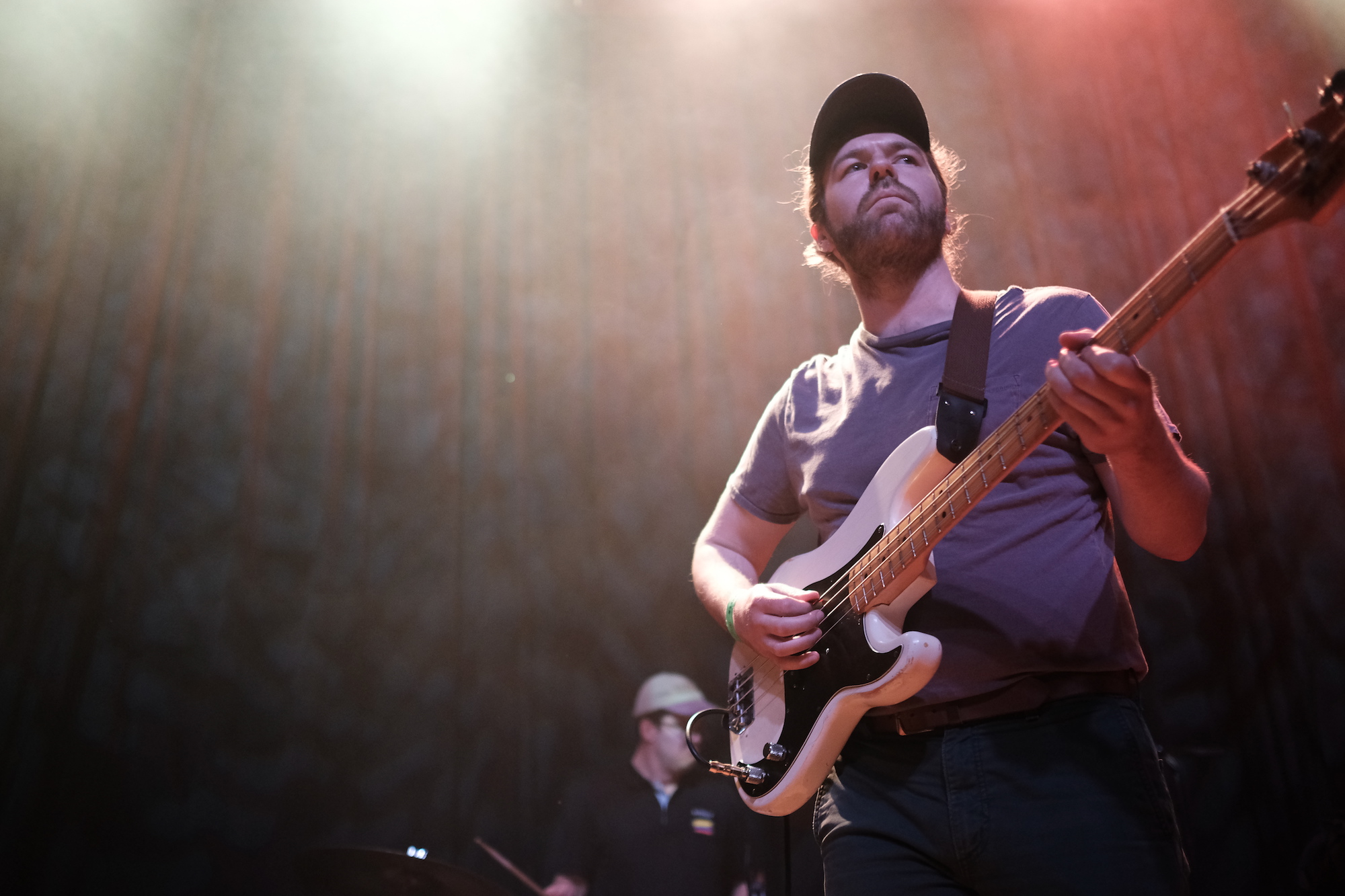 Other songs I look forward to are “Piss Boy” and “Something Happened.” Jacob caught my attention when he played these funny little guitar squiggles. It was surprising in the best possible way. He also gave us some vocal hitches and drawn out sounds that had a similar feel to them. Vocal “squiggles,” if you will. Not too many, just enough to set their sound apart in my mind. Paul’s guitar dug in on the jams, while Arthur seemed to be using his drum kit to work out some anger. Just because Discus’s music is laid back doesn’t mean that he stuck to chill. He pushed the music beyond and put in complicated fills all over, his face showing his tension as he grimaced and pushed himself. Kevin did that thing that is so hard to a bass player and played out, making me smile with his bass line. It is so nice when the sense of exploration in music can make you smile.
