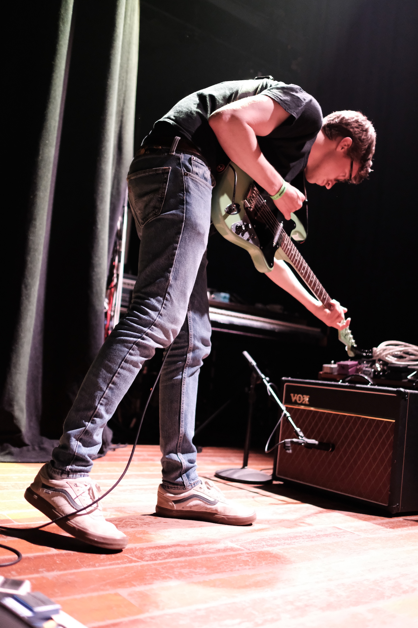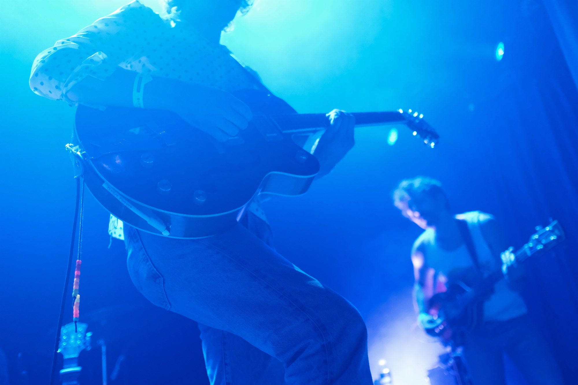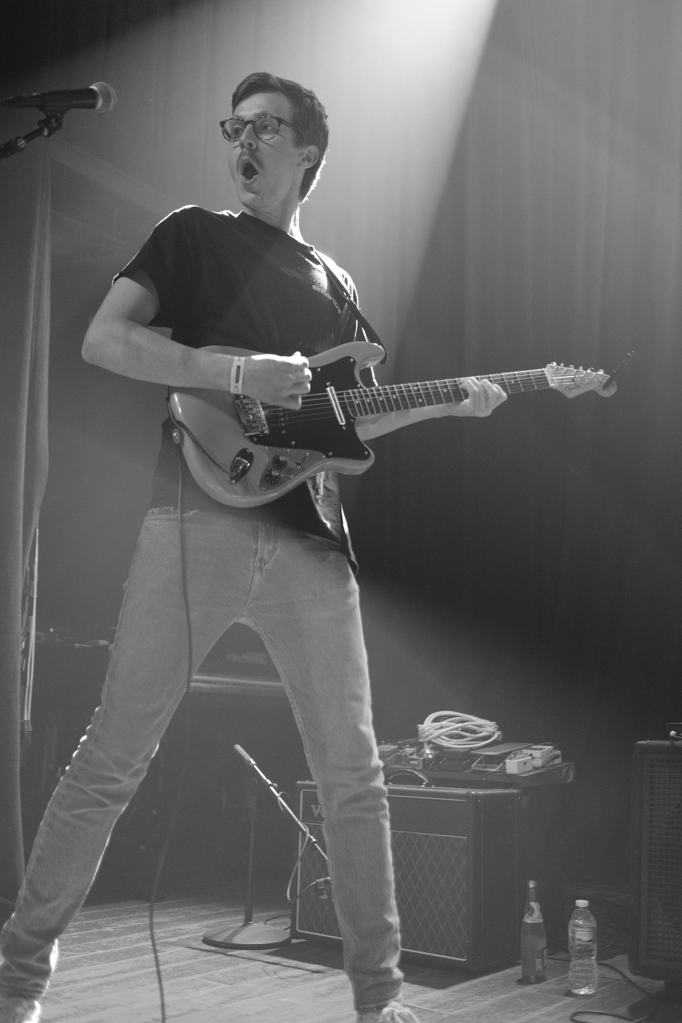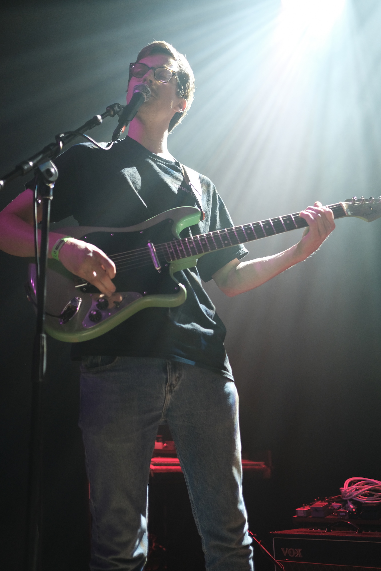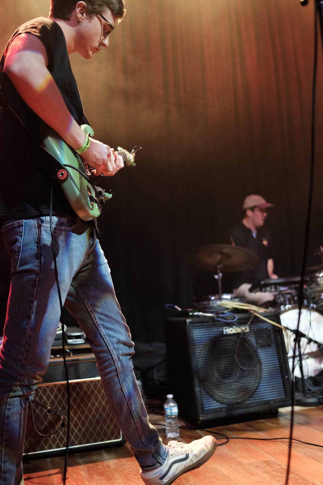 I was really happy to see familiar faces as Discus walked out onto the Lincoln Hall stage. The band is made up of Chicago musicians Jacob Stolz (vocals/guitar), Paul Stolz (guitar), Kevin Fairbairn (bass), and Arthur Velez (drums). The Stolz brothers play in both Varsity and Pool Holograph, while the Discus rhythm section plays in Clearance. Much like those bands, Discus is putting out jangly guitar music that feels like floating on cool water on a warm day. Relaxing. Splashing around a little on some jamming. Just plain good. Most of the songs in their set are new, from what will be their first full-length album planned for a late summer release by Balaclava Records. Get a sneak peak with the recent single, “Watch the Milk Dry”–it was particularly good live.