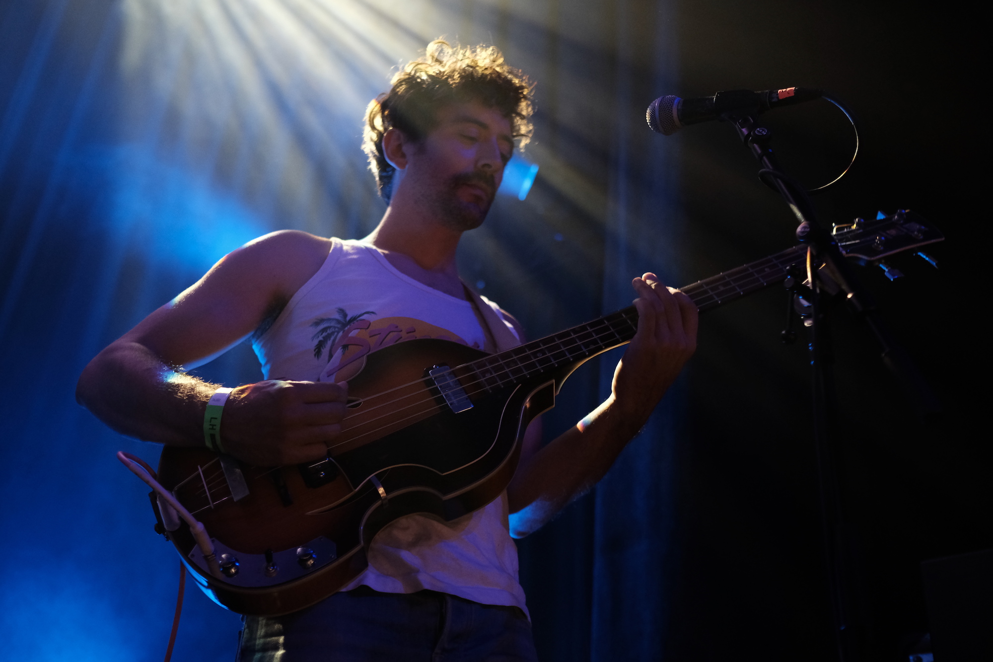 Minneapolis band, Night Moves, delivered an ultra smooth dance party to the Lincoln Hall audience. As they played, they moved to their music. Not in a performative way, but in a way that emphasized how relaxed they were, like they’d move that way if they were alone in their living rooms. Such is the power of their groove. Drummer Mark Hanson bounced, and Micky Alfano on bass got down into the rhythm and nodded. Meanwhile, lead vocalist John Pelant was all shoulders and shakes of the head. Guitarist Chuck Murlowski did box steps, romancing his guitar with swaying steps. He moved as much as his part of the stage would allow.