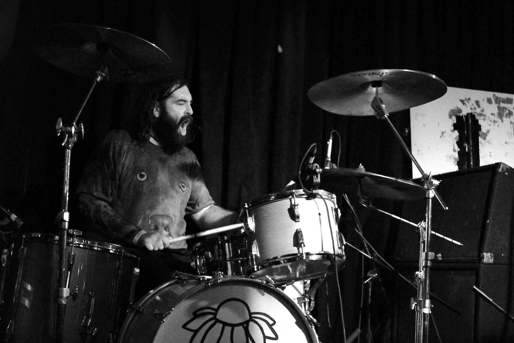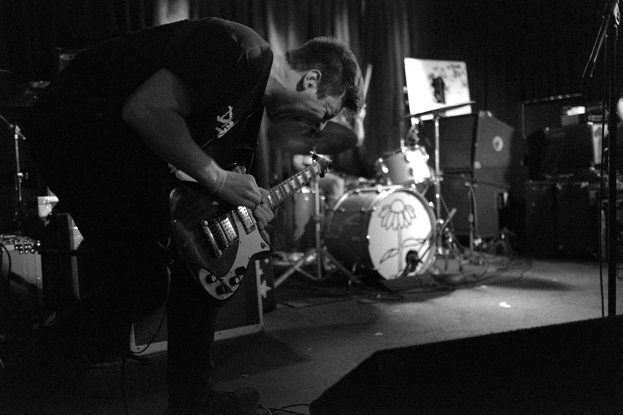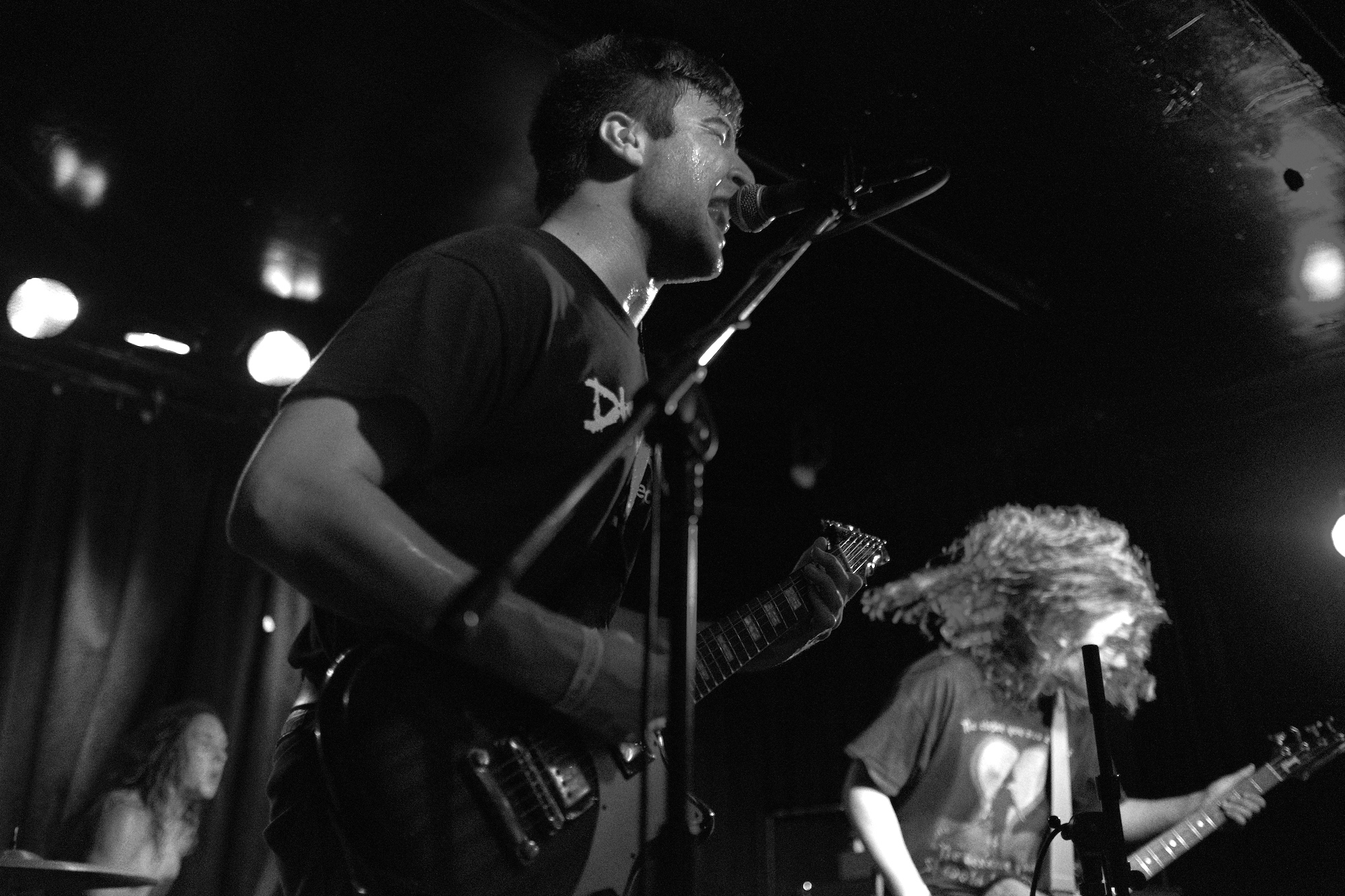 Three days after Riot Fest you’d think I would want something different, but what I really needed a little punk injection to help the withdrawal. Dogleg more than did the trick. Three guys (usually four, but guitarist Parker Grissom couldn’t go on this tour) from Detroit. It was their first time playing Chicago proper, which may explain why they seemed to be pulling out all the stops. From the moment they began playing they moved in seizure-like motions—bouncing so fast it was more like vibrating. Somehow the music was still “music”. I was blown away by their energy and thought my face would crack with the joy it gave me. Central to their sound is drummer Jacob Hanlon. He pulled off intricacies at a speed most drummers can only dream of. No wonder he had sweat drenched hair and crazy eyes. Bassist Chase Macinski seemed to be airborne as much as he was on the ground. Vocalist Alex Stoitsiadis was on the mic most of the time, but once he pulled off a one handed cartwheel with his guitar still strapped on, it was clear that he wasn’t going to let his bandmates have all the fun. Hanlon shouted from the kit, “Heads up everyone, this is our last song!” And they blazed into “Modern Language.” It was worth paying attention. Near the end you had not just one hangup, but four. I think…I’m not sure. I lost track. If I wasn’t already sold on their talent, the tightness of those breaks and beats was enough to make me want to keep track of these guys and hope they come back to Chicago soon.