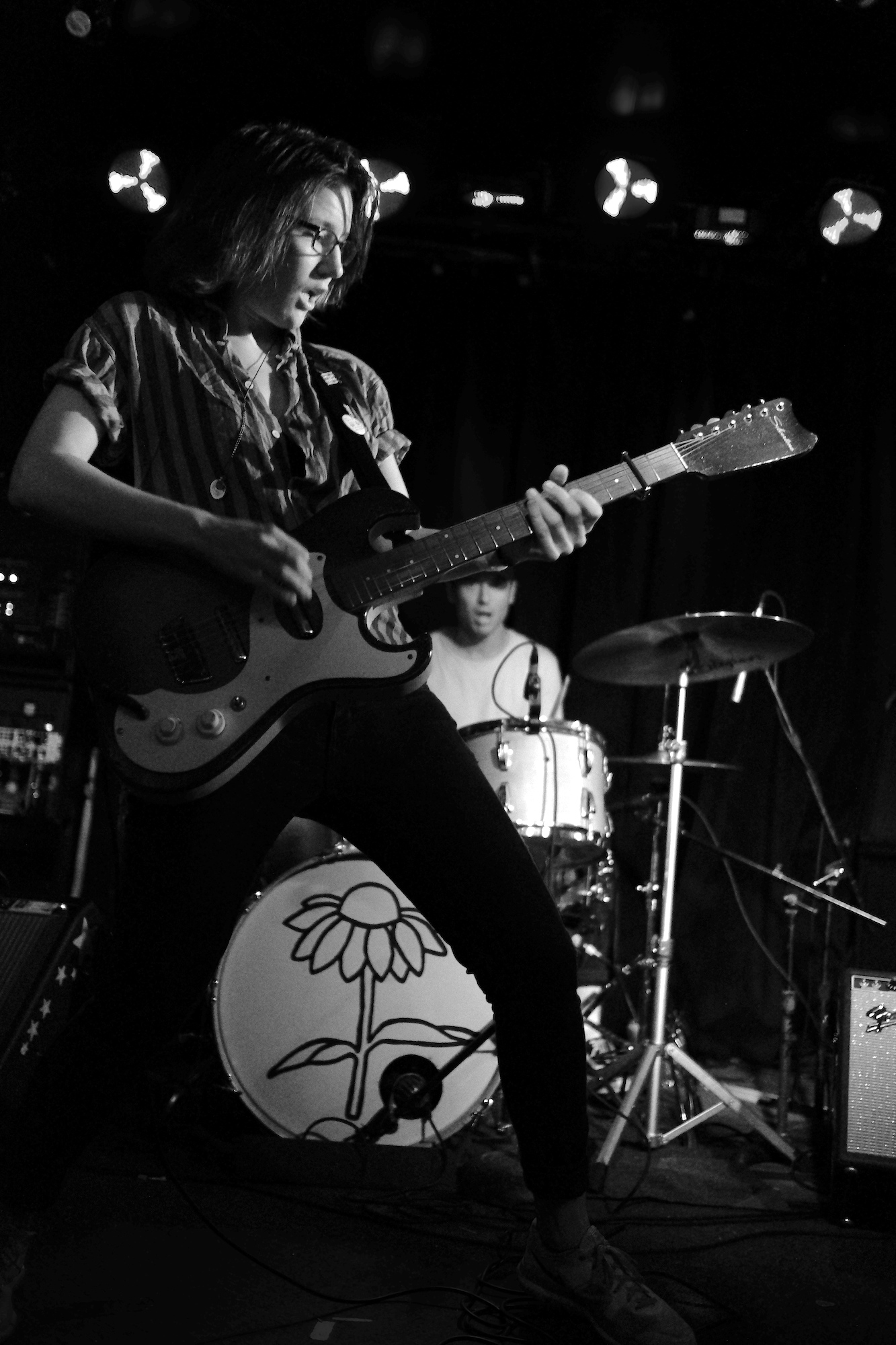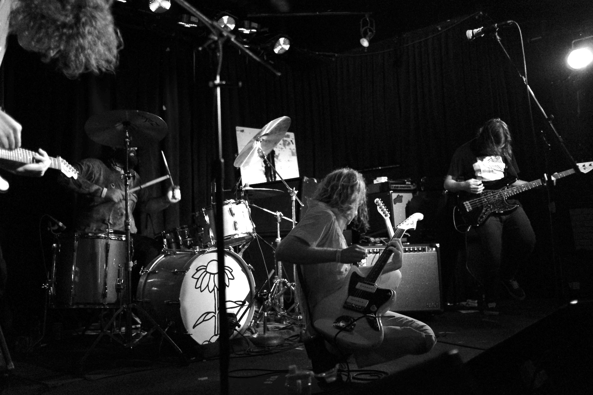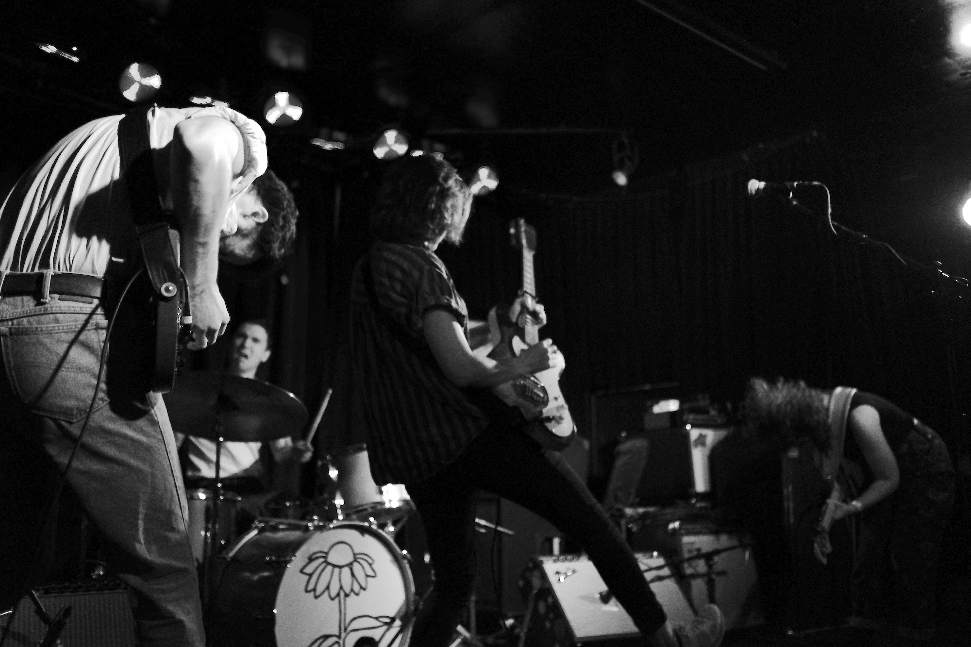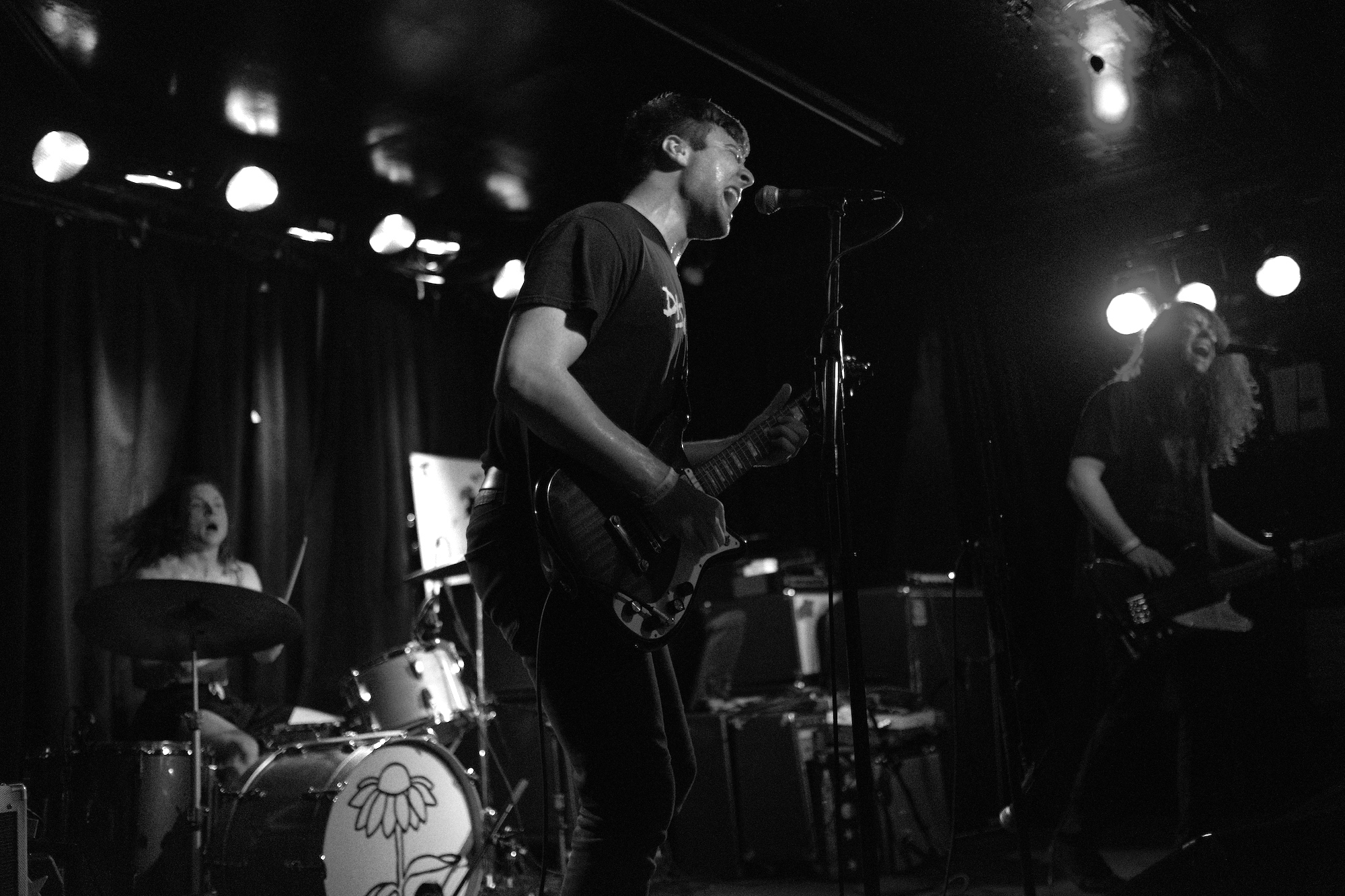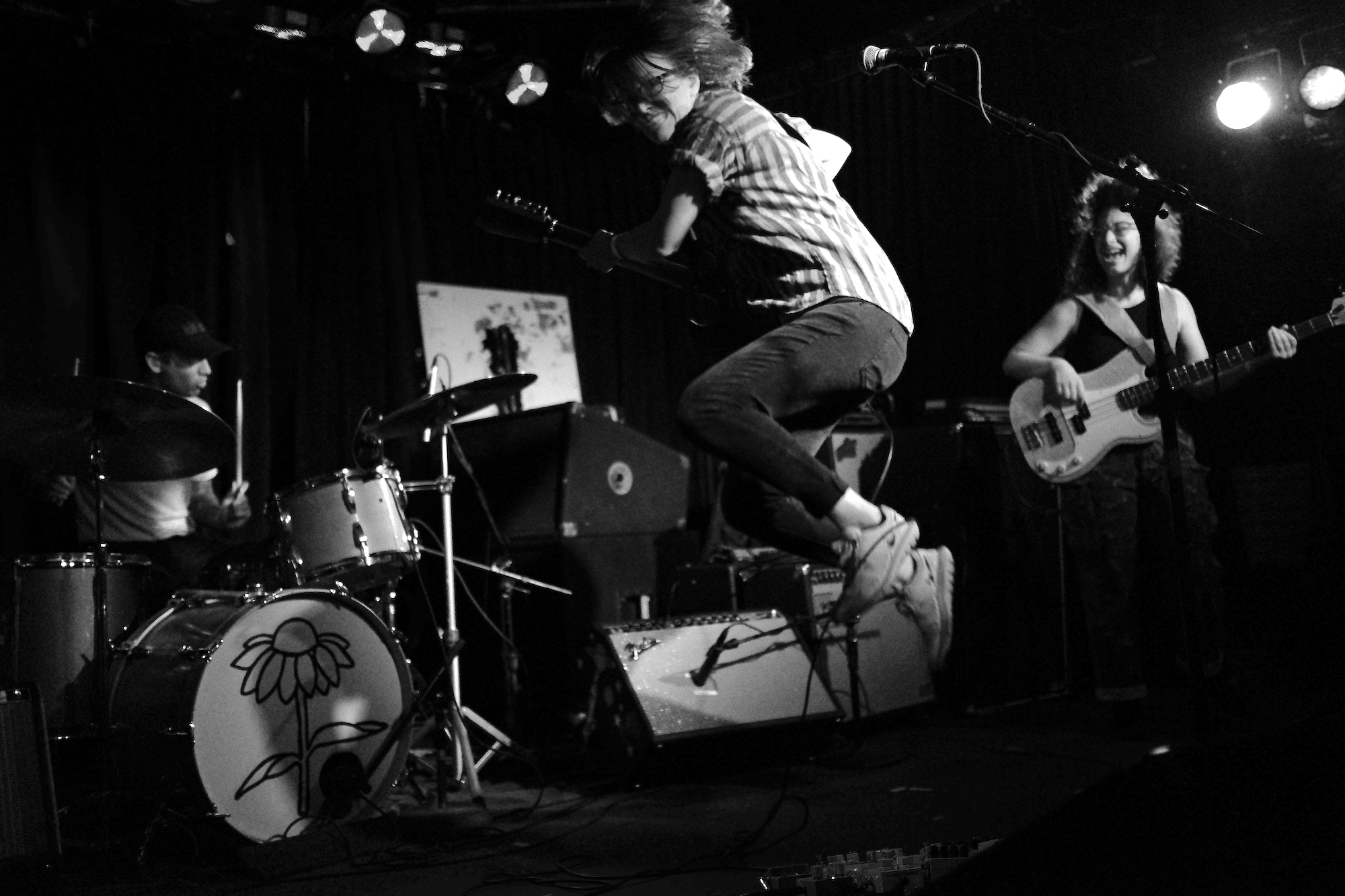 Future Teens brought us playful emo-punk tunes from Boston. Their earnest lyrics and stage presence reminded me of musical theatre. Like in theatre, they told stories that ring true with the audience. The fans showed up and sang along to “In Love or Whatever” and “Frequent Crier.” Sang by Daniel Radon and Amy Hoffman, respectively. Hearing from different voices is one of my fav things in a band, it brings different energy to the stage as they take on different roles. When Hoffman wasn’t singing they’re moving. Swinging and jumping. Doing high kicks with bass player Maya Mortman and guitar sparring with Radin. Even with all that, the music was tight, like its coming straight from their bones. They were all busting smiles constantly and it was clear that they are all soul and friendship and exactly where they wanted to be.