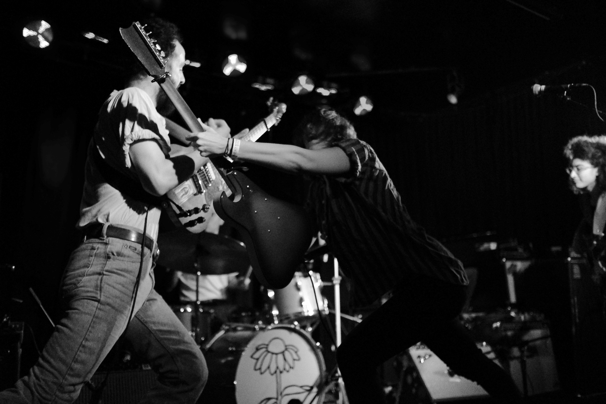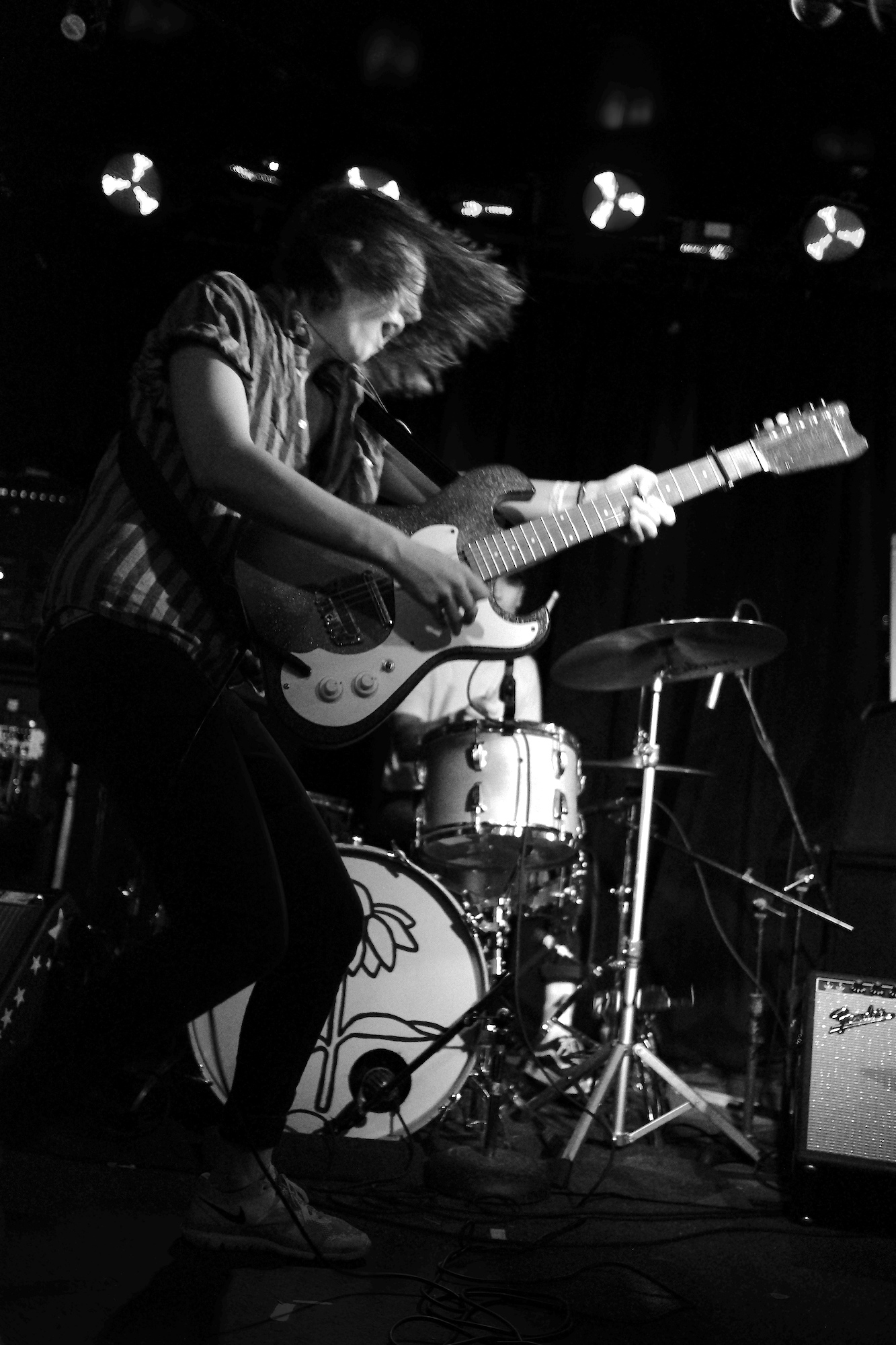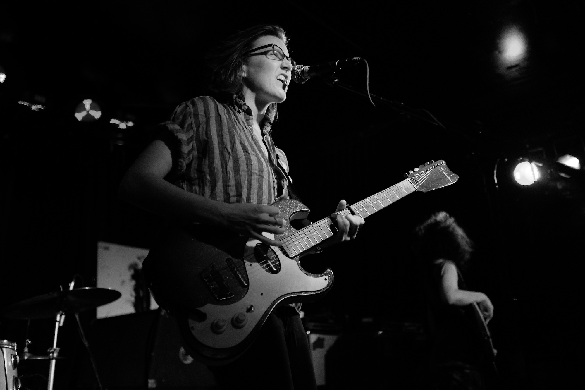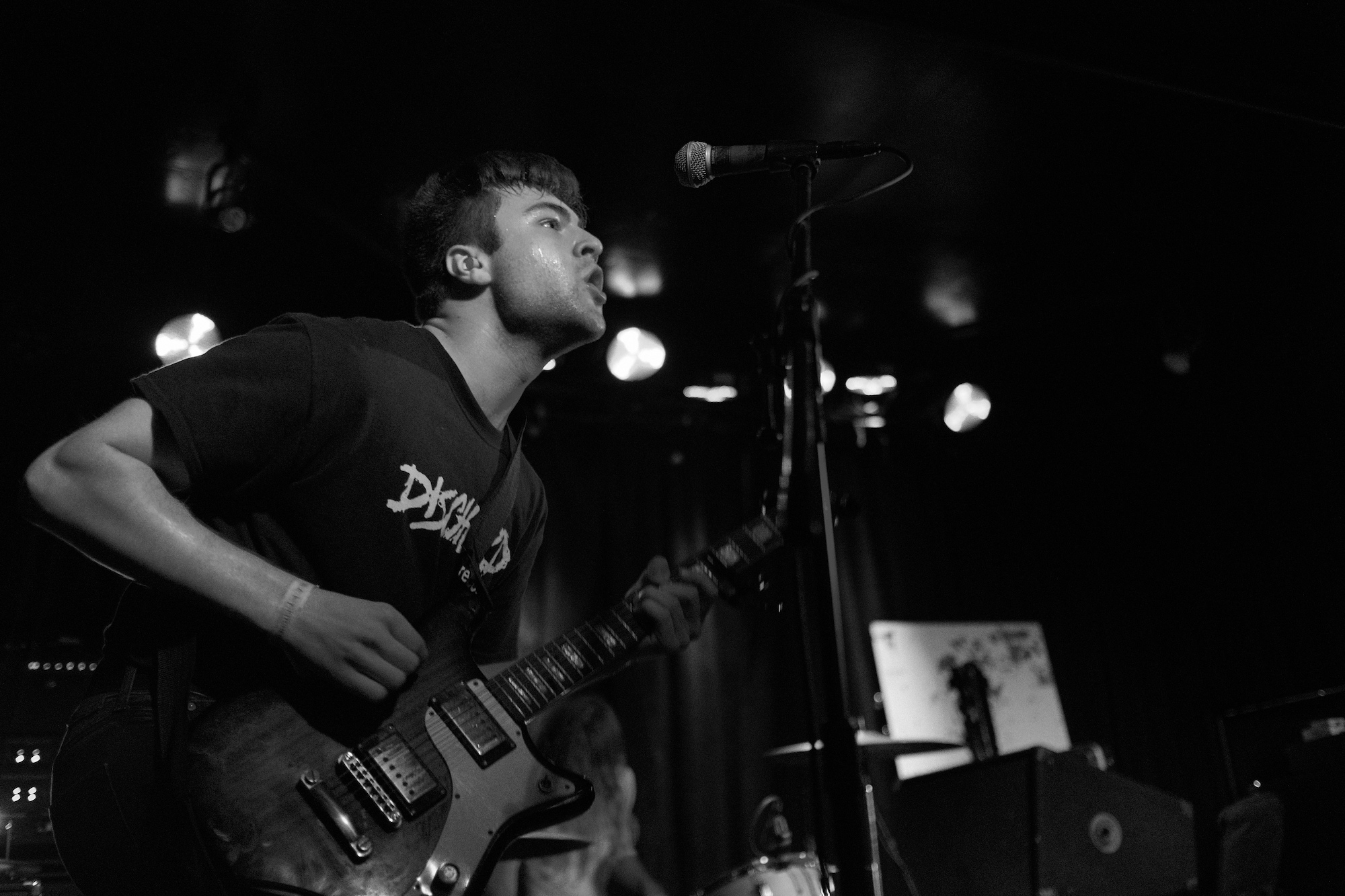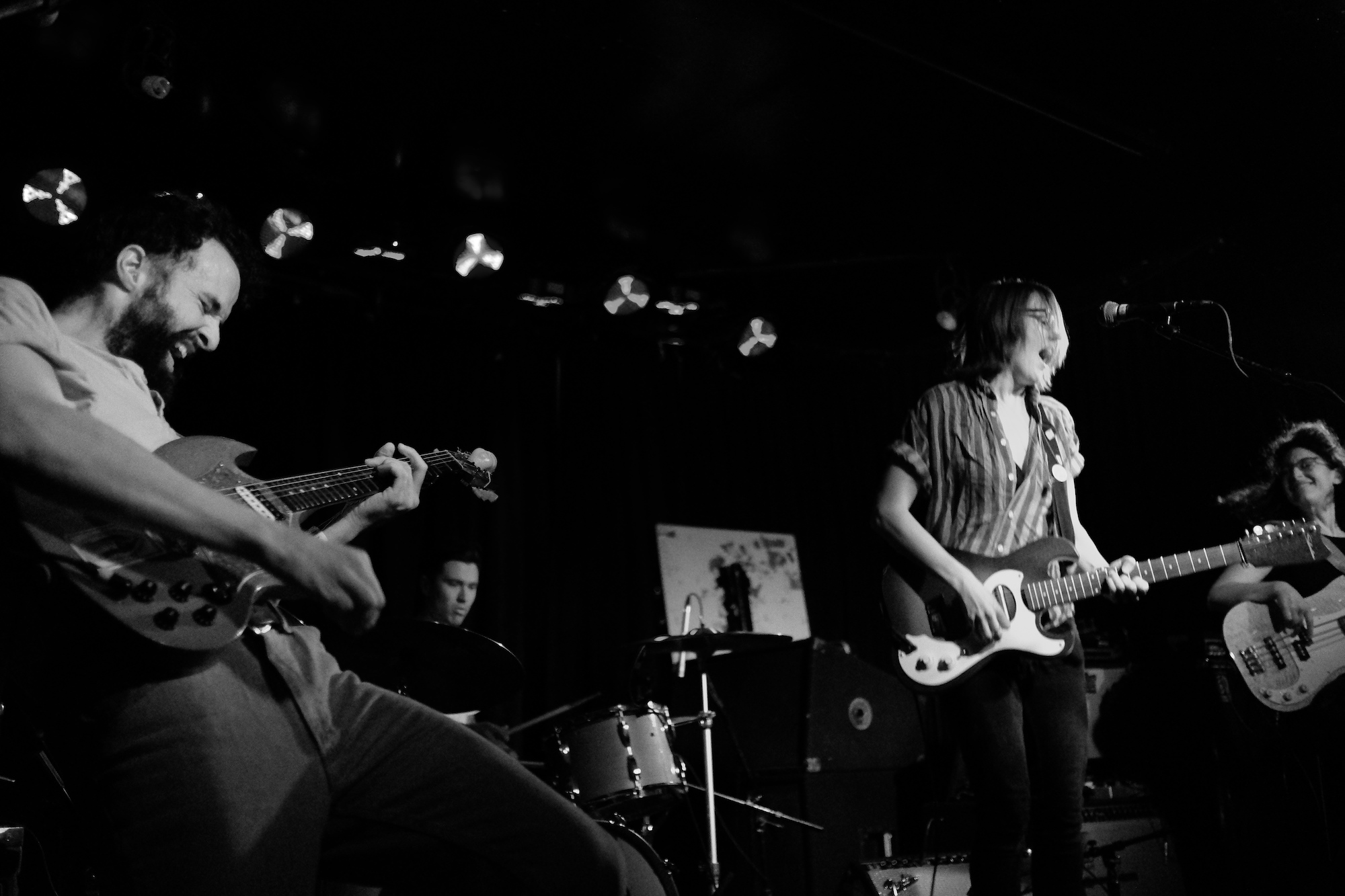 Future Teens brought us playful emo-punk tunes from Boston. Their earnest lyrics and stage presence reminded me of musical theatre. Like in theatre, they told stories that ring true with the audience. The fans showed up and sang along to “In Love or Whatever” and “Frequent Crier.” Sang by Daniel Radon and Amy Hoffman, respectively. Hearing from different voices is one of my fav things in a band, it brings different energy to the stage as they take on different roles. When Hoffman wasn’t singing they’re moving. Swinging and jumping. Doing high kicks with bass player Maya Mortman and guitar sparring with Radin. Even with all that, the music was tight, like its coming straight from their bones. They were all busting smiles constantly and it was clear that they are all soul and friendship and exactly where they wanted to be.