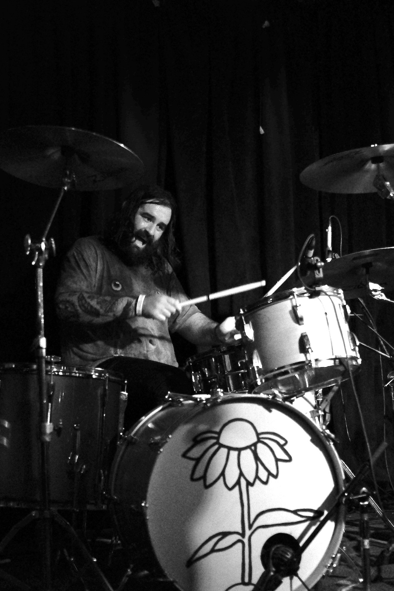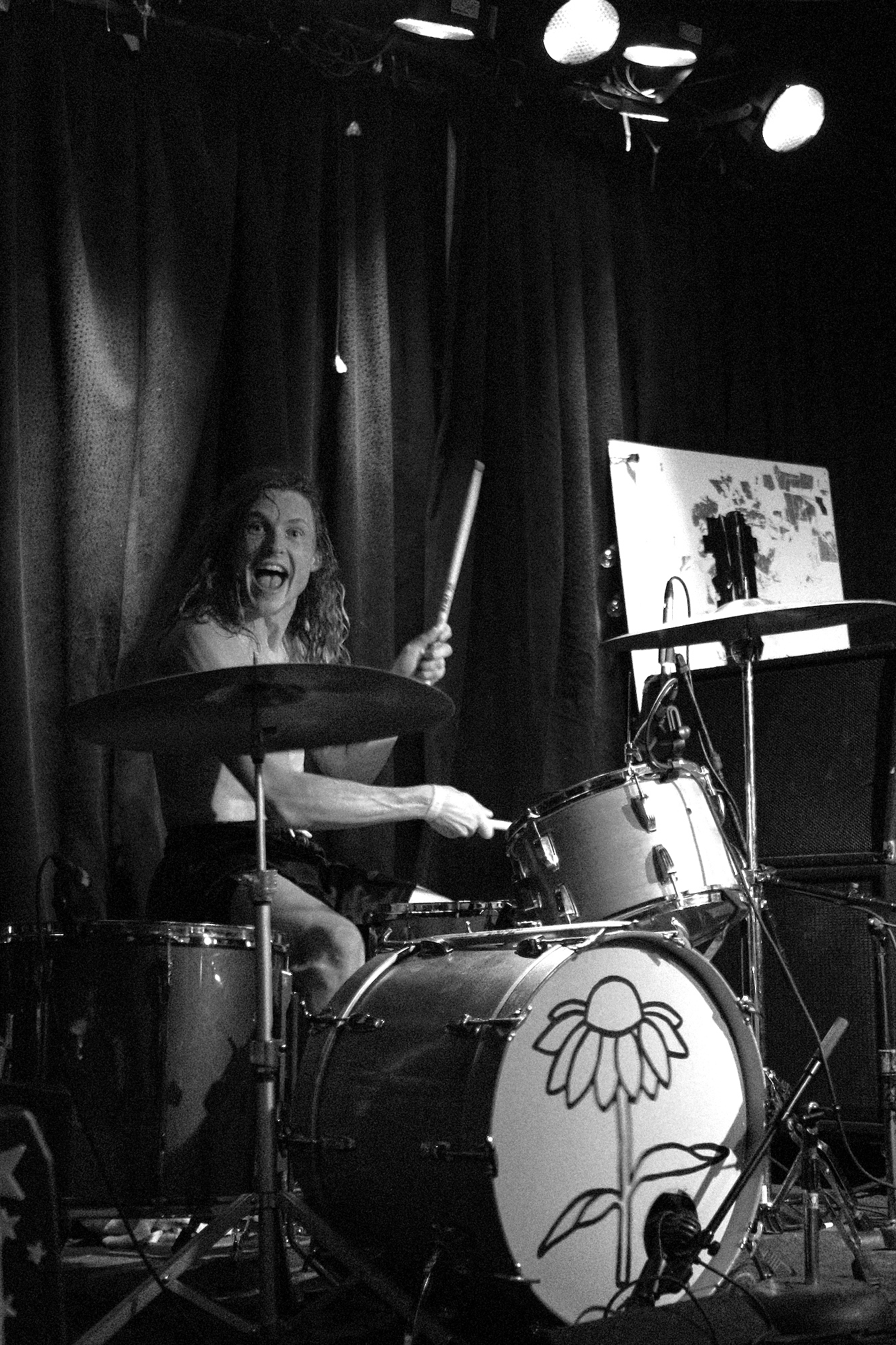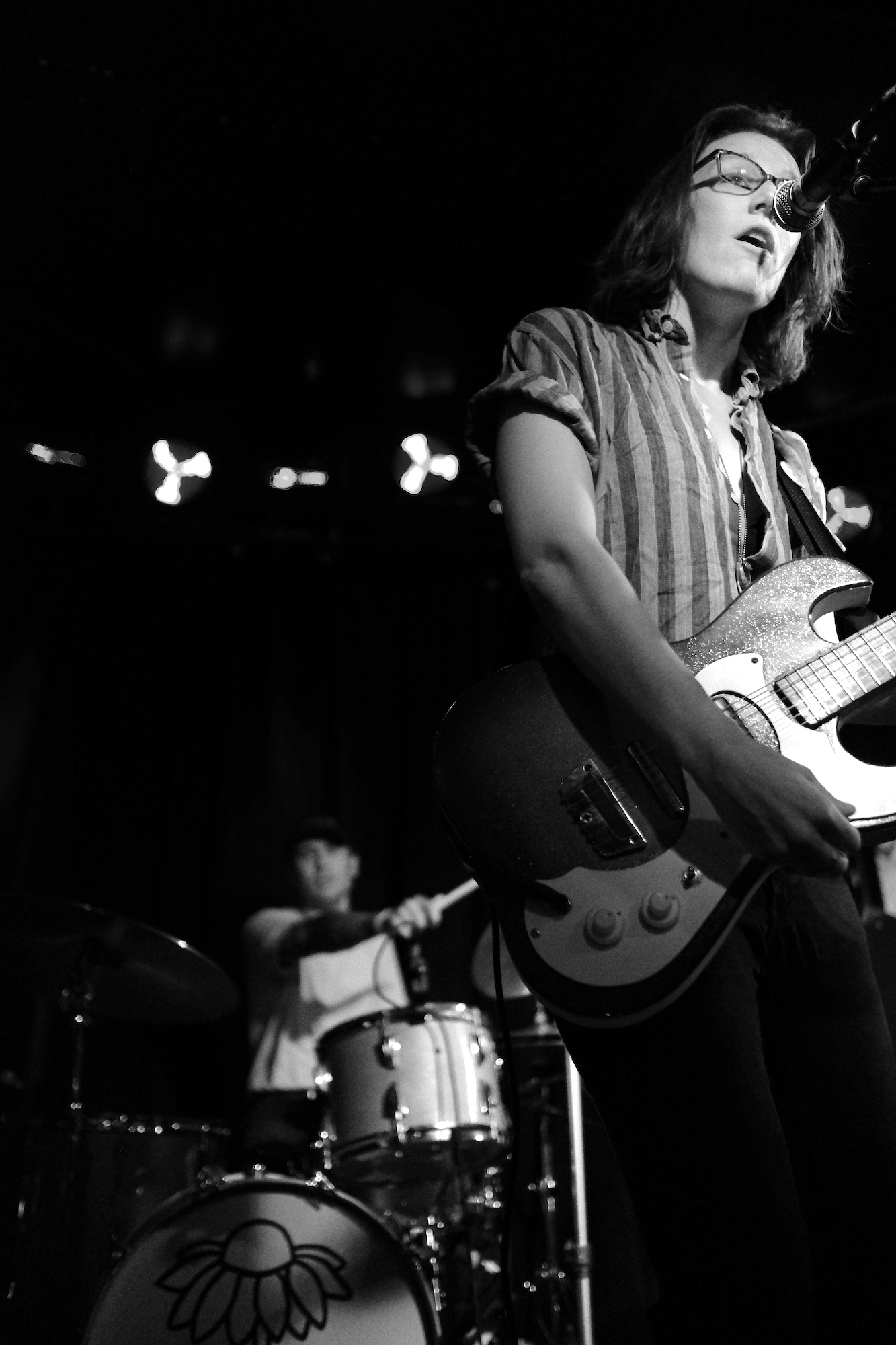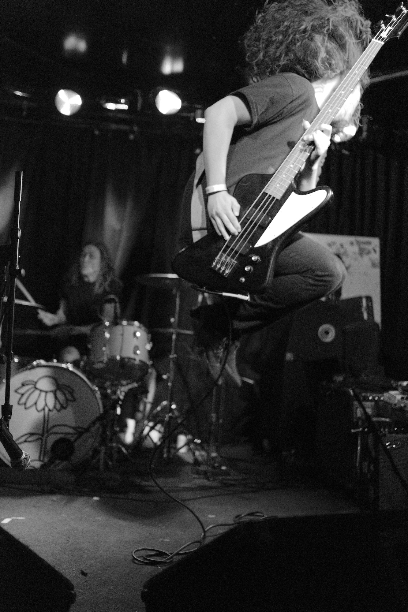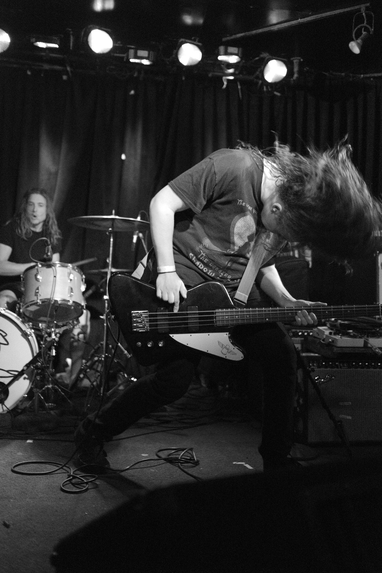 Future Teens brought us playful emo-punk tunes from Boston. Their earnest lyrics and stage presence reminded me of musical theatre. Like in theatre, they told stories that ring true with the audience. The fans showed up and sang along to “In Love or Whatever” and “Frequent Crier.” Sang by Daniel Radon and Amy Hoffman, respectively. Hearing from different voices is one of my fav things in a band, it brings different energy to the stage as they take on different roles. When Hoffman wasn’t singing they’re moving. Swinging and jumping. Doing high kicks with bass player Maya Mortman and guitar sparring with Radin. Even with all that, the music was tight, like its coming straight from their bones. They were all busting smiles constantly and it was clear that they are all soul and friendship and exactly where they wanted to be.