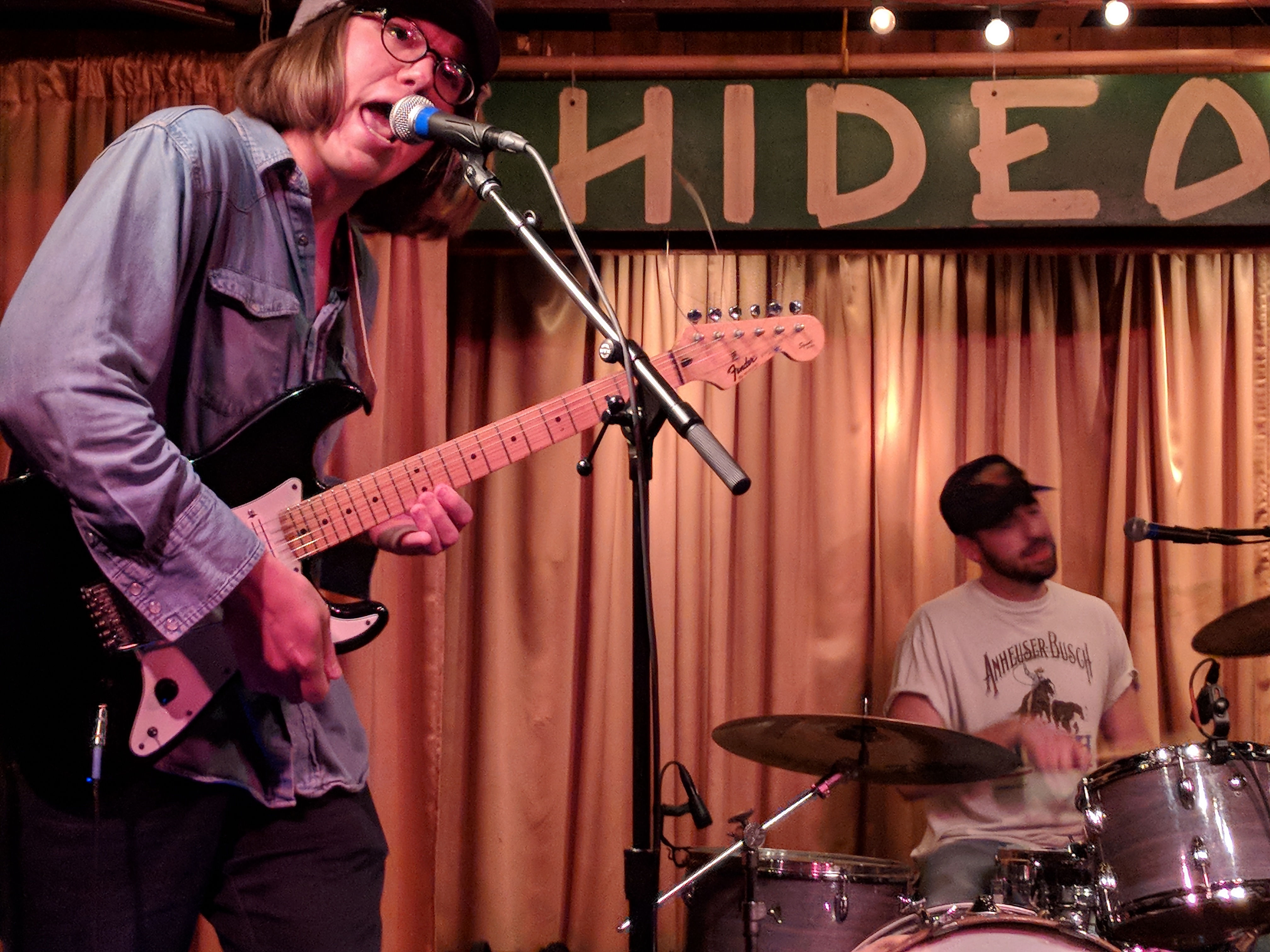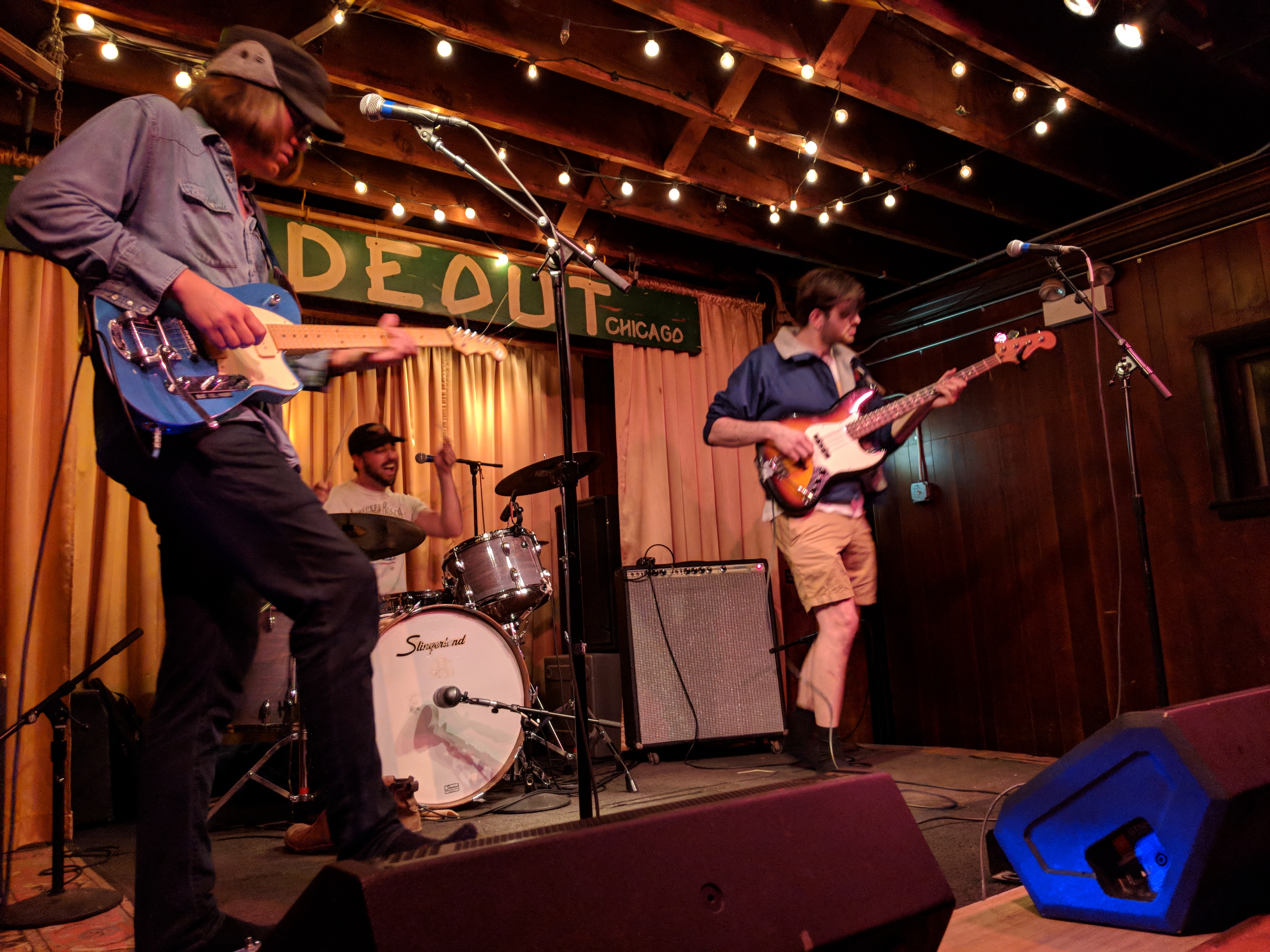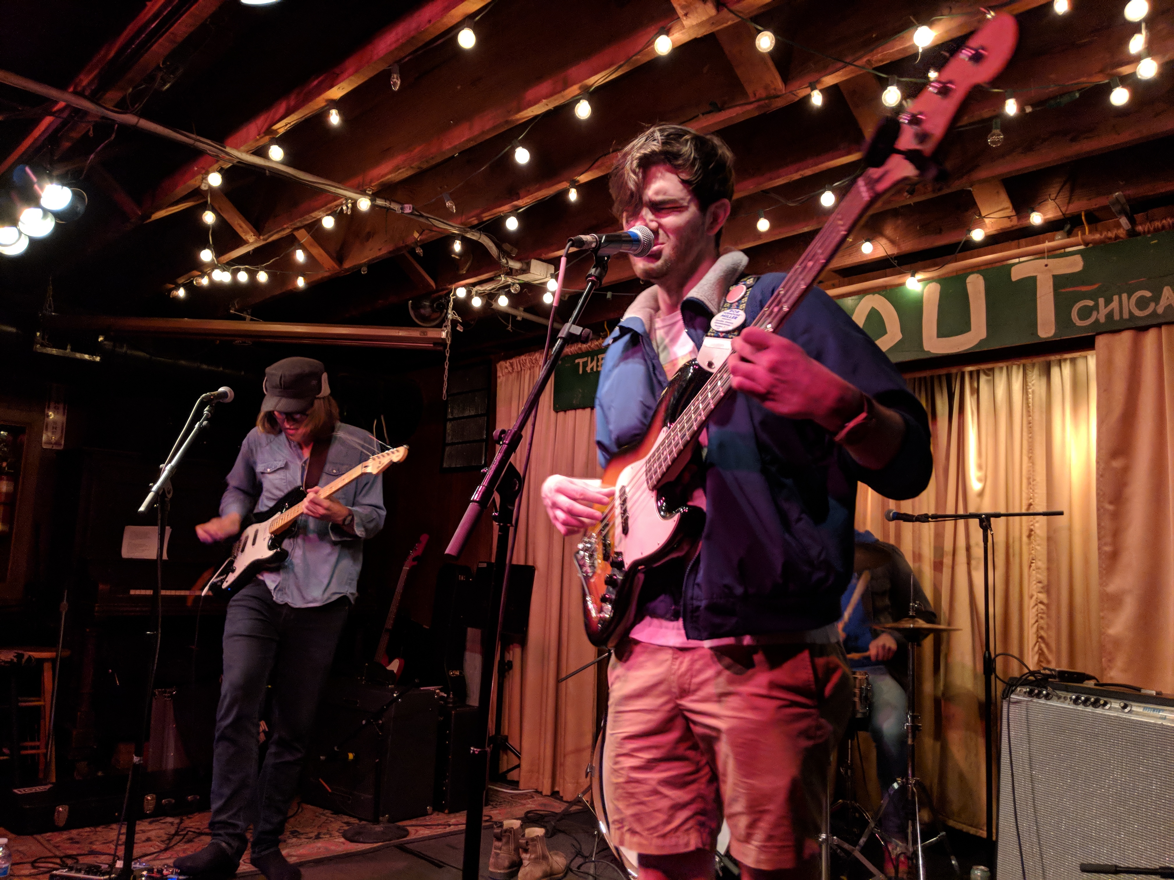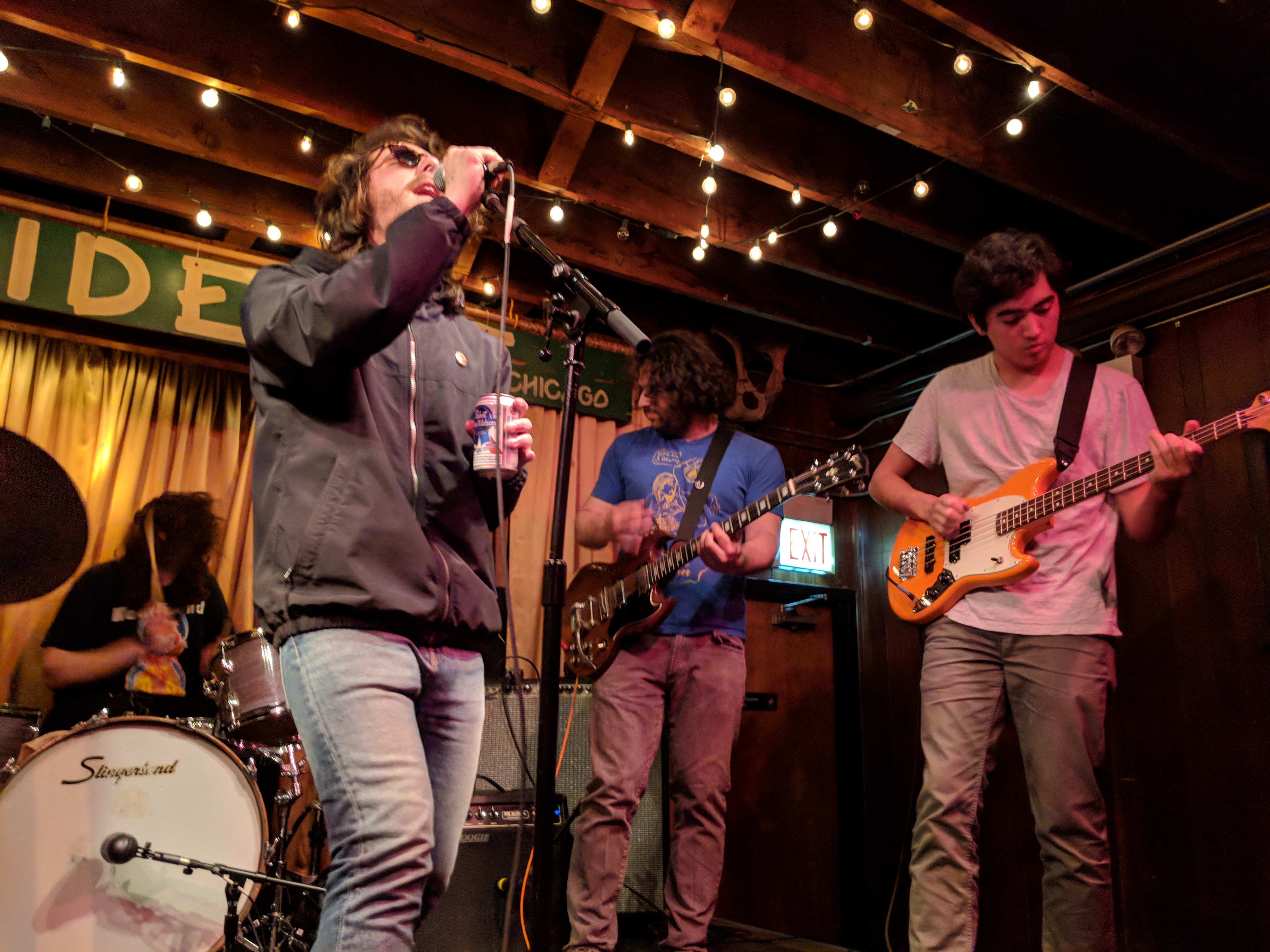 Pointers had three guys on the stage and a fourth experimenting with projecting images onto the band. In the way it was used, I’m not sure it added anything beyond blinding the drummer. The three musicians definitely seemed to be exploring their way through the set. Chatter about what song to play next may have been intended to seem improvisational, but it drained some of the energy from the room. But, they had nice bouncy tunes. I especially liked “Streetcrosser,” and did feel driven to go find it on their Bandcamp page afterwards for repeat listens. Hopefully, they will continue to develop and tighten their stage craft.