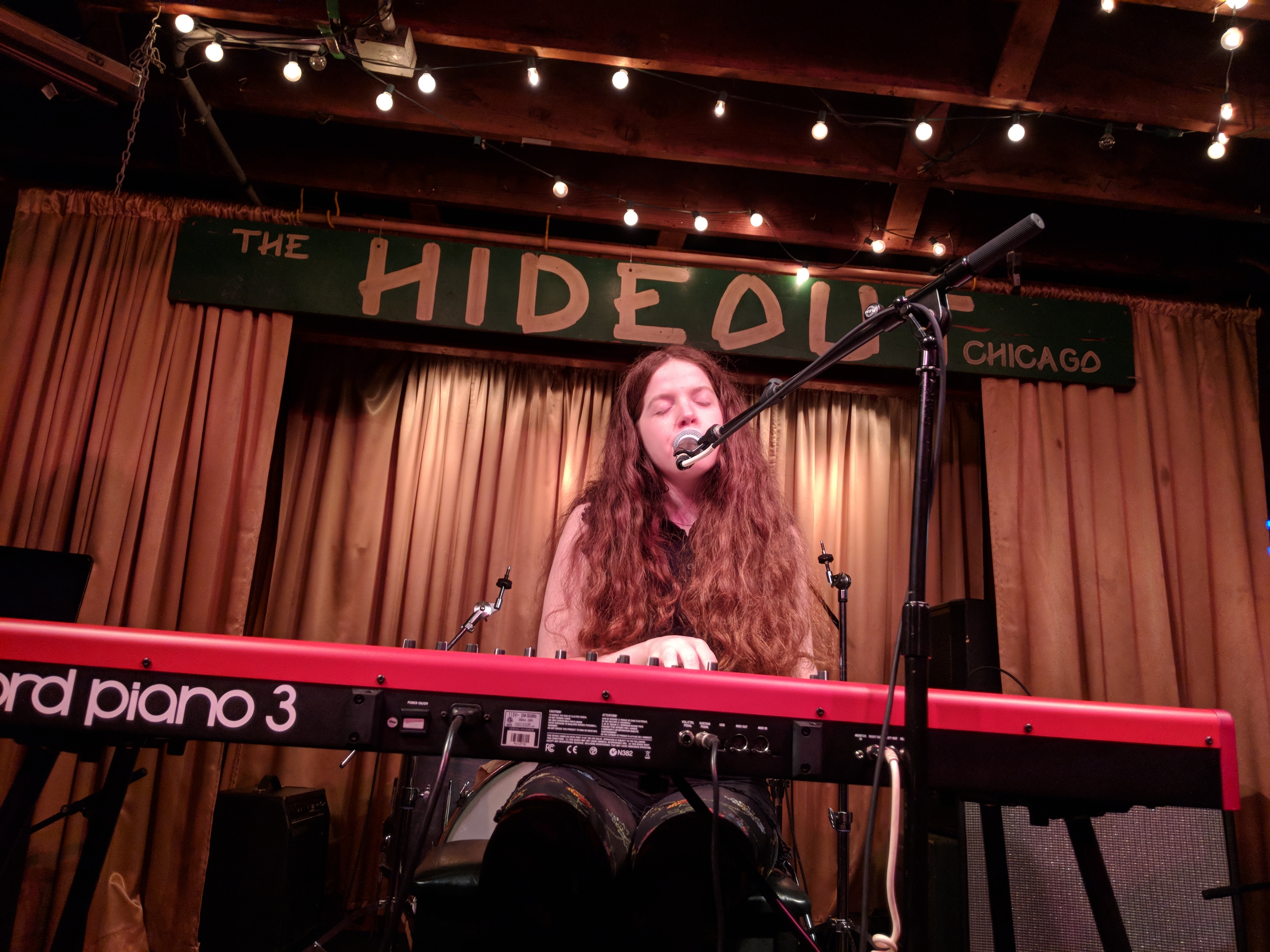 Caroline Campbell’s voice is entrancing. It’s strong, seductive, and caressing as she plays the keyboard, holding the stage completely on her own. When she is joined by Ben Taylor on Novation bass and Alex Taylor with the tambourine/shaker, it rounds out the sound in a really nice way.