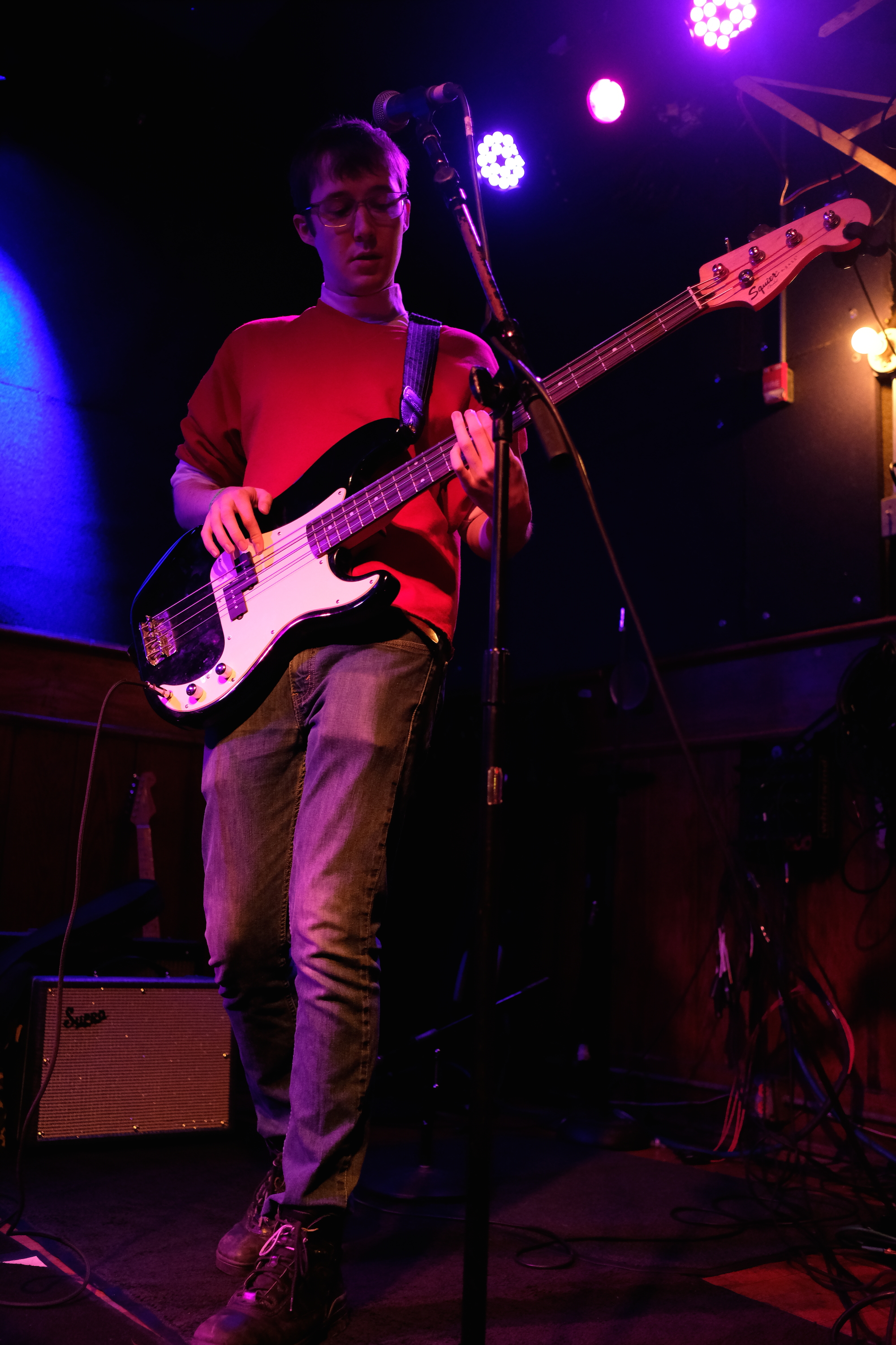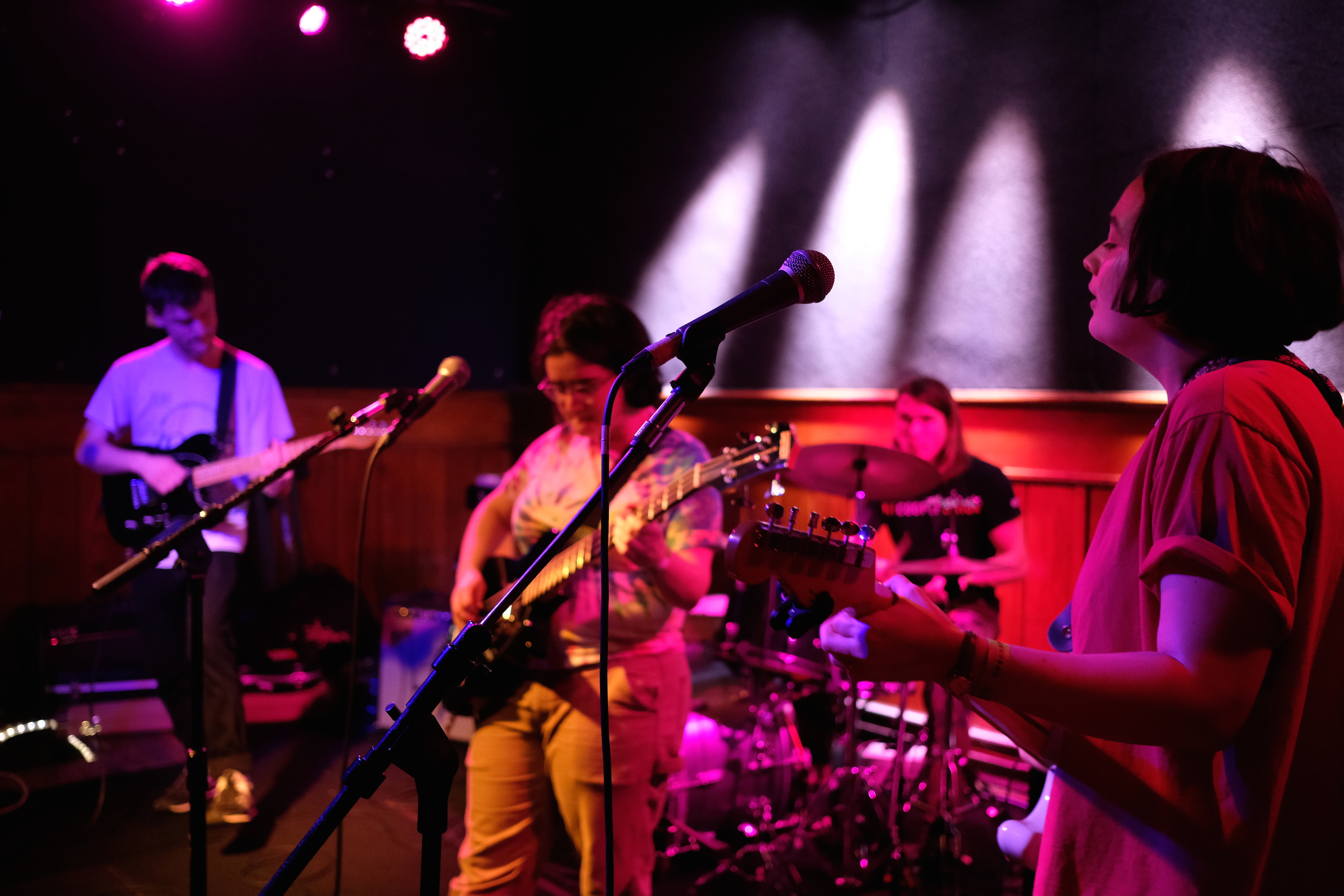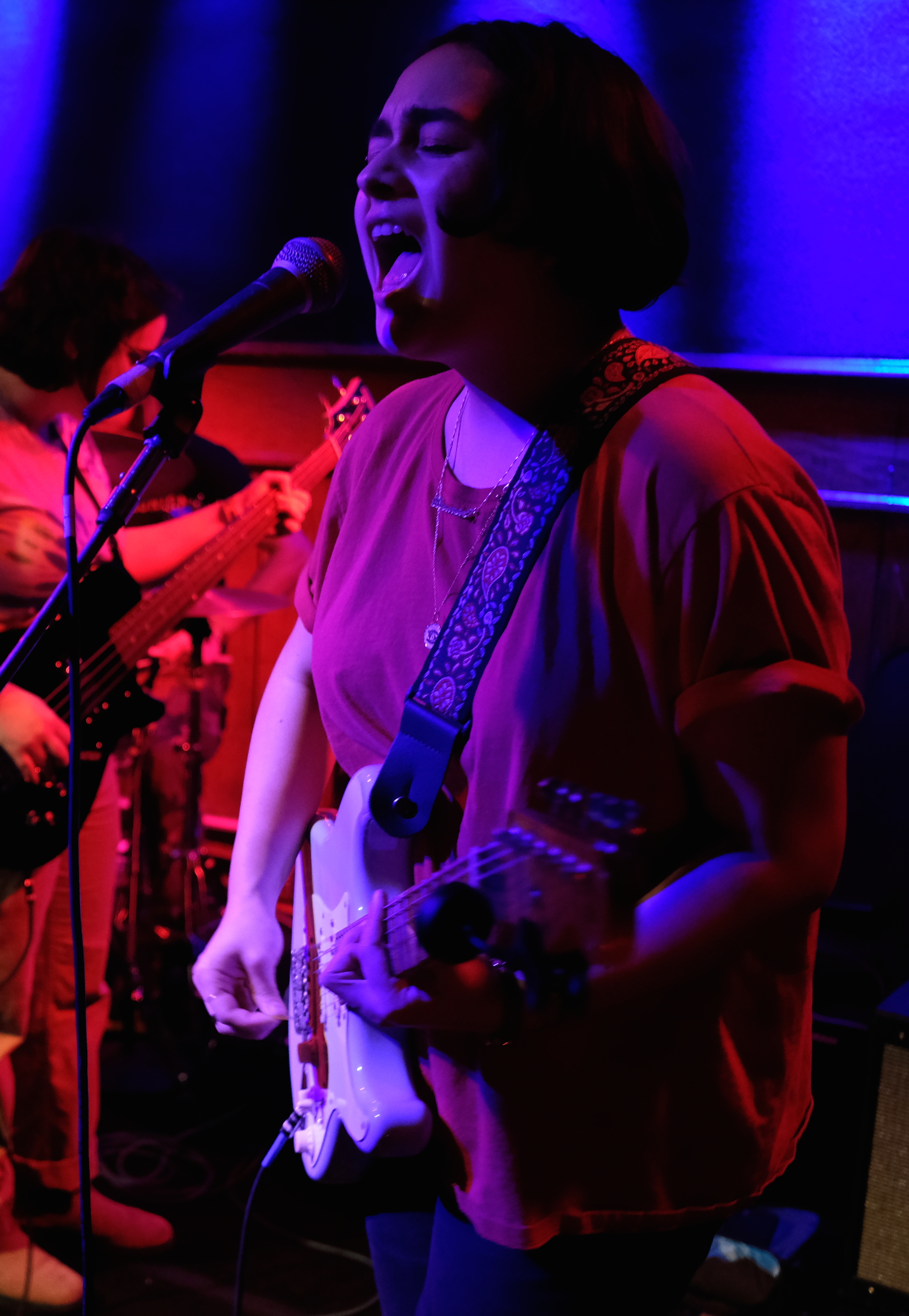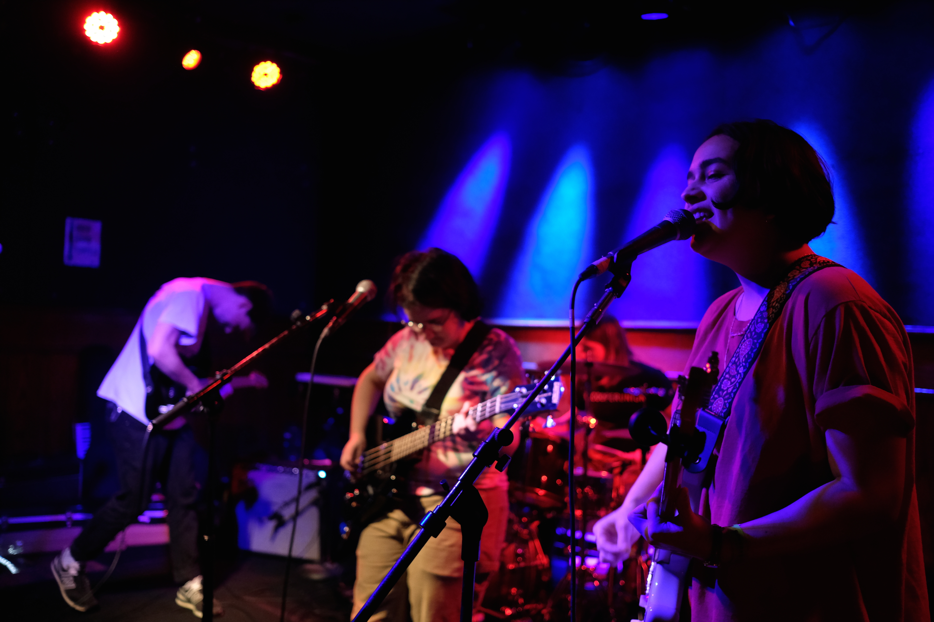 It was pretty gosh darn charming. It fits the music too, they evoke the awkwardness of life, “Do I make you nervous, as nervous as you make me?” Carmen has a perfect voice for lo-fi rock, with just a little edge that makes it sound so earnest. Jack played his guitar with passion, adding flourishes to the music, which I loved. Bassist Catherine kept time with both feet, walking and pacing out the groove. It was entrancing to watch Connor at the drums; he almost looked like he was holding back his aggression, like he should be pounding out the fastest punk or heavy metal. But it came in handy on their more power-chord-heavy songs. Like when they closed with “Unwell.” He started dusting the drums with wire brushes, but in that key moment when the song kicks up, he threw those aside in favor of sticks and they all let loose. The pure joy on all their faces was something to behold. That emotional release is definitely why there were so many devoted fans in the audience.