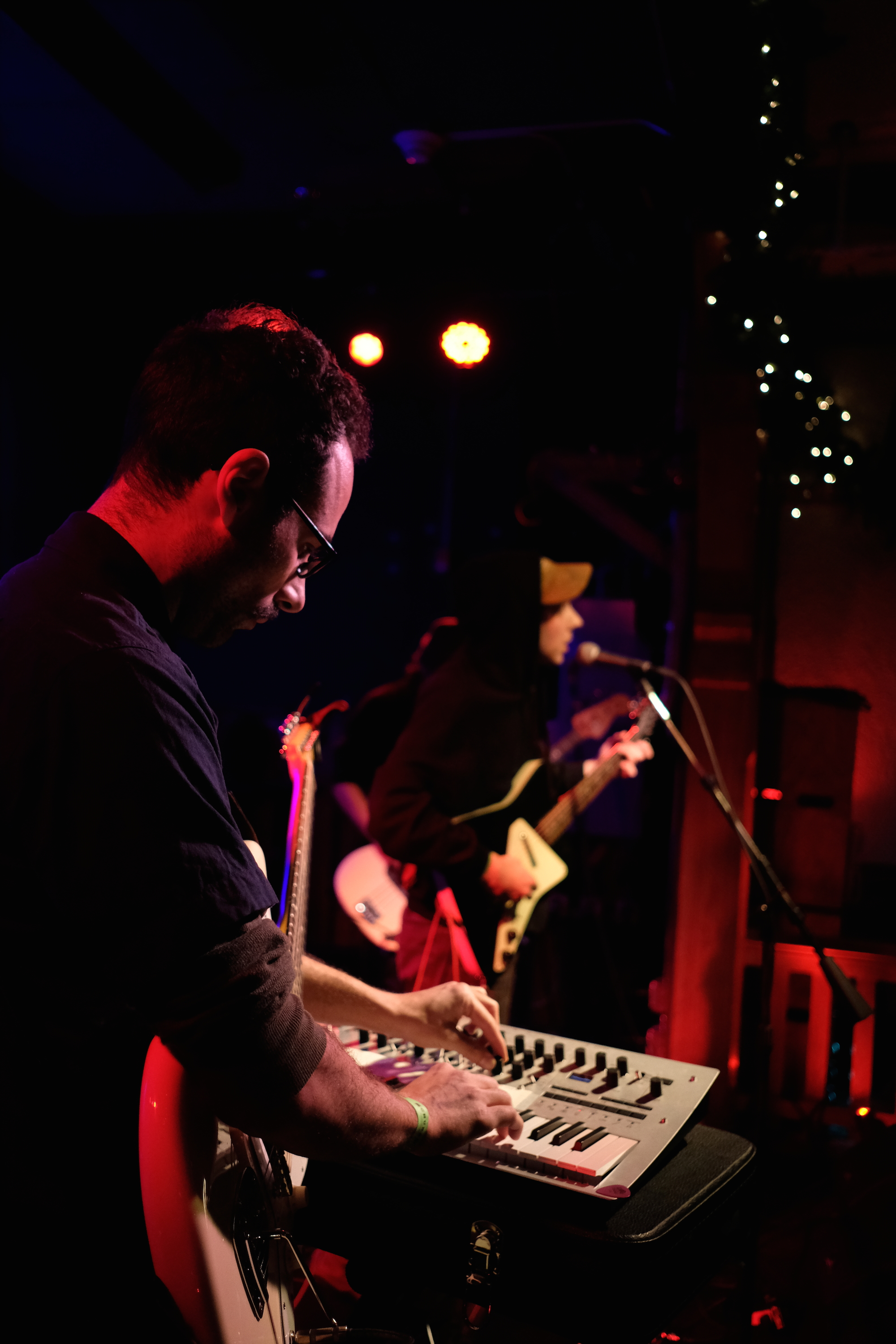 As Trace Mountains began to play, they laid down an unassuming groove. All members of the band were fully invested in the well-crafted songs created by frontman Dave Benton. He gave us a passionate delivery as he sang. He also hit on some delicious guitarmonies with fellow guitarist Jim Hill. Jim was on double duty with electronics, a sound key to making their album A Partner to Lean On so interesting. I was glad we got a taste of that. Although there weren’t vocal effects like we get on the recordings, I liked watching Trace Mountains bring new life to the songs I loved on the album. I’m all about that energy the performer brings to the space. David handled a full chatty house with cool humor and delivered a performance both happy and relaxed.