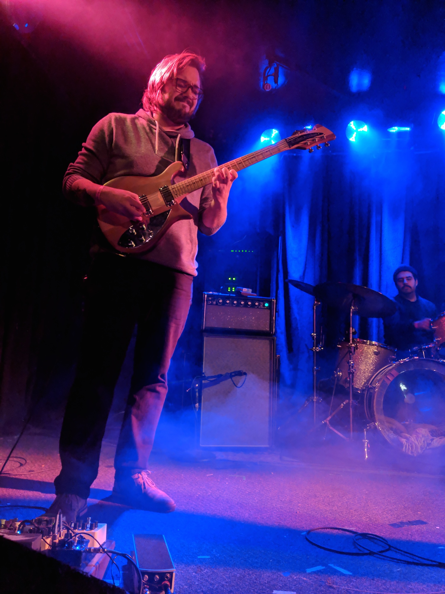 Through the noise and distortion, you could feel the love and tenderness Slow Mass was putting into their first song, “Oldest Youngest.” The way they played seemed like practiced experimentation; their plucking, their playing, the effects they were dialing in on their instruments. I could see they were searching for a sound and then finding it. It was really cool to watch them work. Although their music mostly lives in emo washes and layered effects, they also used dry guitar and even silence. Likewise, their vocals went from tender intimacy to yelling outrage.
