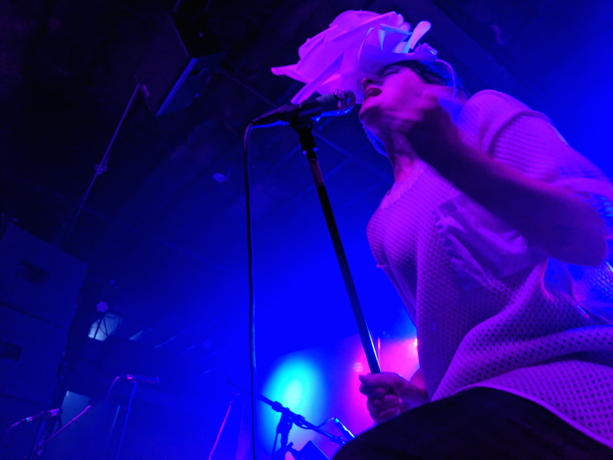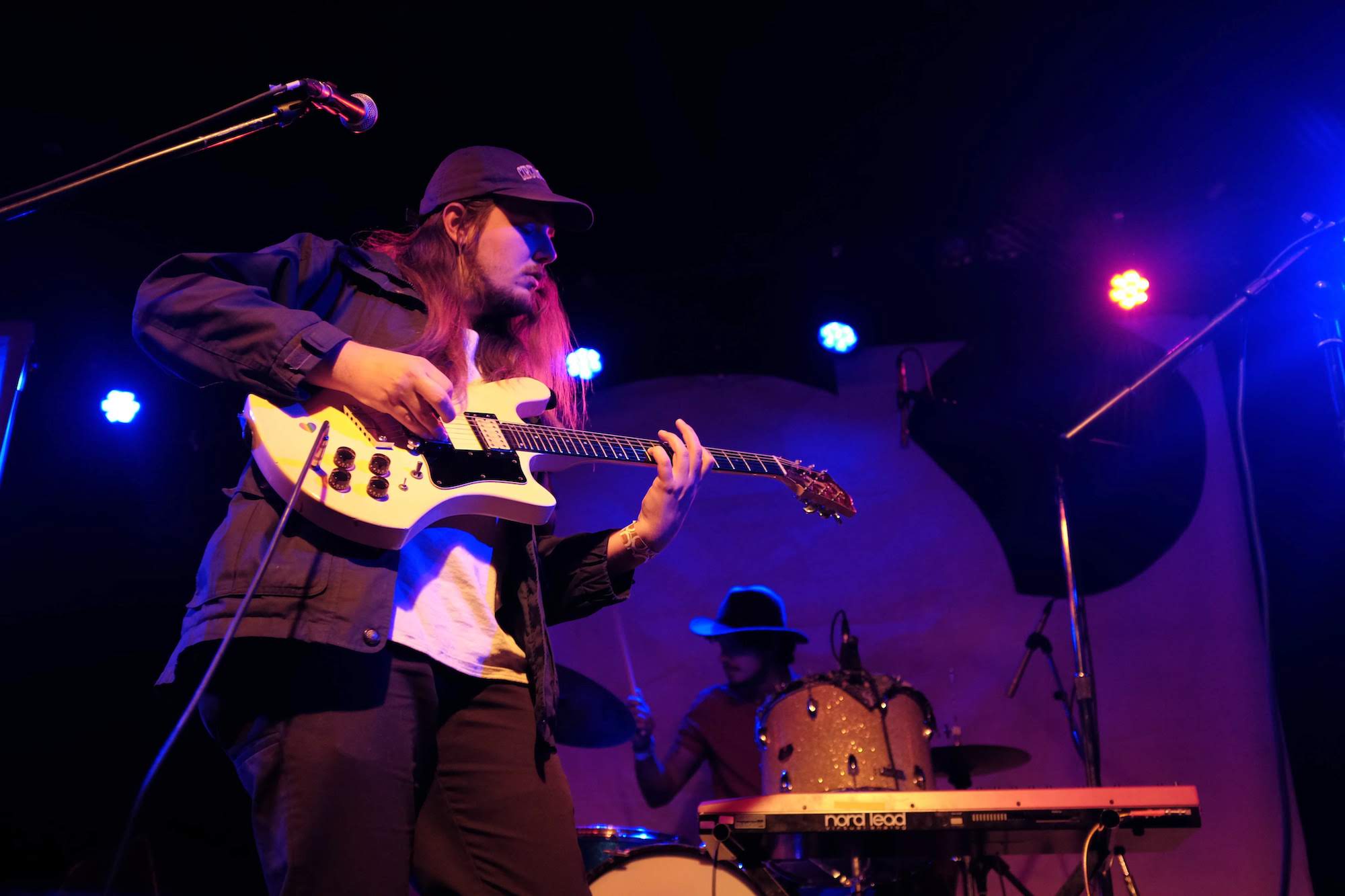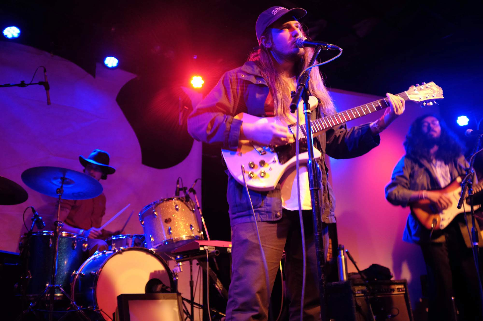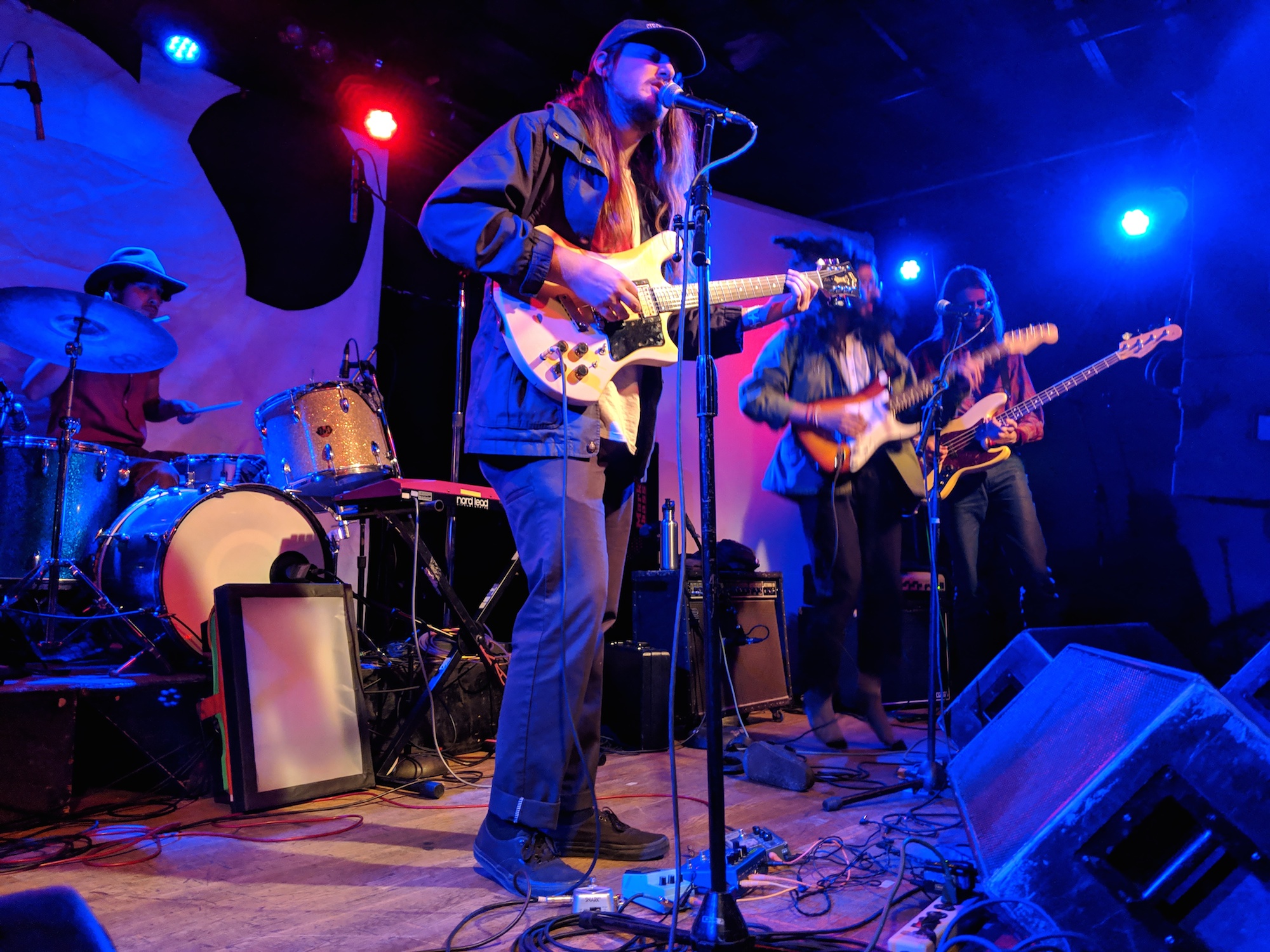 Thick Paint are a rag tag bunch that hail from Omaha, Nebraska. They play the kind of jangly rock that makes you want to let your hair down and move your whole body in free wavy glory. They emanate love and wellbeing as they play. But the music isn’t slow, it is driven forward by the tight aggressive drumming. I loved the way the lead vocals cut through the mix. The guitarist kicked off his Birkenstocks after the first song and really got into the groove. Feeling the music with the shake of his head, he bounced from the knees and had a joyful smile on his face. The whole group had a kind of happy hippie vibe.