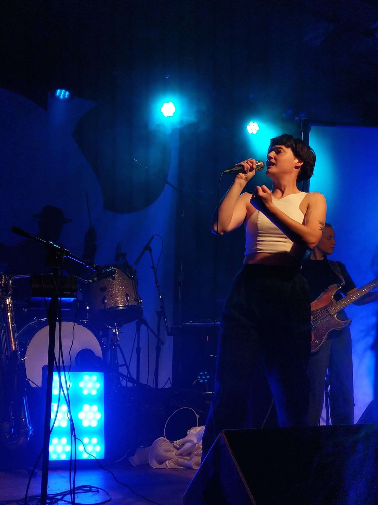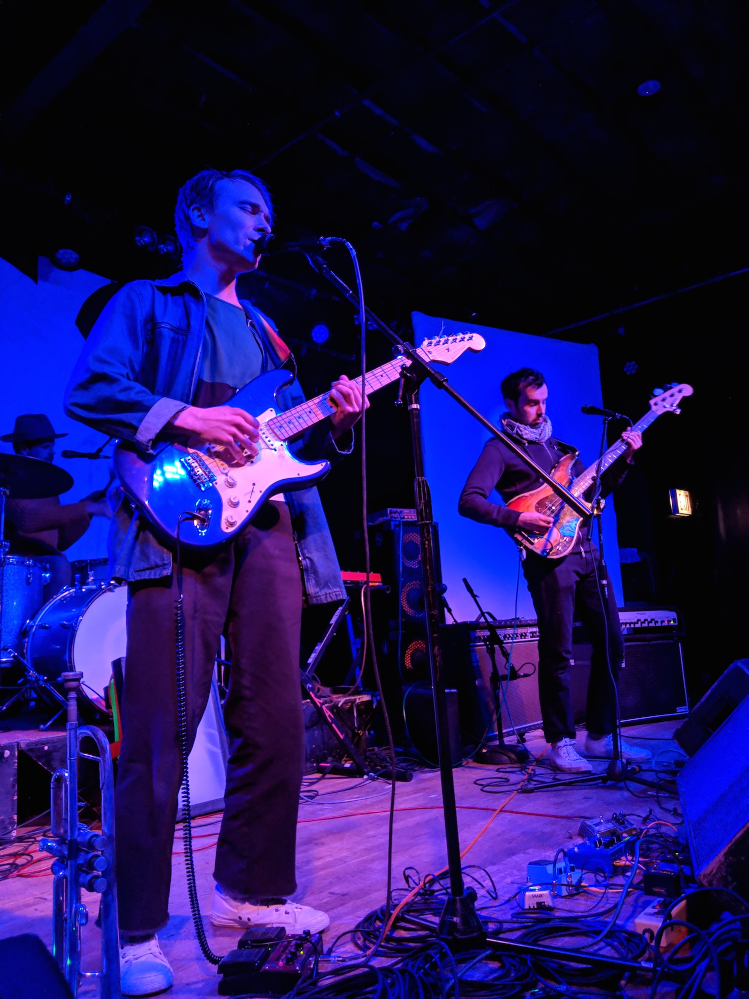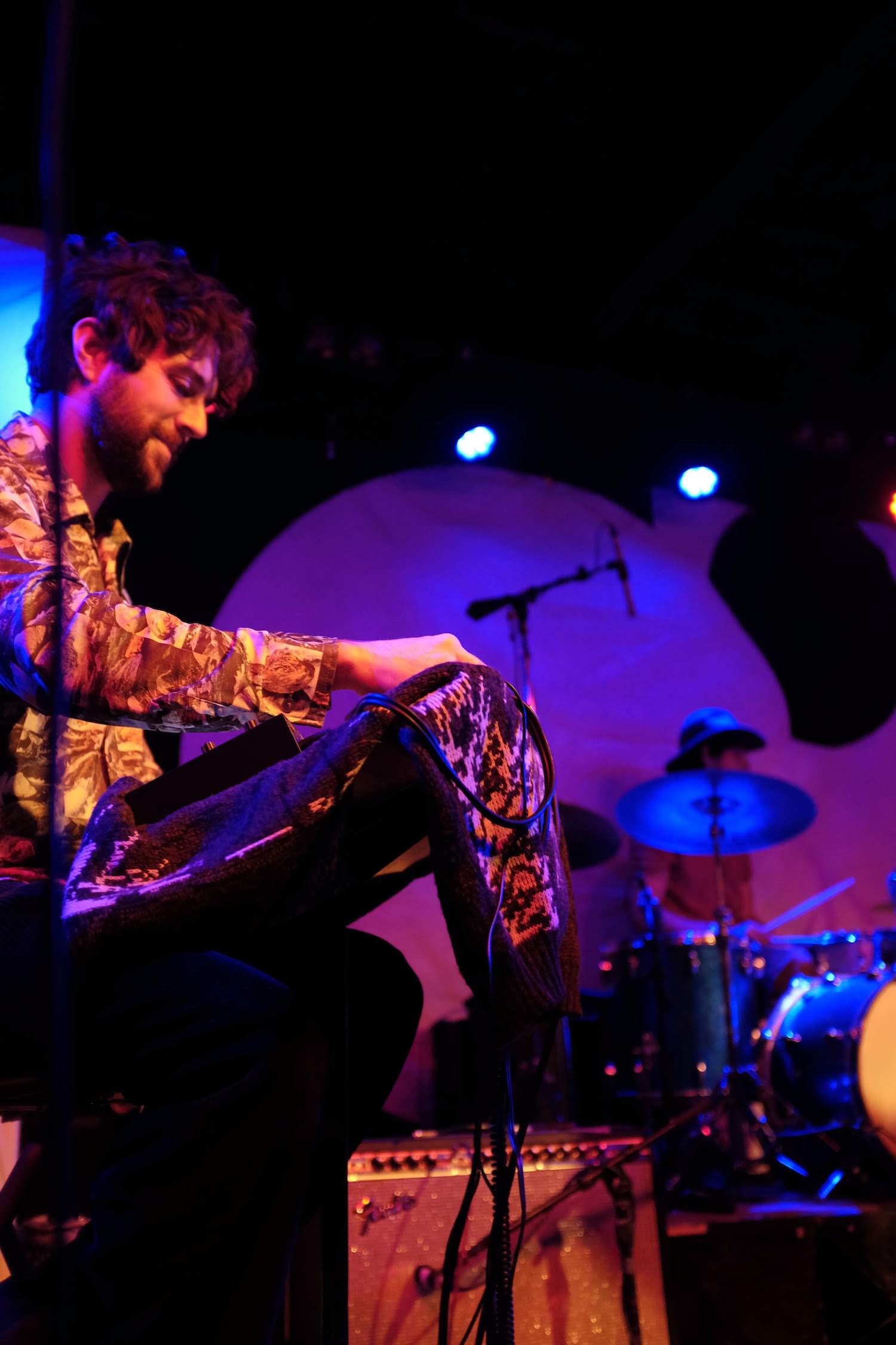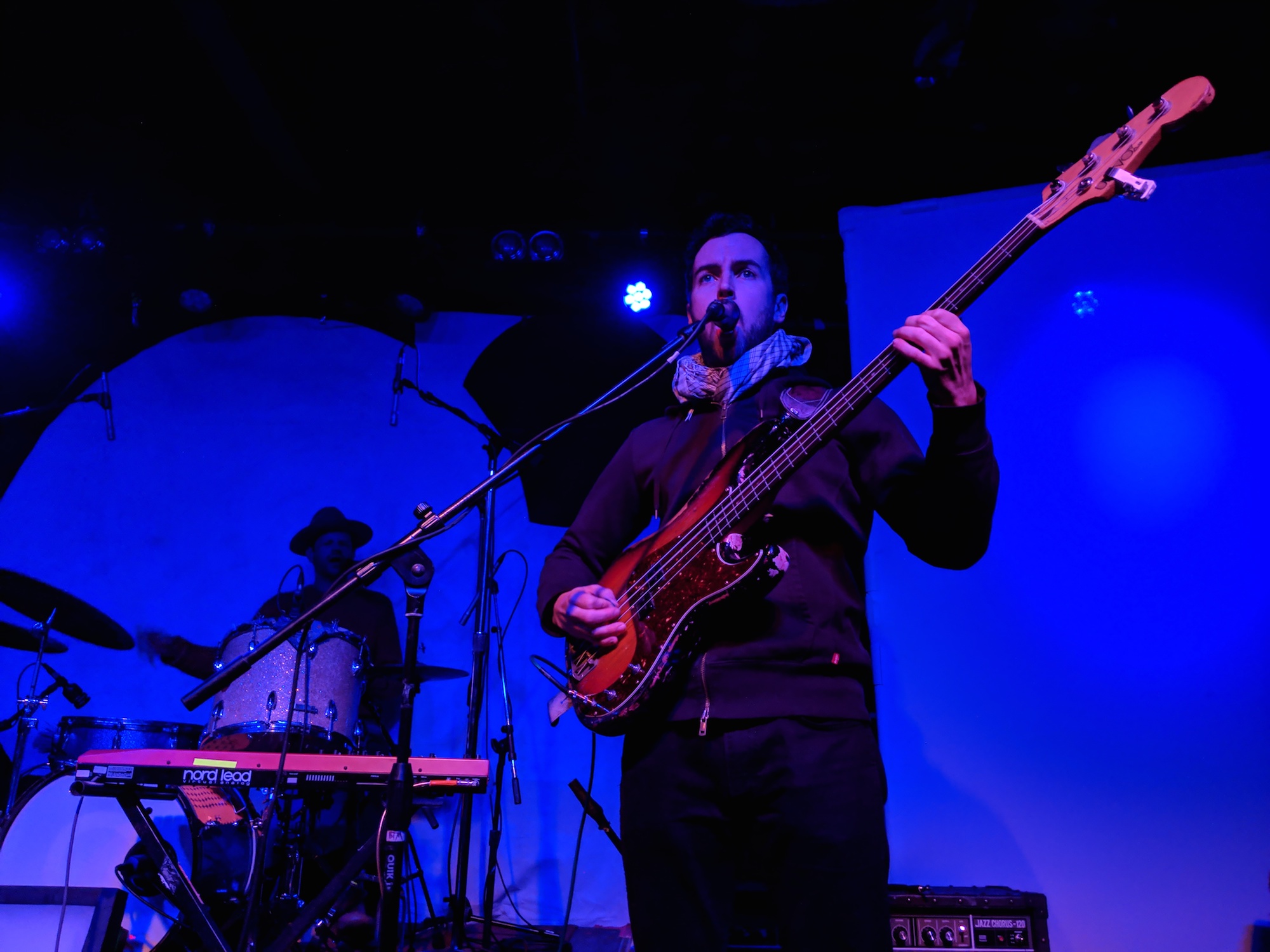 After the first song, Tōth was pretty happy with the crowd. As an opening band, I’m sure that can’t always be the case. They had earned our attention with their body-moving music. The trio is led by Alex Toth, who’s also half of the duo that leads Rubblebucket. We’d later discover that the bassist and drummer play in Rubblebucket, too. Here, the drummer was playing much looser, more erratic. He moved his long arms fluidly and created unusual rhythms. The bassist, Ryan, was rhythmic, his fingers ran up and down the neck. Both sang really lovely harmonies to Alex’s lead vocals. Speaking of, I loved his voice, especially when he took it into falsetto. I dug their style of music which was a modern, languid groove with folk and world music influences.