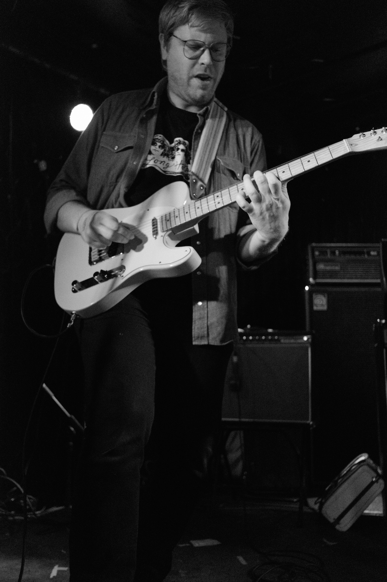 It felt like a left turn from overwhelming noise to melodic guitar-tickling rock, or even from loose passion to craftsmanship when Axis:Sova took the stage. Axis:Sova are backed by a drum machine, which provided a structured rhythm section. Their style of rock is usually heightened by some jamming, but for the most part they seemed to stick to the script. At times, each band member seemed in their own world, playing with their heads down in concentration. The best moments were when we got some guitar interplay between Brett Sova and Tim Kaiser. I liked Brett’s languid, drawn out style of singing. The whole crowd got behind “(Like an) Intruder.”