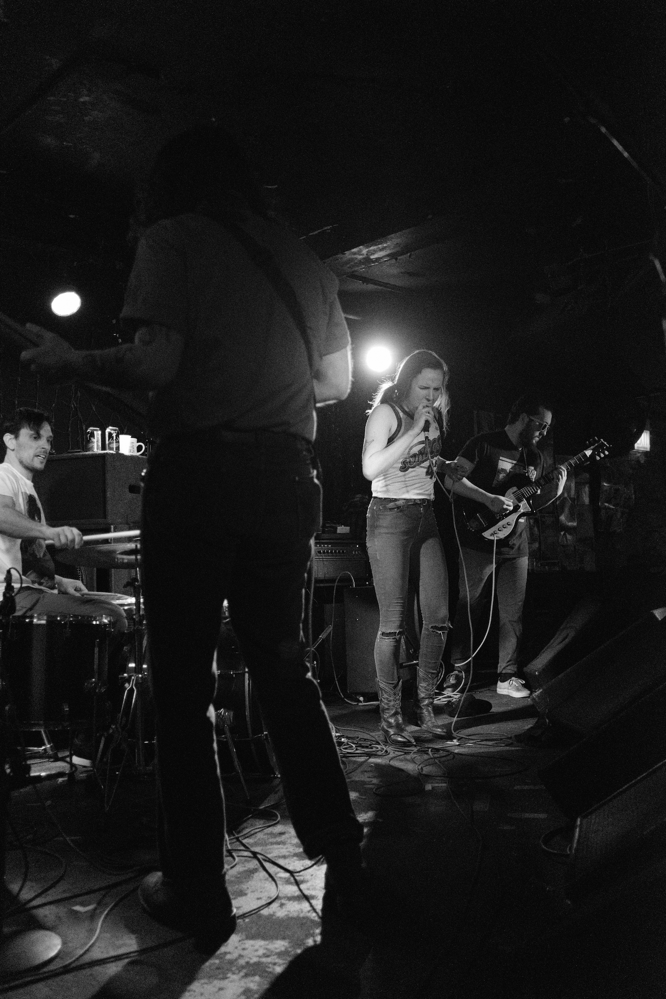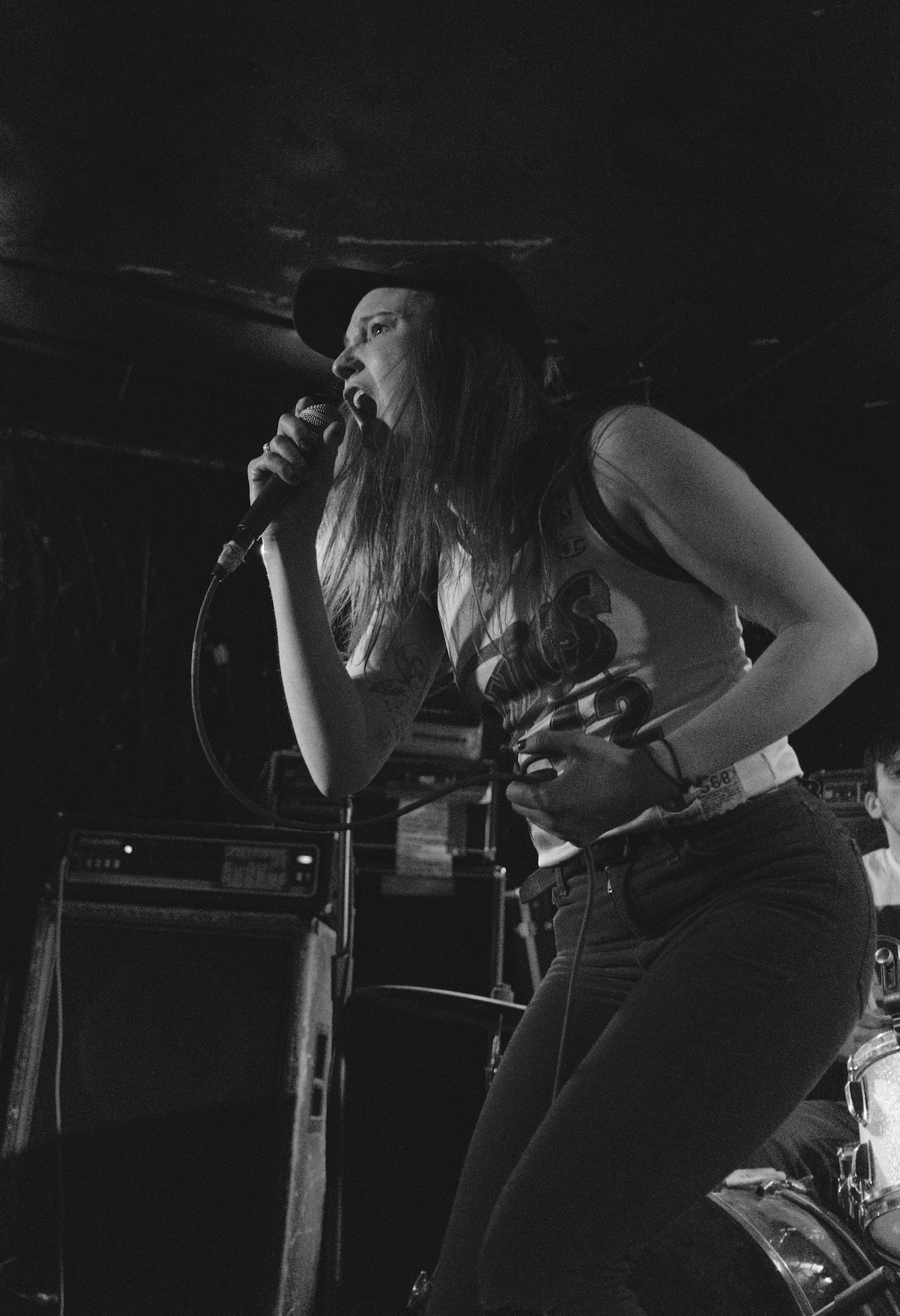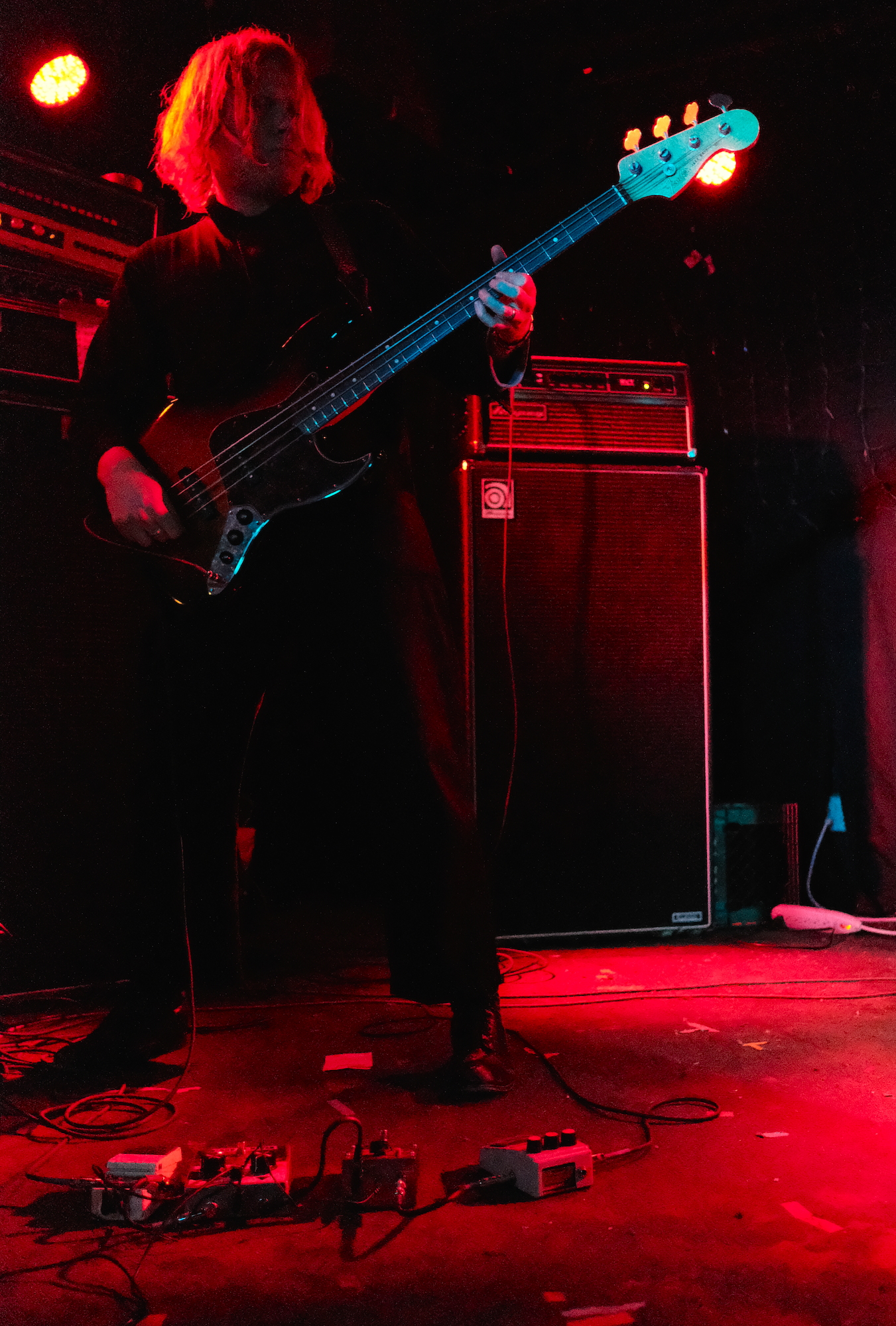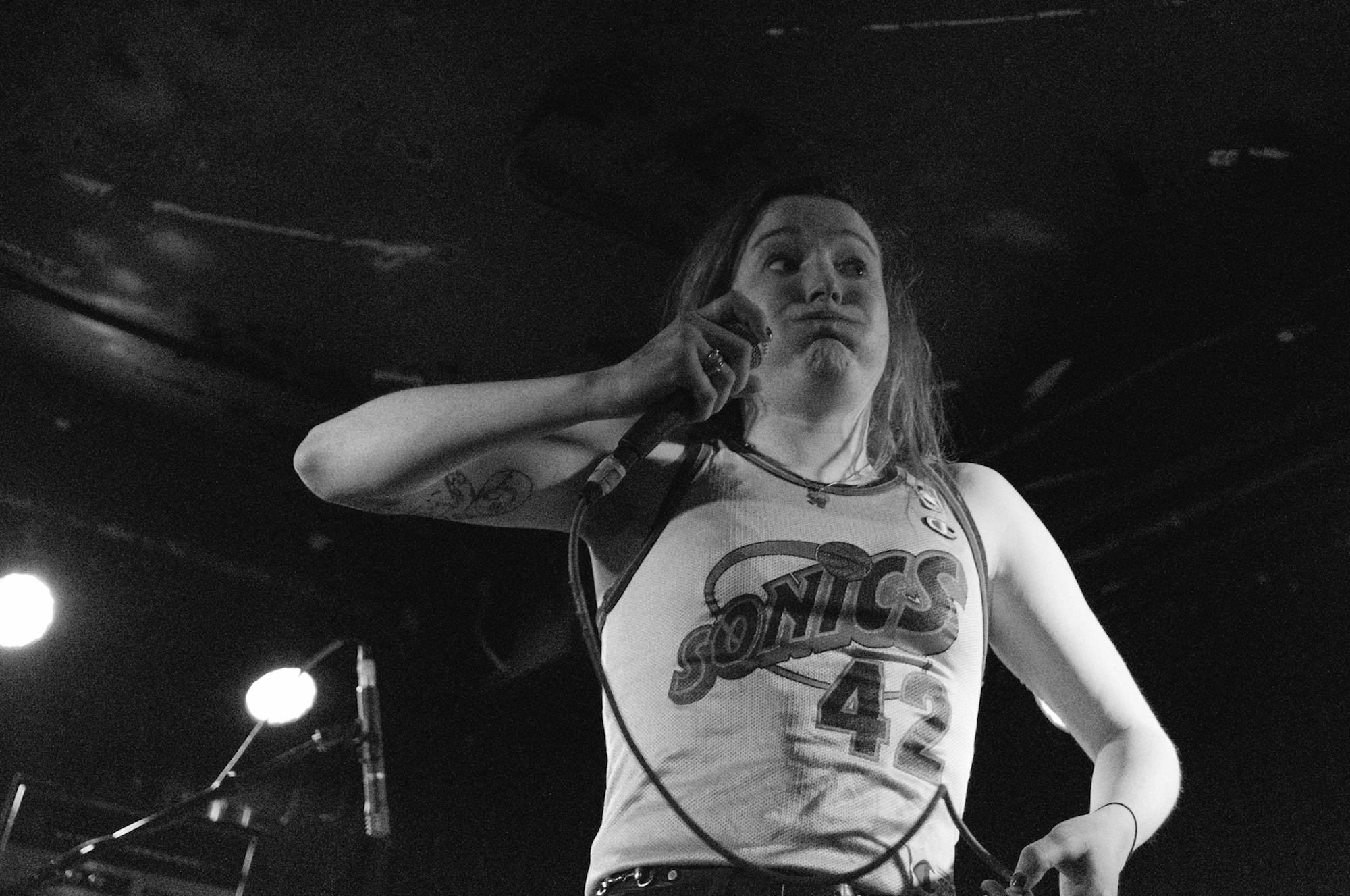 Maddie Davis, lead singer of TUMS, had a luminous smile but also had plenty of rage. She paced and danced across the stage—my fav was the occasional elbow flapping chicken dance, juxtaposing levity against angry music. All three of the dudes on the stage with Maddie played the set a loosely, favoring force over accuracy. Sometimes, thrash music feels like it’s screaming right at me, but TUMS deliver short, fast bursts of joy. Just when my heart started to thump in time, the song would be over.