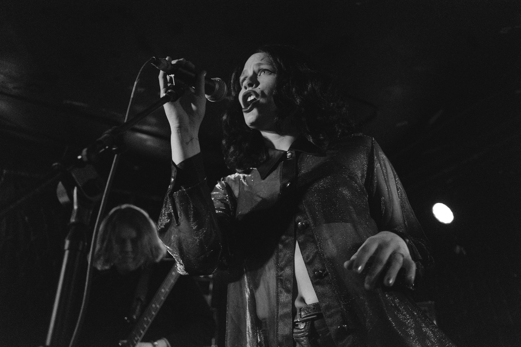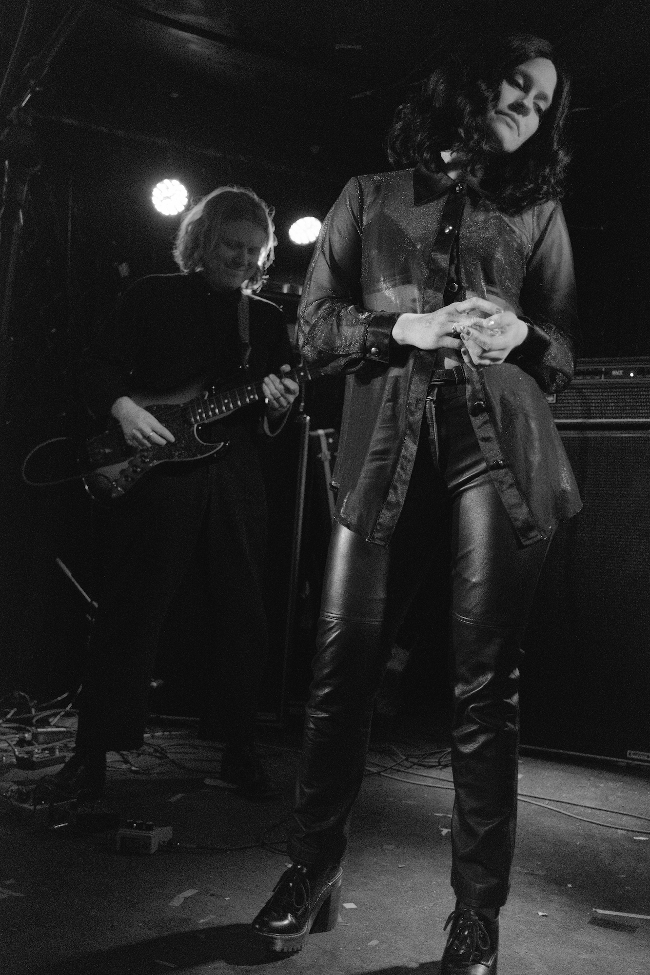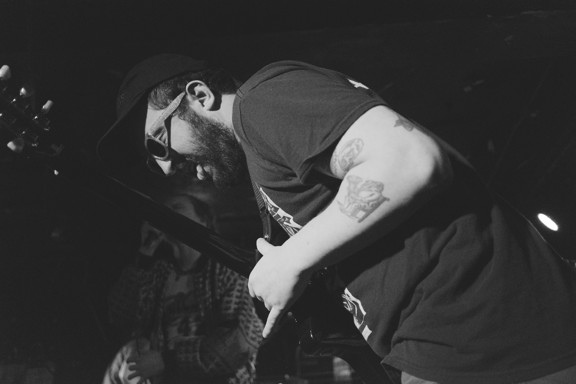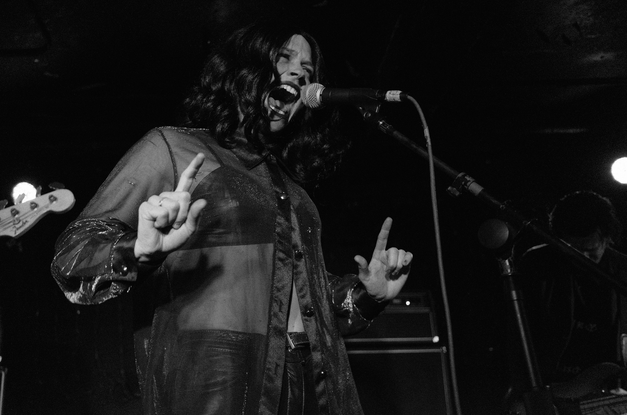 Maddie Davis, lead singer of TUMS, had a luminous smile but also had plenty of rage. She paced and danced across the stage—my fav was the occasional elbow flapping chicken dance, juxtaposing levity against angry music. All three of the dudes on the stage with Maddie played the set a loosely, favoring force over accuracy. Sometimes, thrash music feels like it’s screaming right at me, but TUMS deliver short, fast bursts of joy. Just when my heart started to thump in time, the song would be over.
