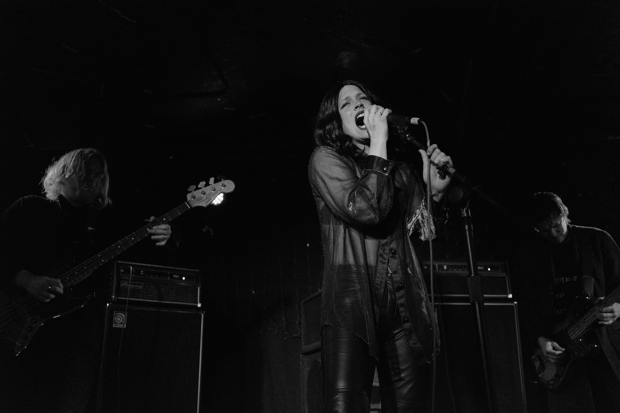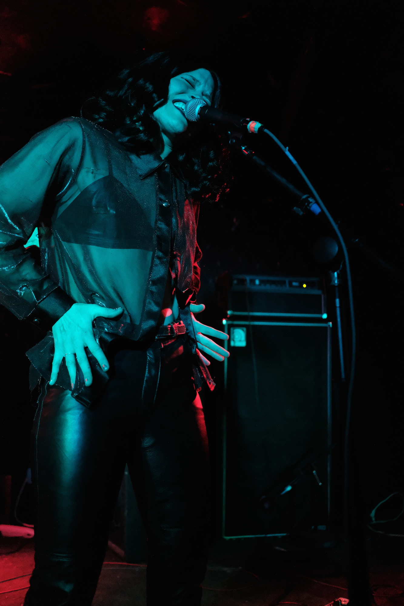Denée Segall was imperious as she took the stage. When the drum machine kicked in, it had a wooden block, toy-like sound, completely different than anything a drum kit could give us. It was cold and unforgiving. And as The C.I.A. played, it was exactly right. Denée was a chameleon. She was soft and inviting, then threatening and angry, then innocent and pious. As I looked at her through my lens, I was reminded of the early work of Cindy Sherman and how she played with female identity, conveyed the threatening presences we have to endure in this world. The C.I.A.’s music expressed the fears and pain and anger we are all living with right now. Denée completely embodied that message.