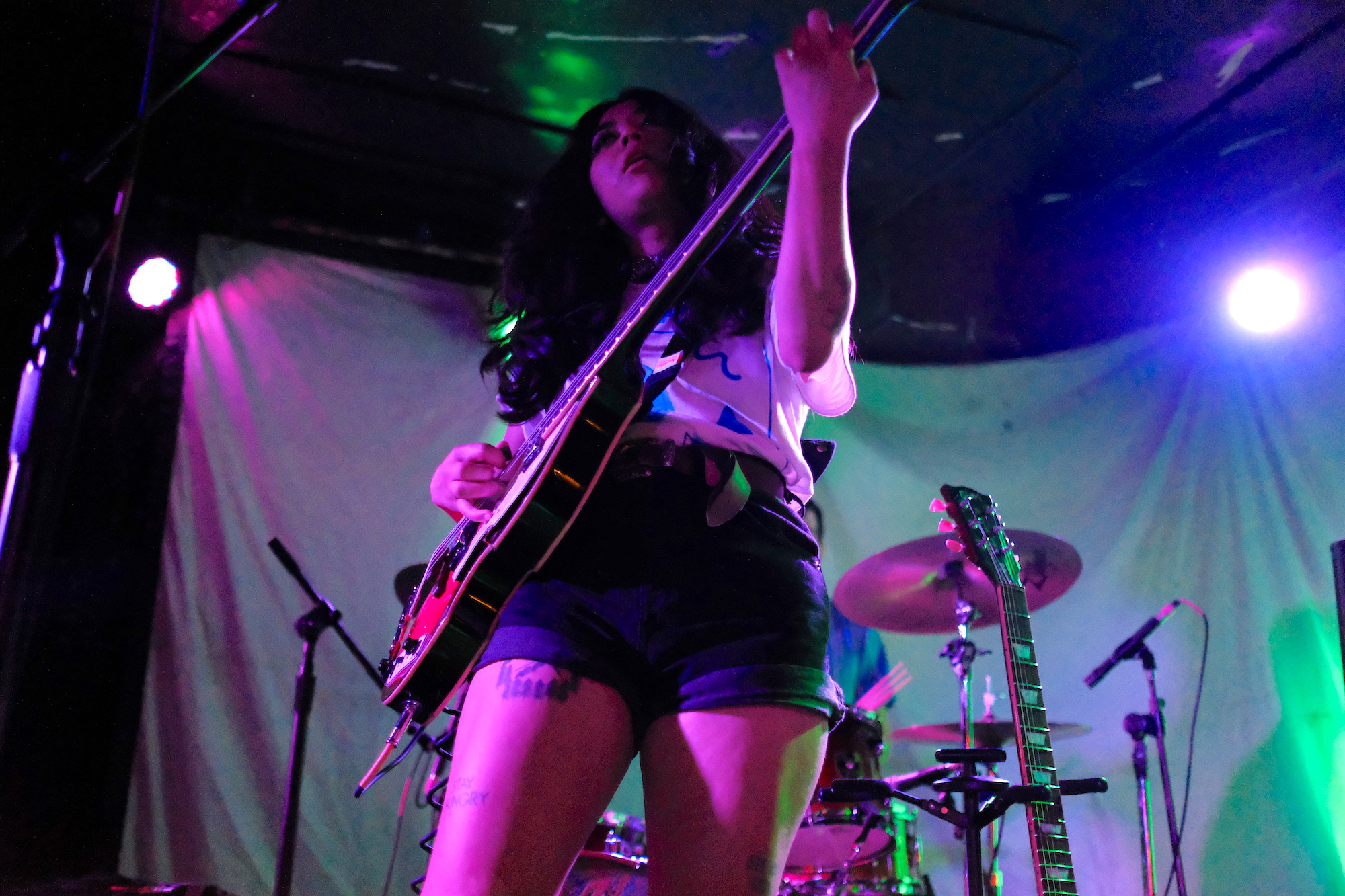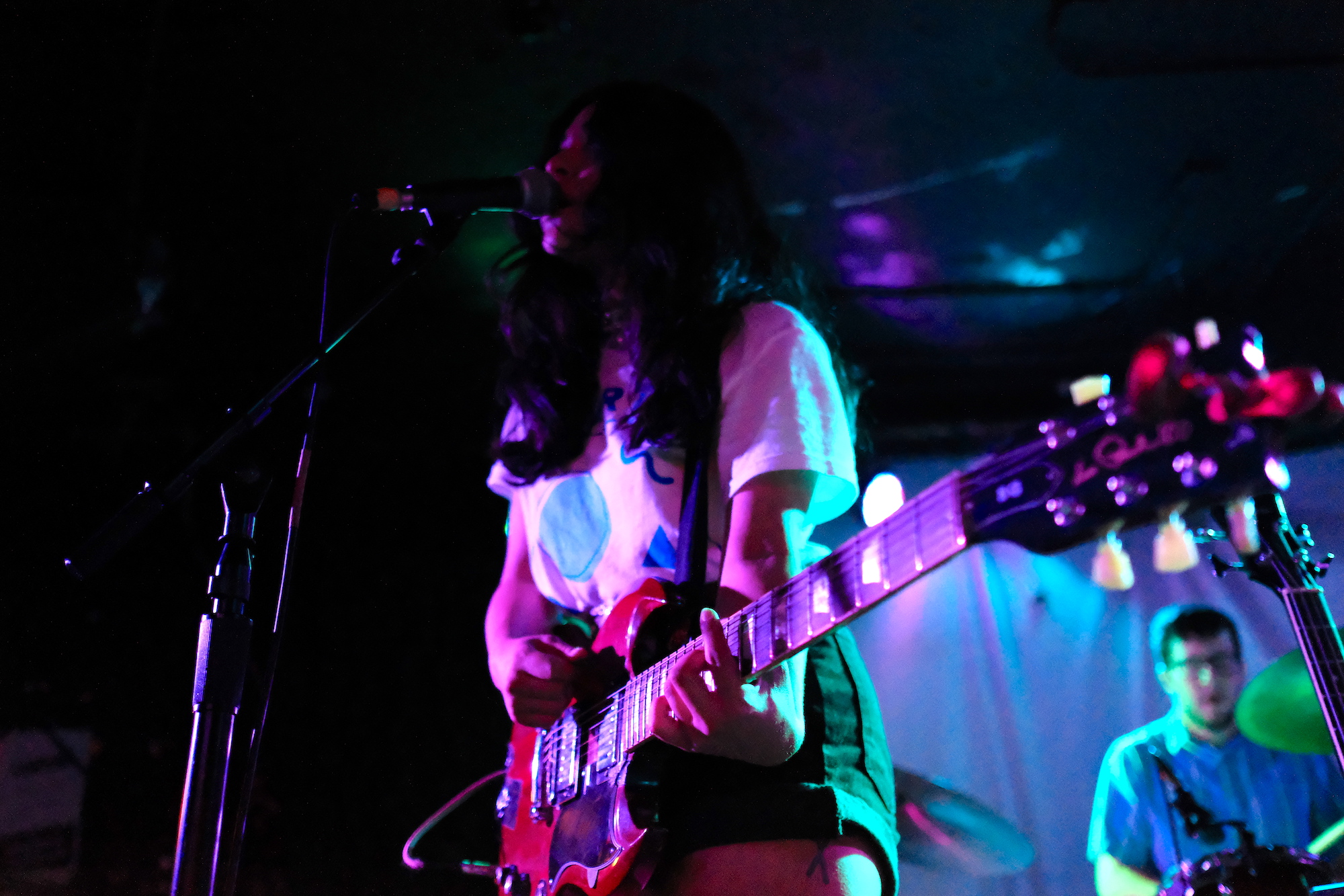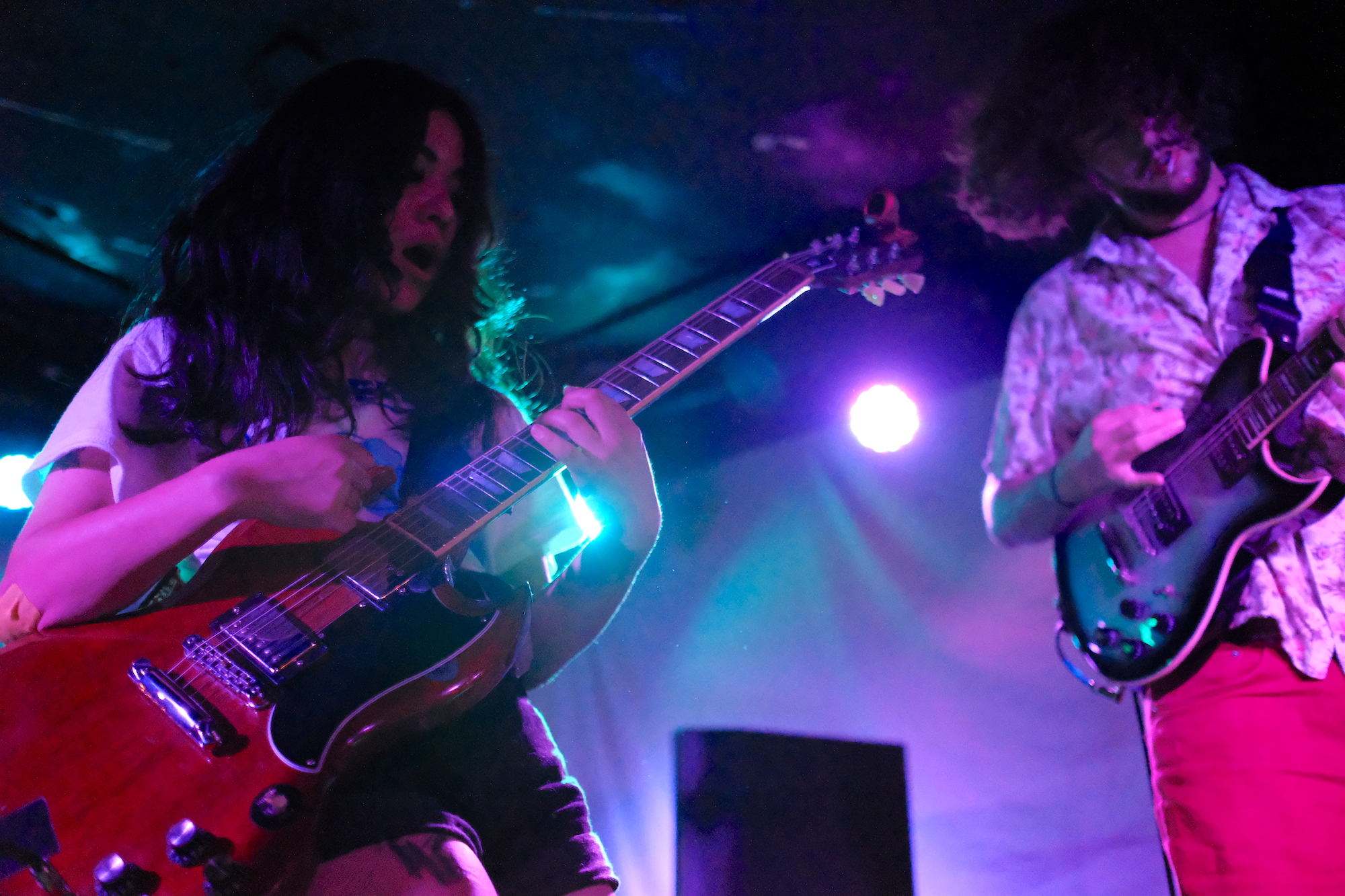 Cold Beaches played the show short a bass player, so Sophia Nadia took it on (and nailed it, as far as I could tell). But it is Sophia Nadia’s vocals that are central to Cold Beaches. She went from a whispered depth to an edged roar. Whether crooning or shouting, she was a figure you had to watch. She stood up to the draw of Charlie B. Atchley, which is no small feat. He’s a guitarist that’s hard to ignore. He is very tall, especially compared to Sophia.