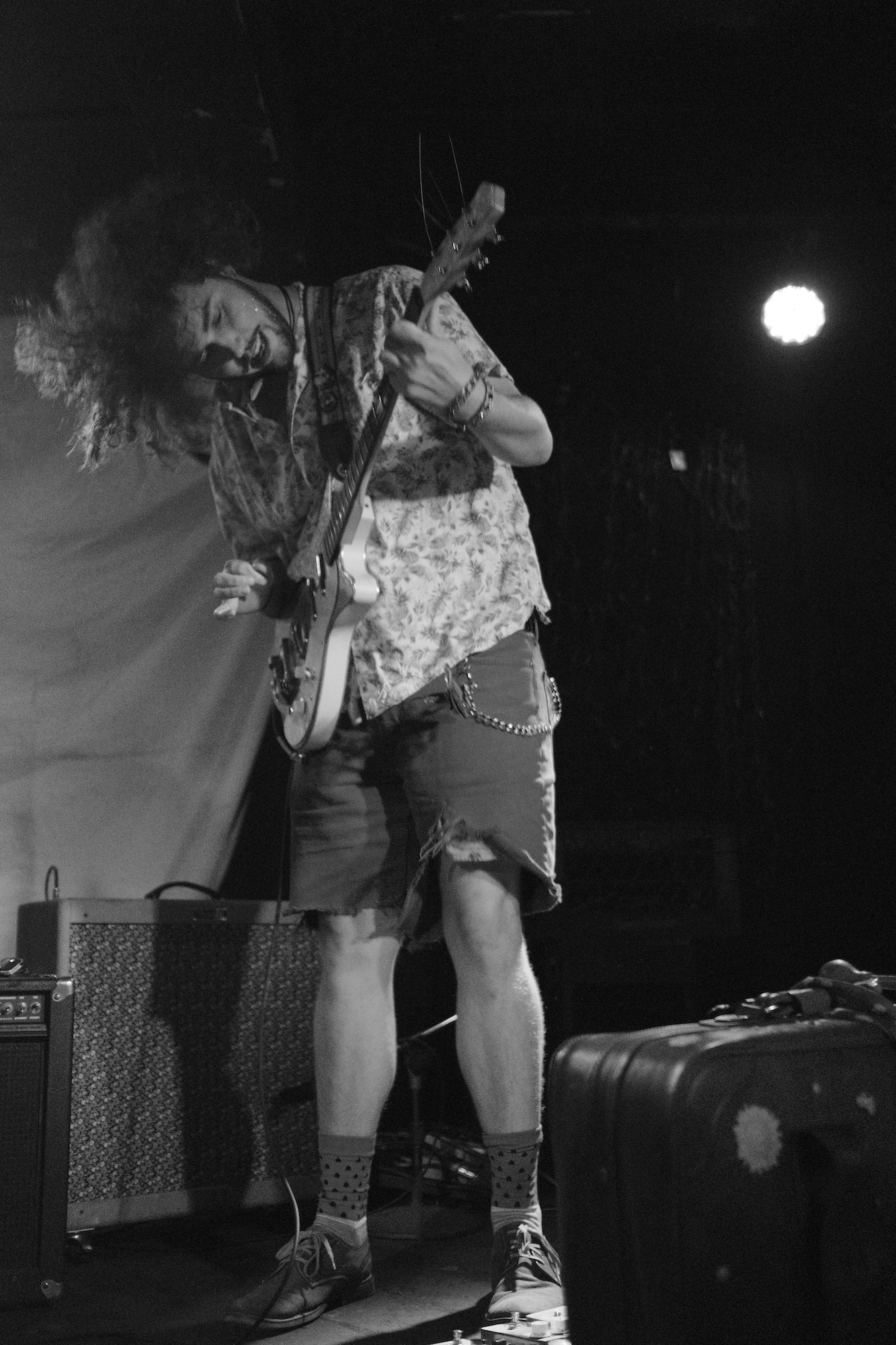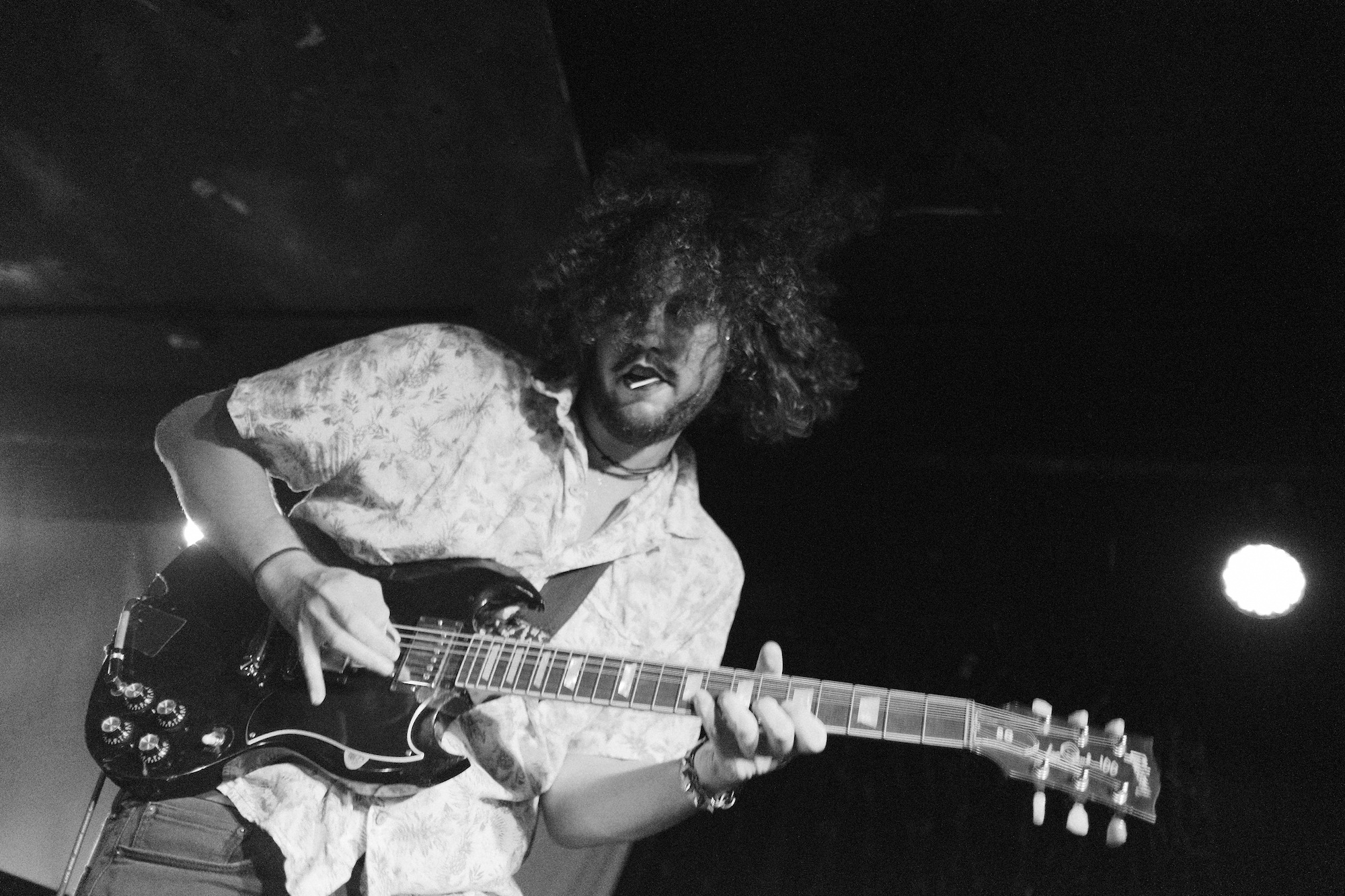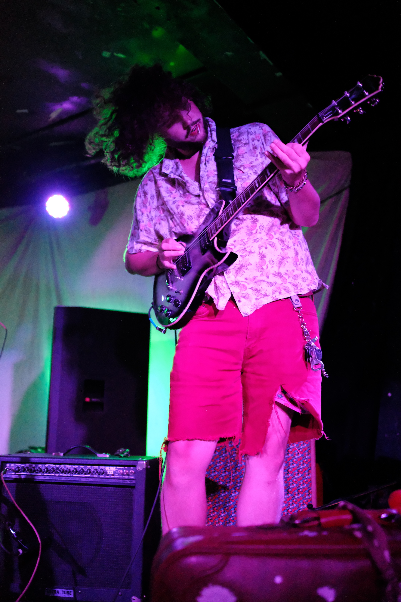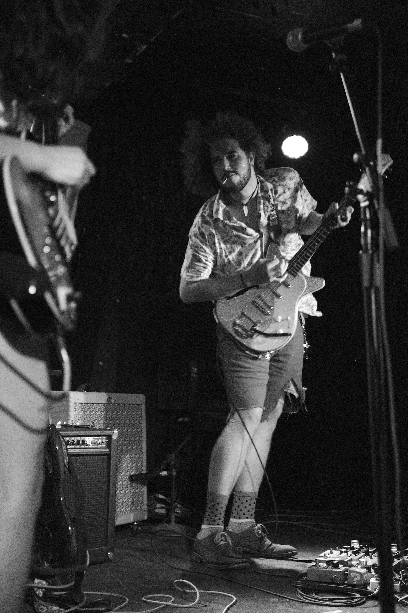 Cold Beaches played the show short a bass player, so Sophia Nadia took it on (and nailed it, as far as I could tell). But it is Sophia Nadia’s vocals that are central to Cold Beaches. She went from a whispered depth to an edged roar. Whether crooning or shouting, she was a figure you had to watch. She stood up to the draw of Charlie B. Atchley, which is no small feat. He’s a guitarist that’s hard to ignore. He is very tall, especially compared to Sophia.