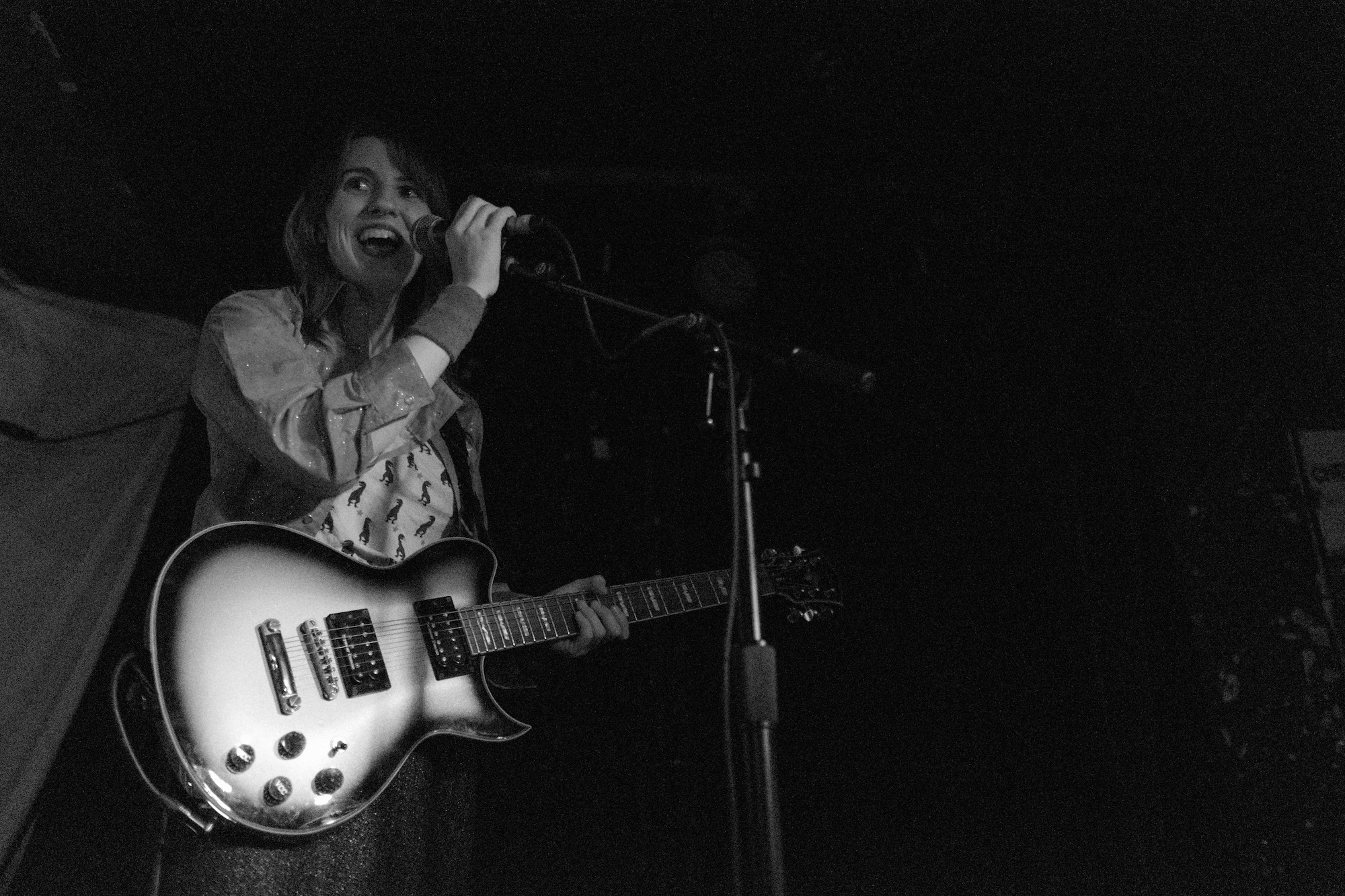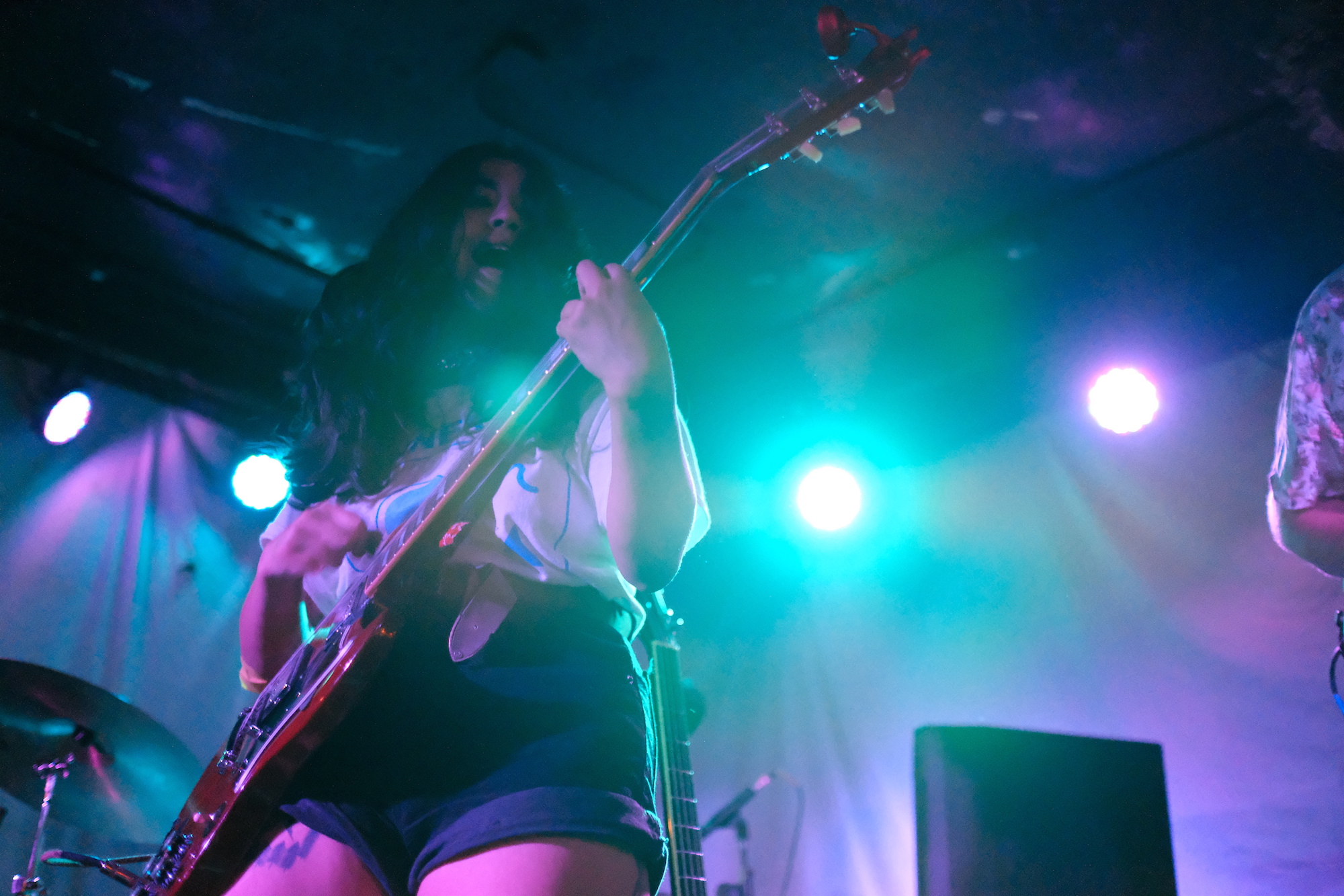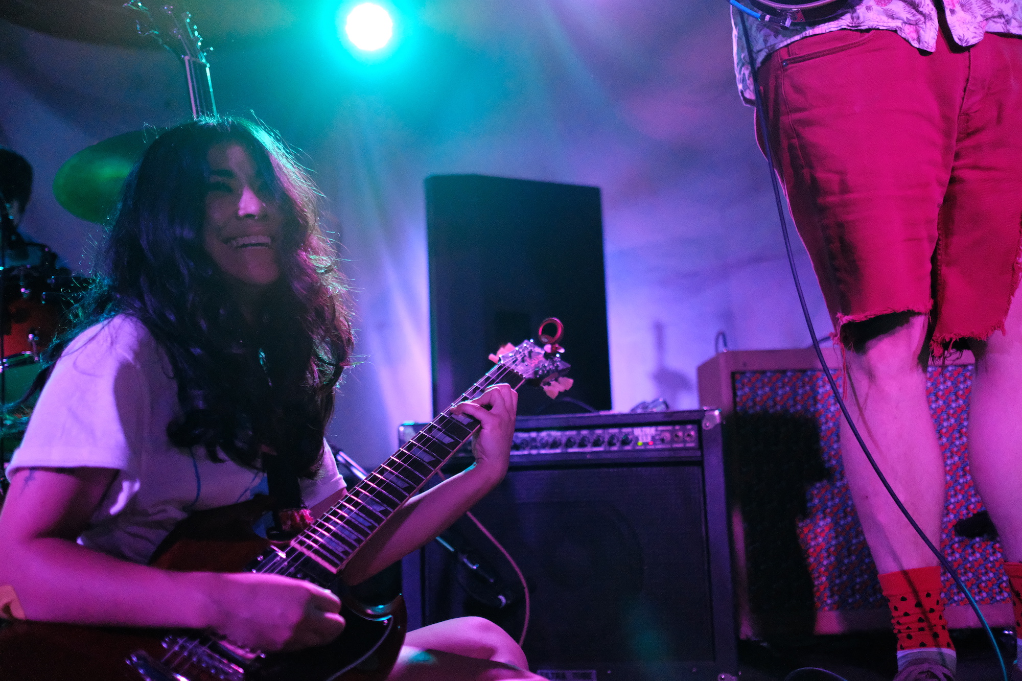 He shred the guitar with loose–yet deadly–flair. As he played, he moved. It was sharp, jerky, bouncy, erratic. I could’ve watched it all day. Robby Kuntz’s drumming was slick and kept it all on track. When Sophia switched to her guitar for “Parliaments,” we saw that while she can get it done on the bass, she’s truly one with her guitar. She moved in practiced ways to hit the notes, completely captivating me.