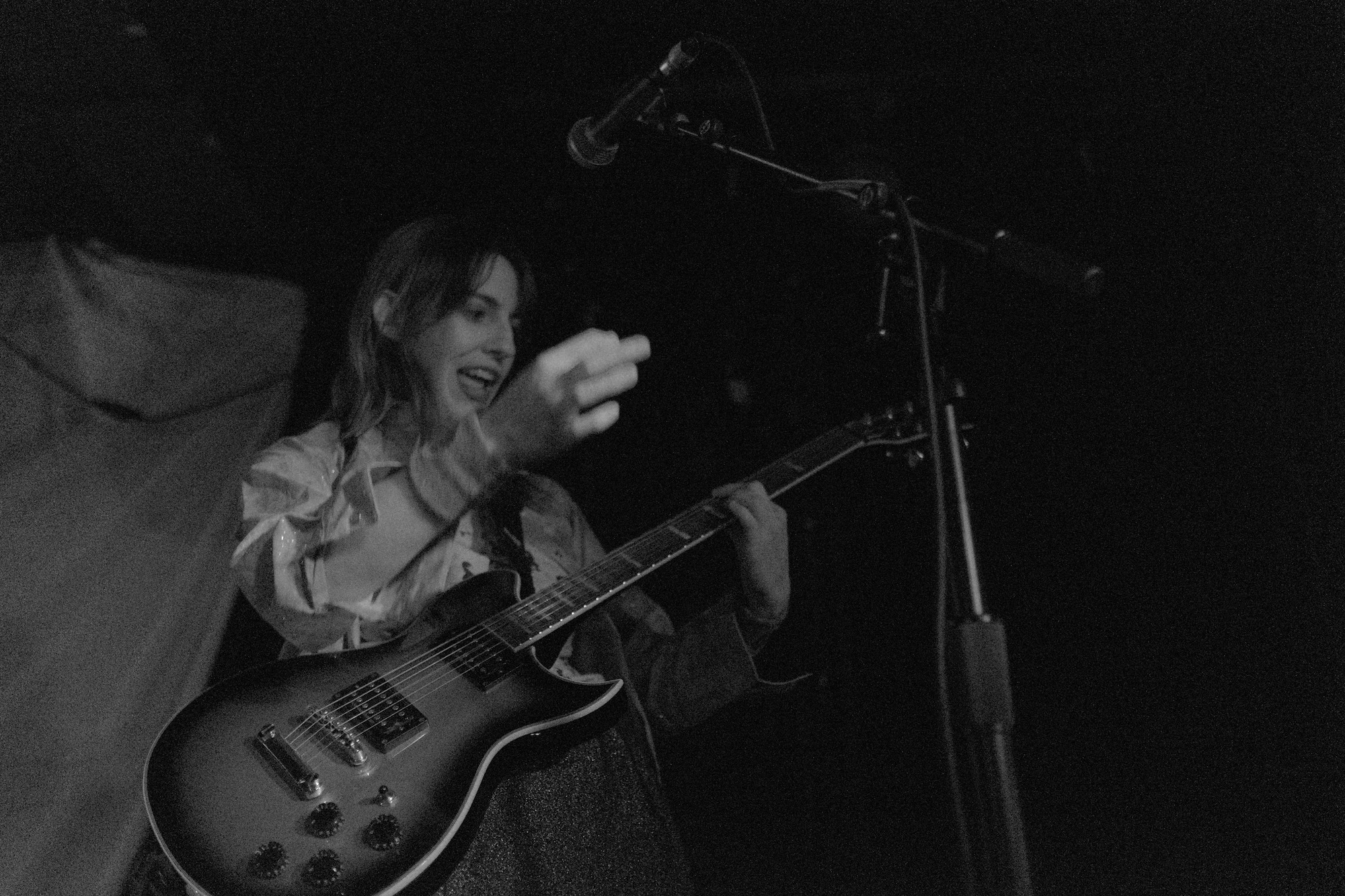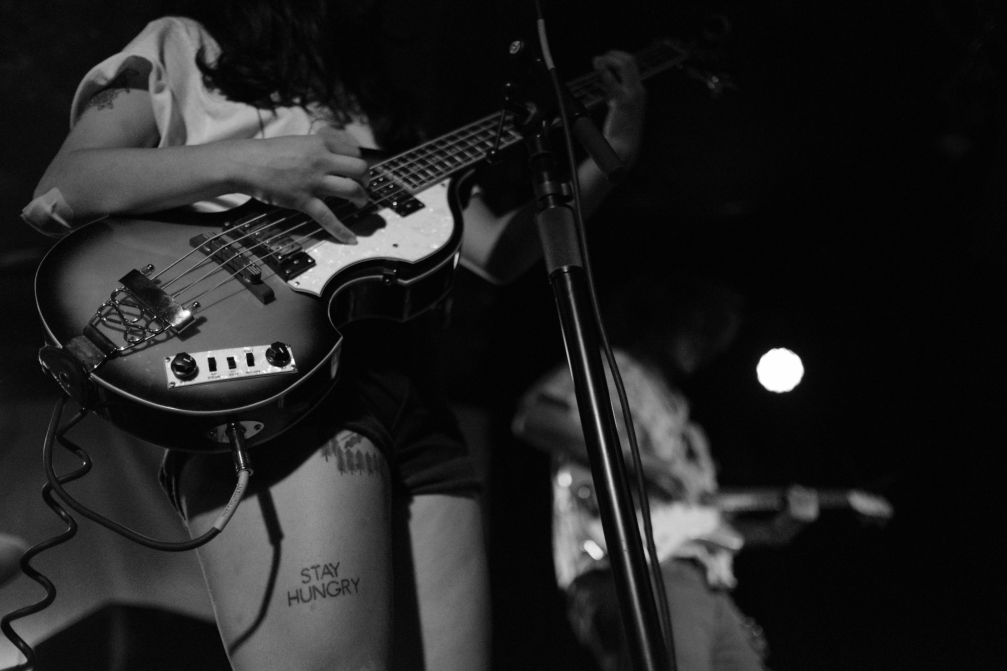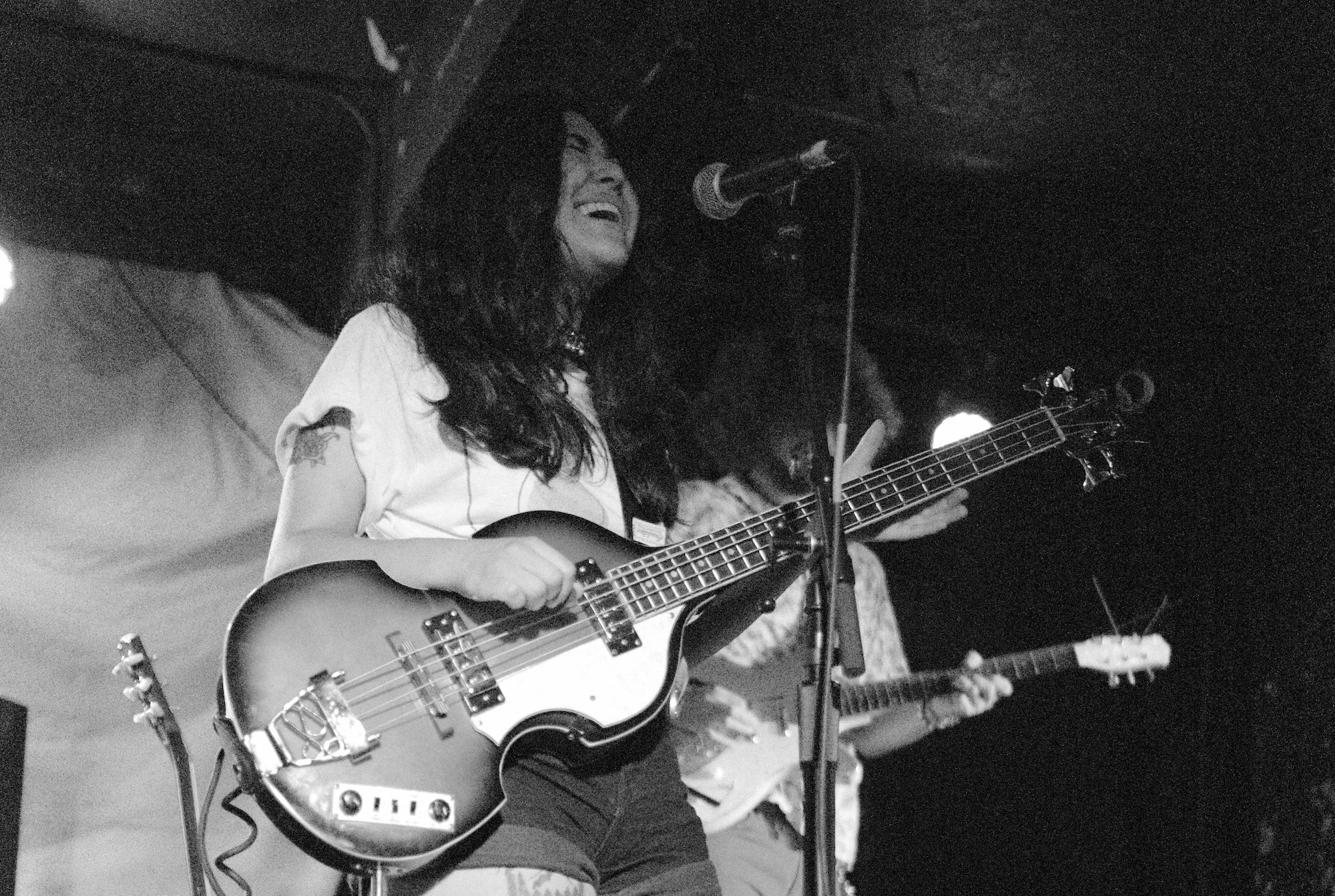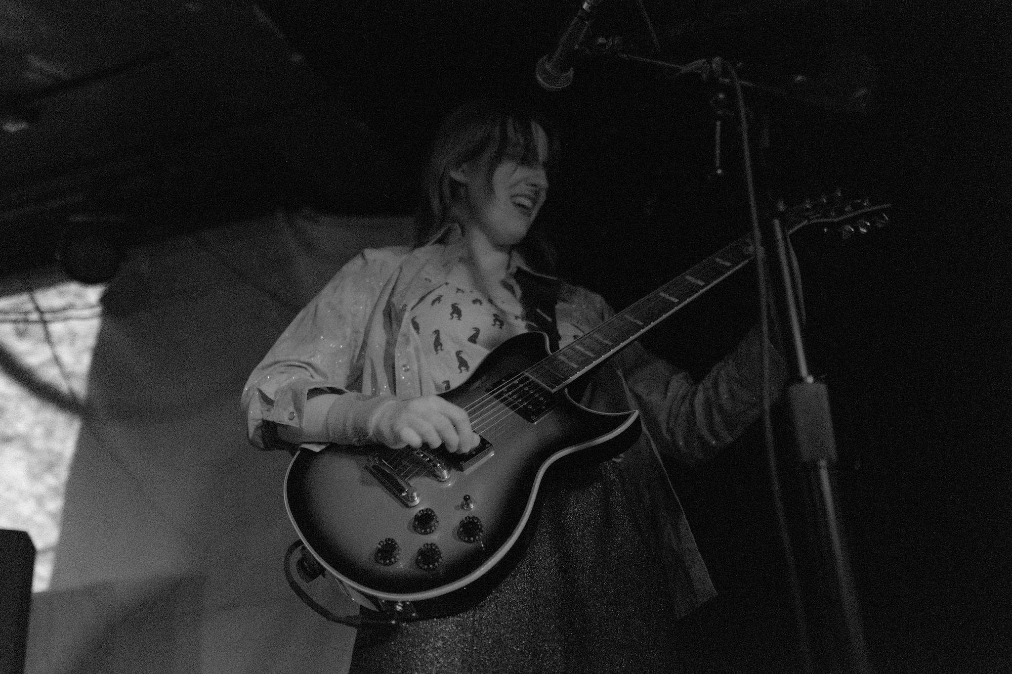 He shred the guitar with loose–yet deadly–flair. As he played, he moved. It was sharp, jerky, bouncy, erratic. I could’ve watched it all day. Robby Kuntz’s drumming was slick and kept it all on track. When Sophia switched to her guitar for “Parliaments,” we saw that while she can get it done on the bass, she’s truly one with her guitar. She moved in practiced ways to hit the notes, completely captivating me.