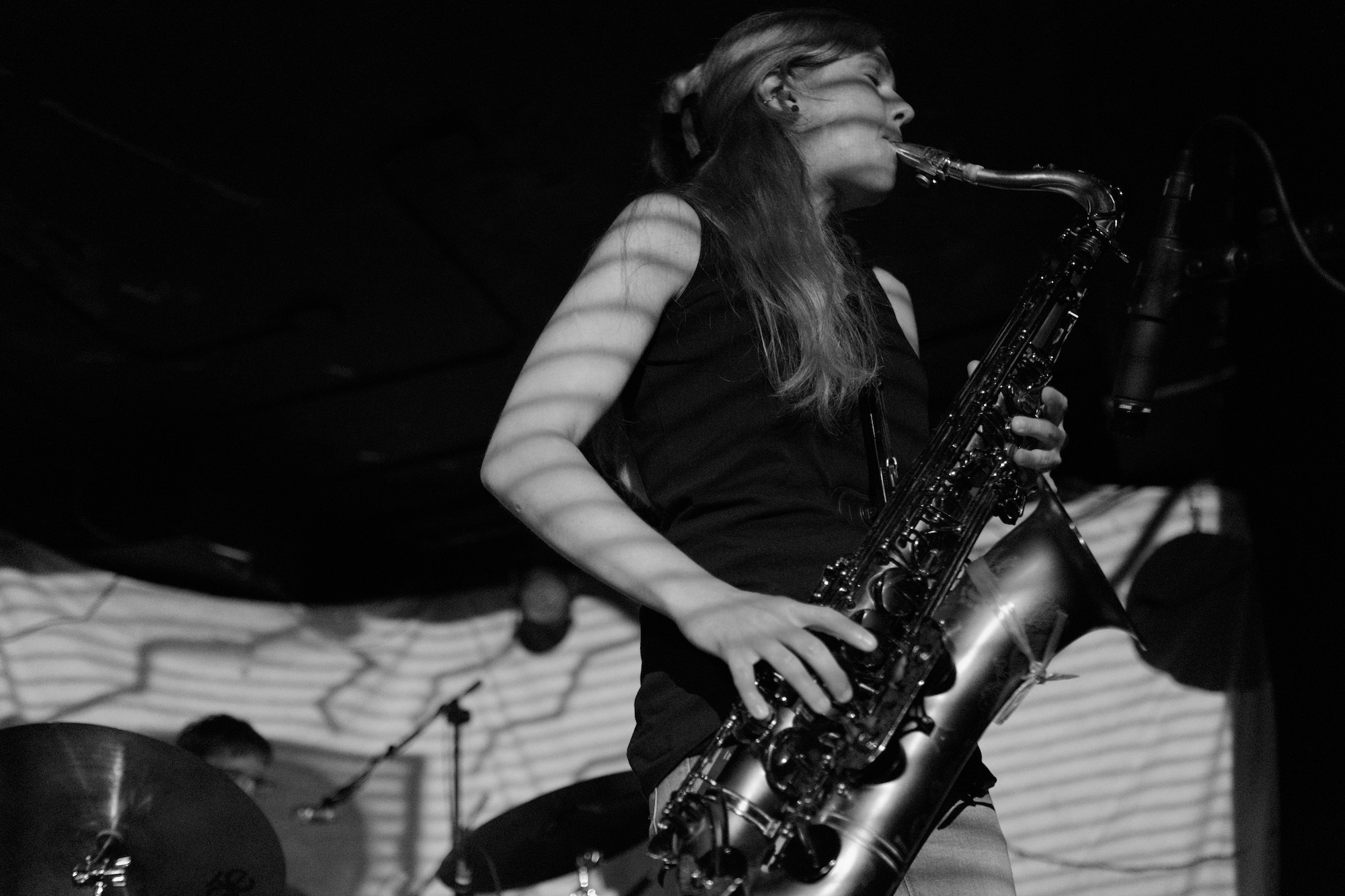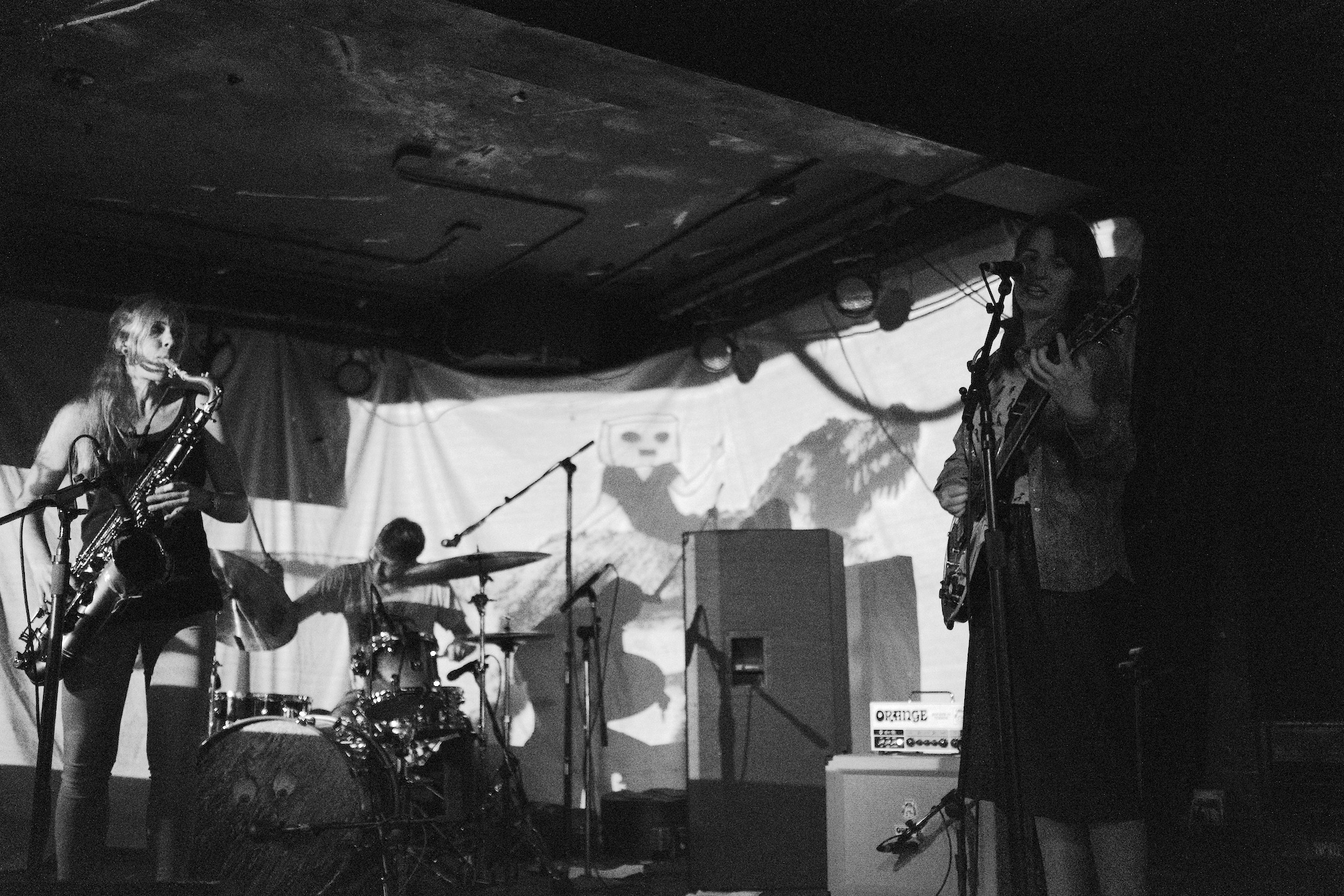 Most of the songs featured the duo in full assault mode, but for a few, we also got some harshly angled sax. During “Vanity Block,” it somehow made me feel like I was riding my bike over cobblestones. So much texture! My favorite moment of the set was the refrain, “Hey motherfucker, what do you know, I’m a dinosaur.” It was both whimsical and charming alongside some really perfect squawking roars from the sax that made me laugh.