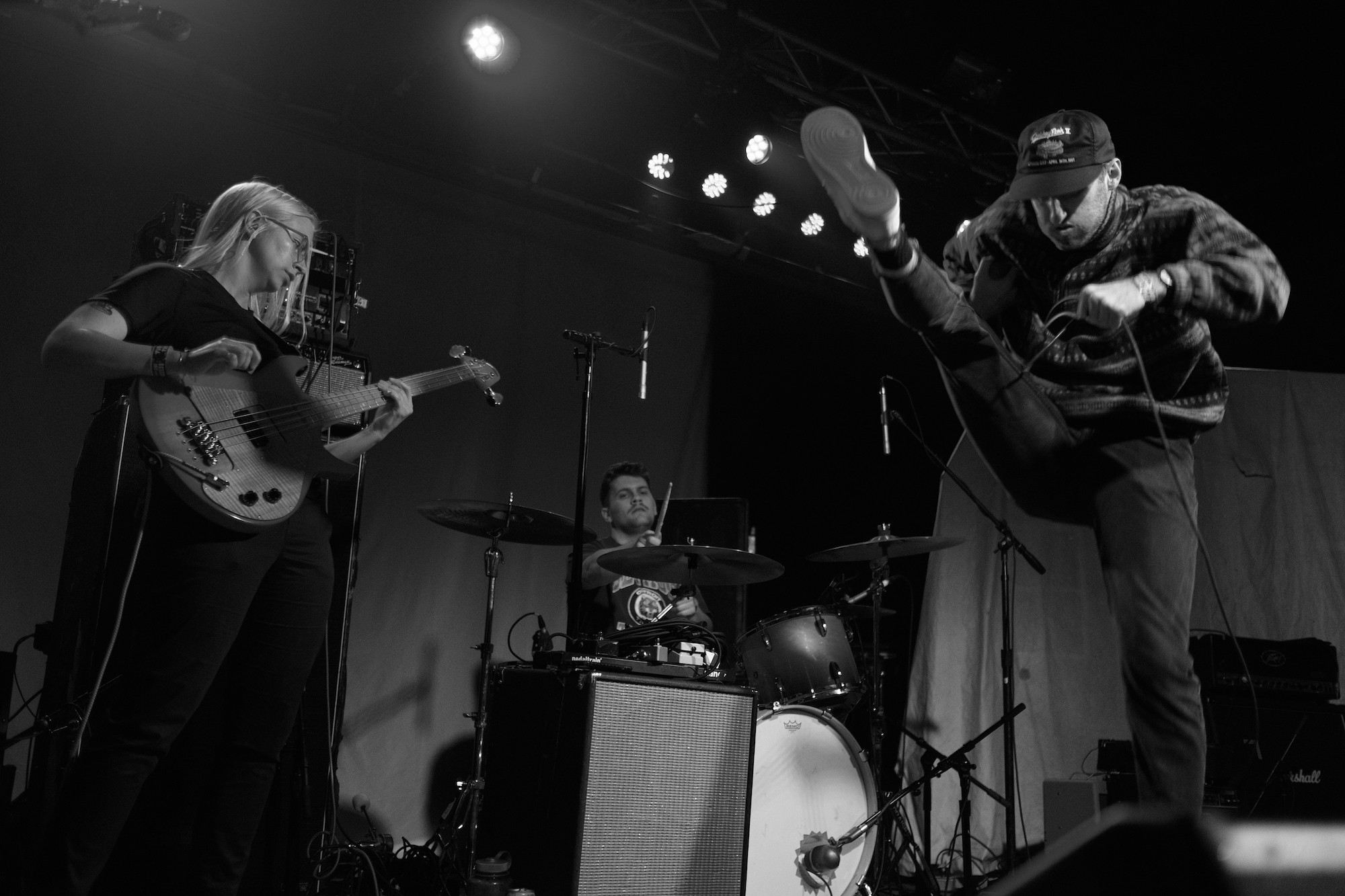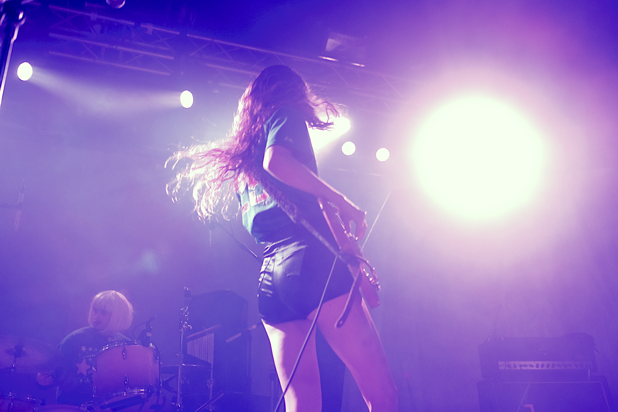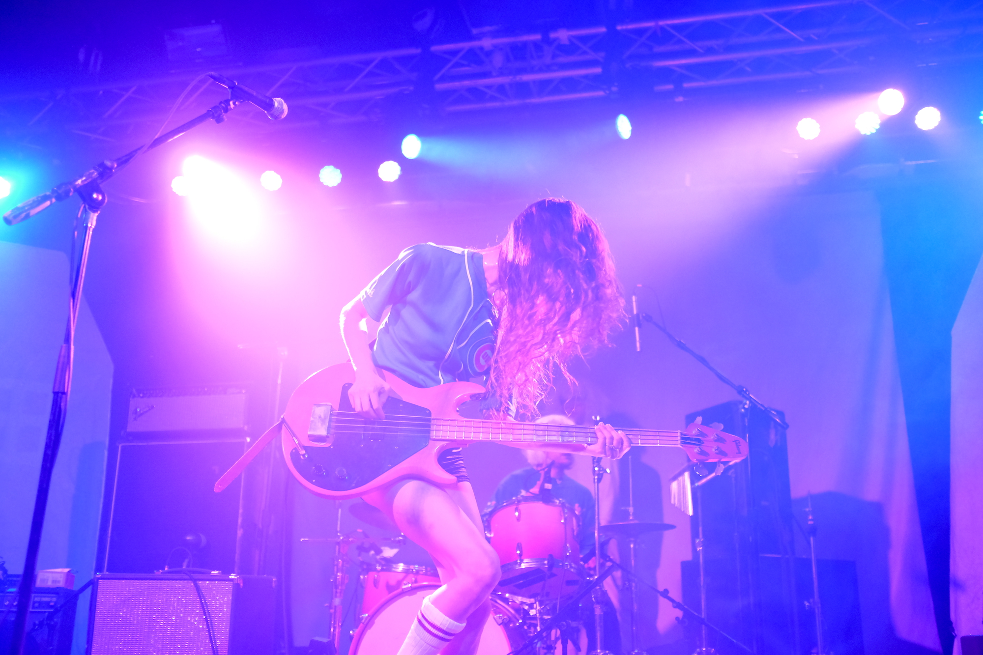 When a caped alien walked on stage, Reptaliens had everyone’s attention. There were cheers over an extraterrestrial greeting. The alien, aka Austin Smith, grabbed a tambourine and shaker and undulated. During the set, he changed outfits, played guitar, and seemed to be an embodiment of what this band is: a bit silly, surreal, and definitely fun. He moved around the stage and danced. Lead singer, Bambi Browning, really loved it. In fact, she had a sense of play with both the music and her bandmates that made me smile. She moved into their space charging and kicking. She rocked back and forth, losing herself in the bass line and then flipping her mane back out of her face, always smiling. When they started playing “29 Palms,” they get a nice little cheer from the audience. I loved the sweet shoulder shrug the key player, Cole Browning, gave us.