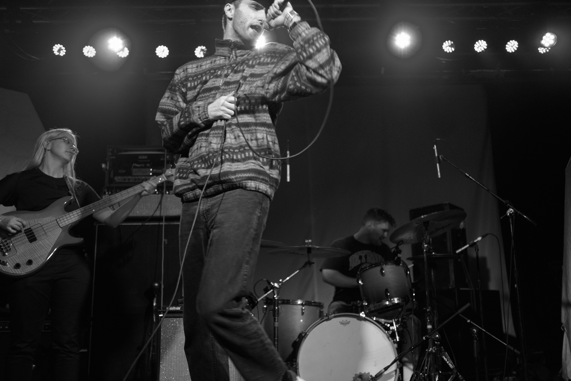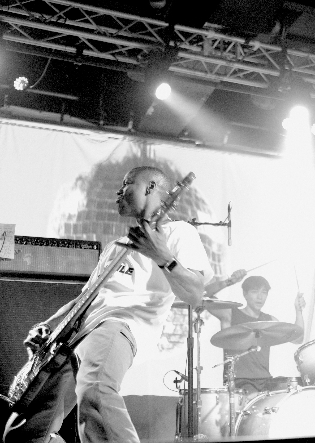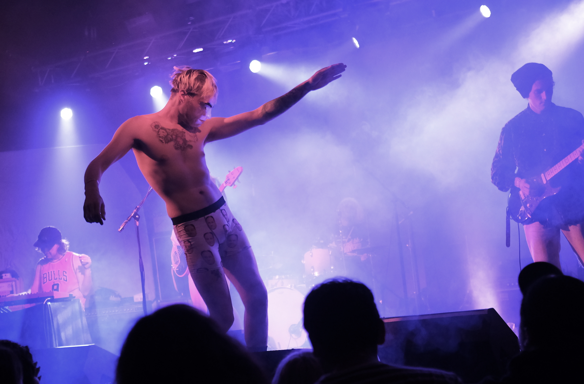 When they started, it was an onslaught. The main two sources of energy were lead singer, Brendan Yates, and bassist/vocalist Franz Lyons. They were jumping and constantly moving around the stage, it was impossible to keep track of them. Lyons did truly impressive backbends. Yates went between violent aggression to swaying hips and flowing arms. The two guitarists were holding down the music, but still thrashing. Drummer, Daniel Fang, was muscular to the extreme. When he slowed down, you could see him catching his breath.