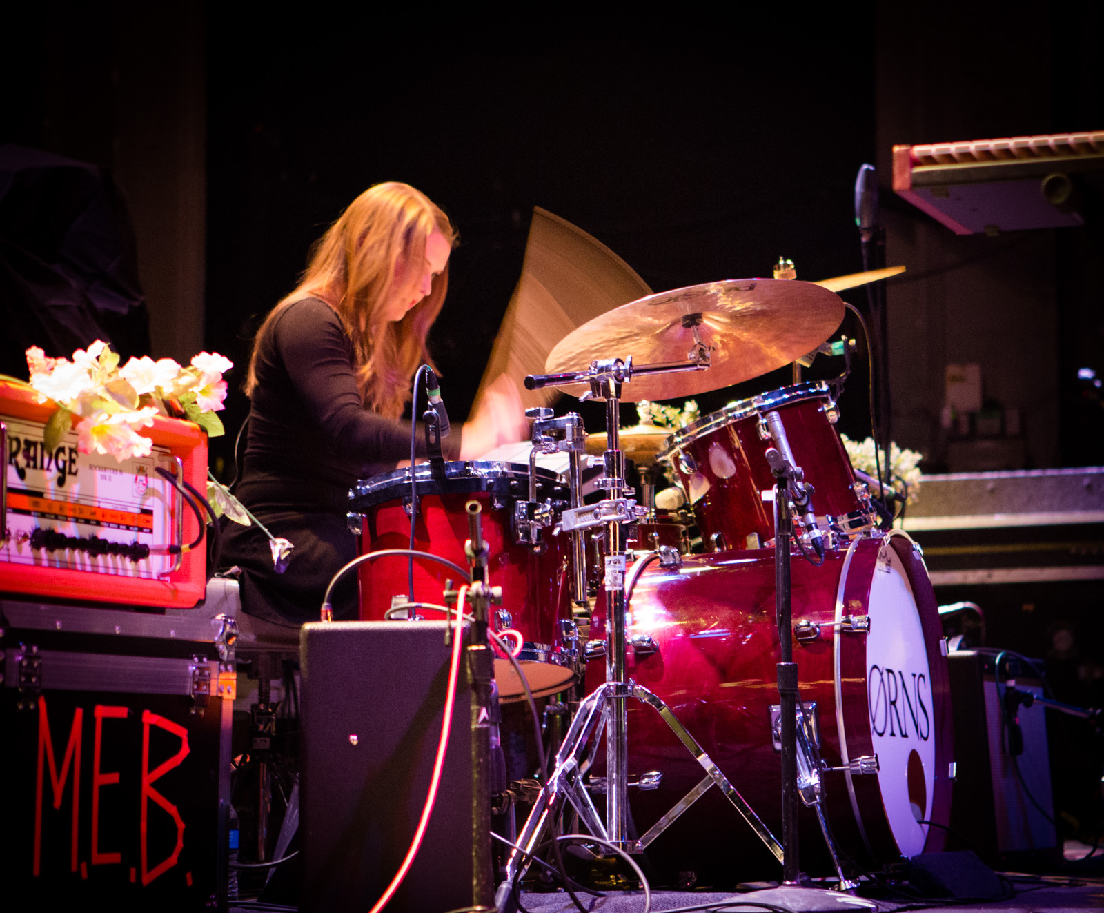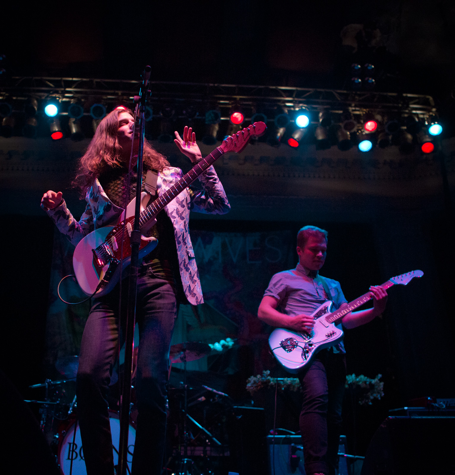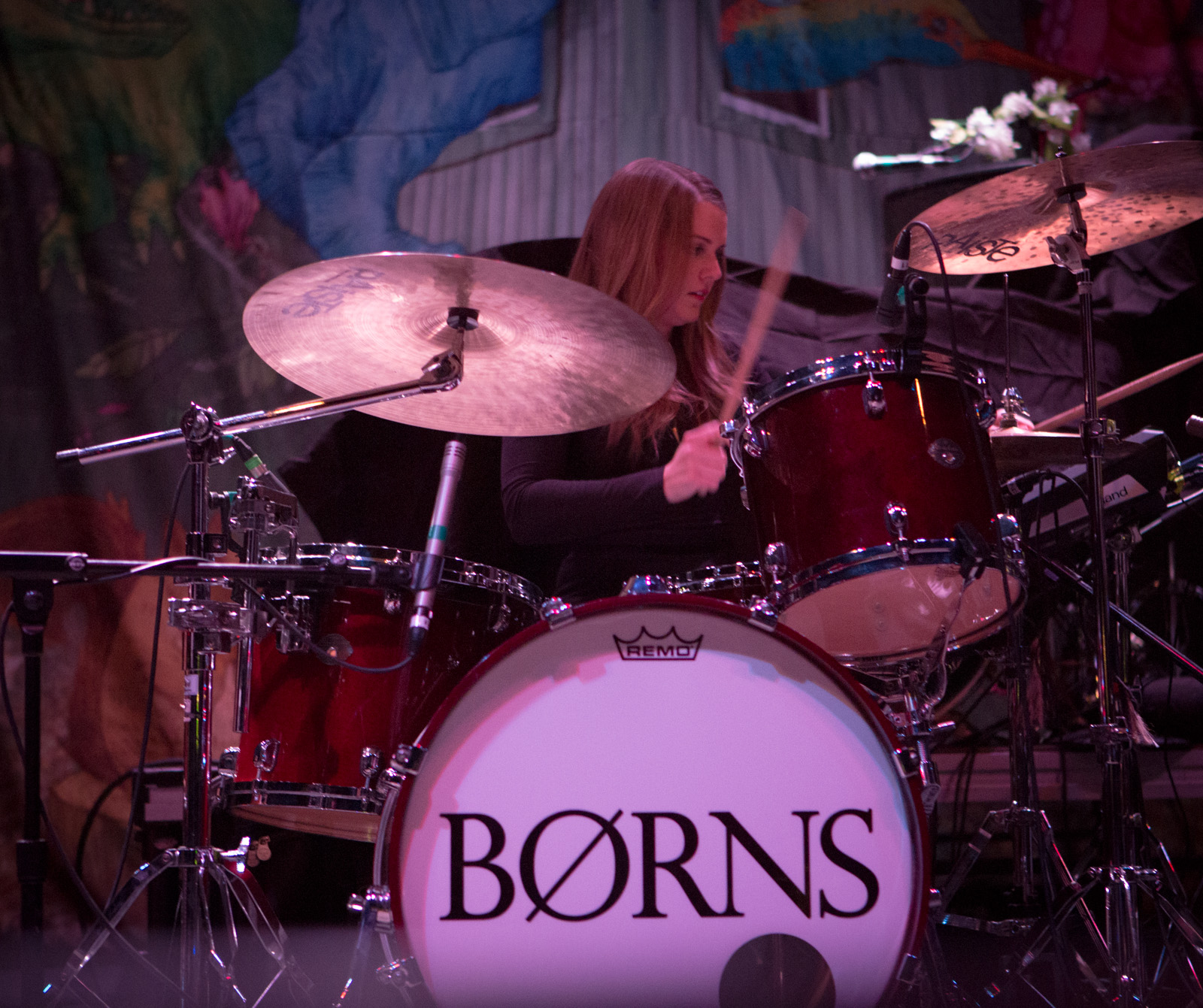 With songs like “Past Lives” and “Seeing Stars”, Børns took breaks between guitar riffs to sway his hips and feel the beat as Lauren Salamone Perez switched between keyboards and tambourine. Connor and Jon kept the energy going by ricocheting themselves across the stage while thrashing away on their guitar and bass.Cleveland born-and-raised drummer maven Kristen delivered hard-thumping beats temporarily pausing the show to give a shout out to her family up in the balcony who drove down to Columbus for the show.