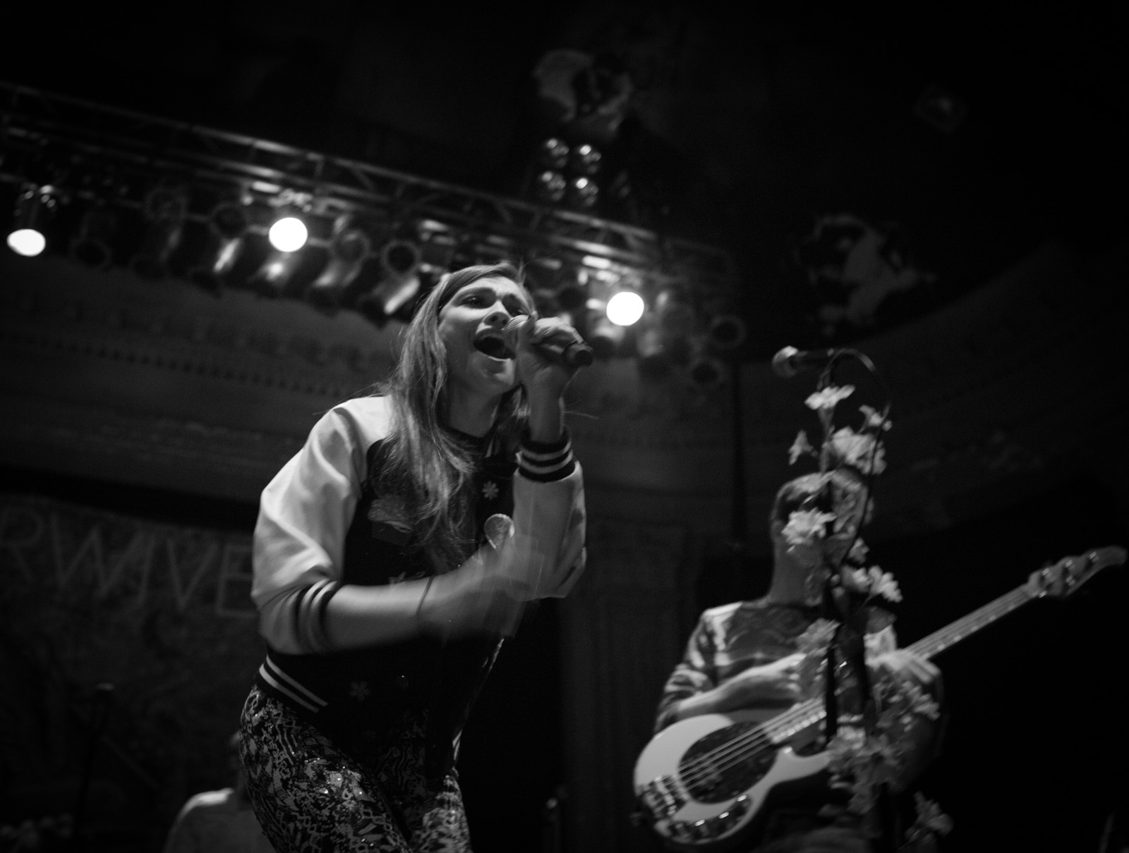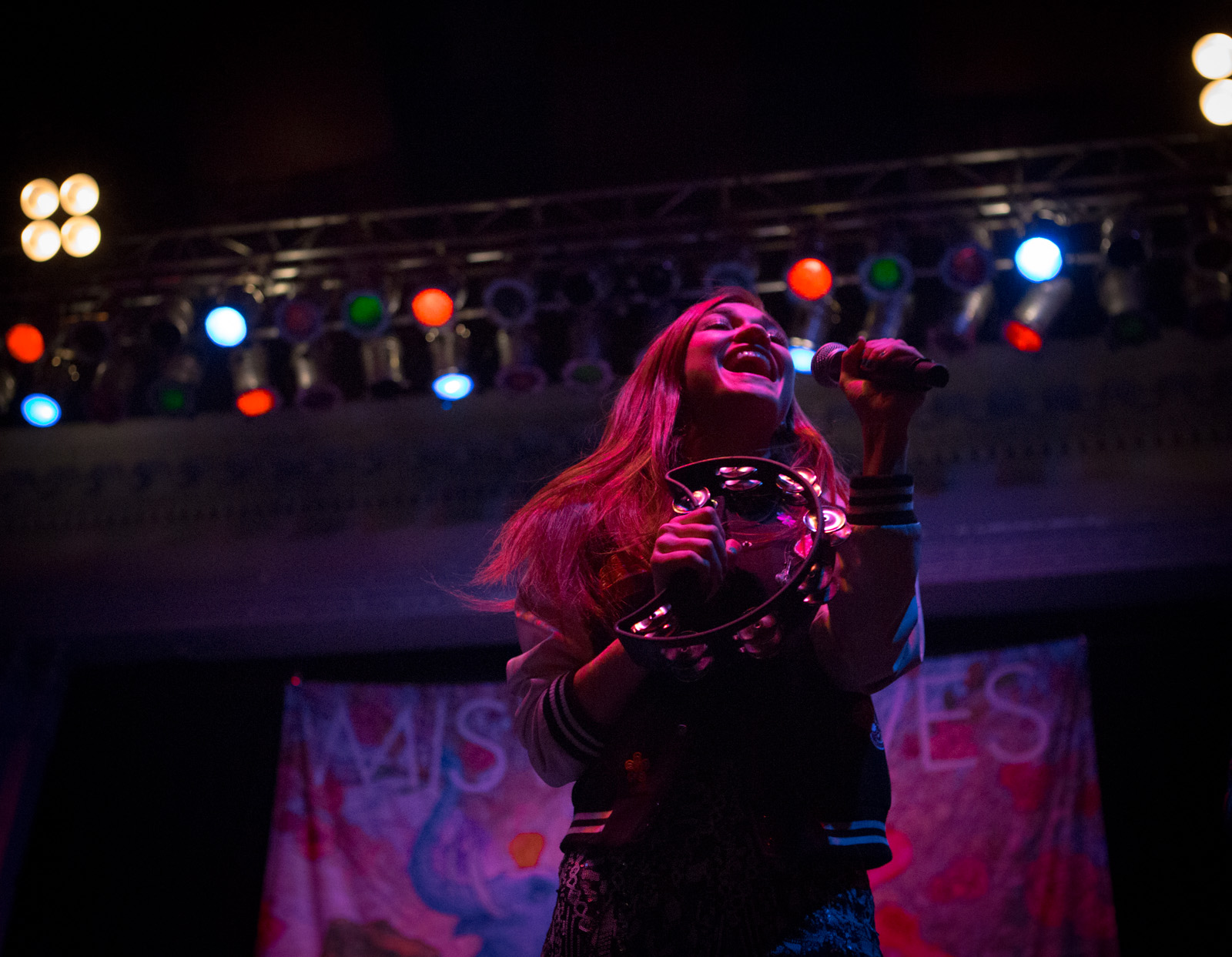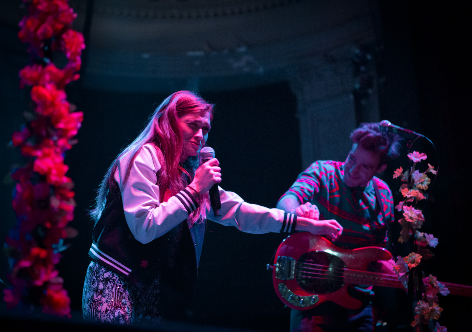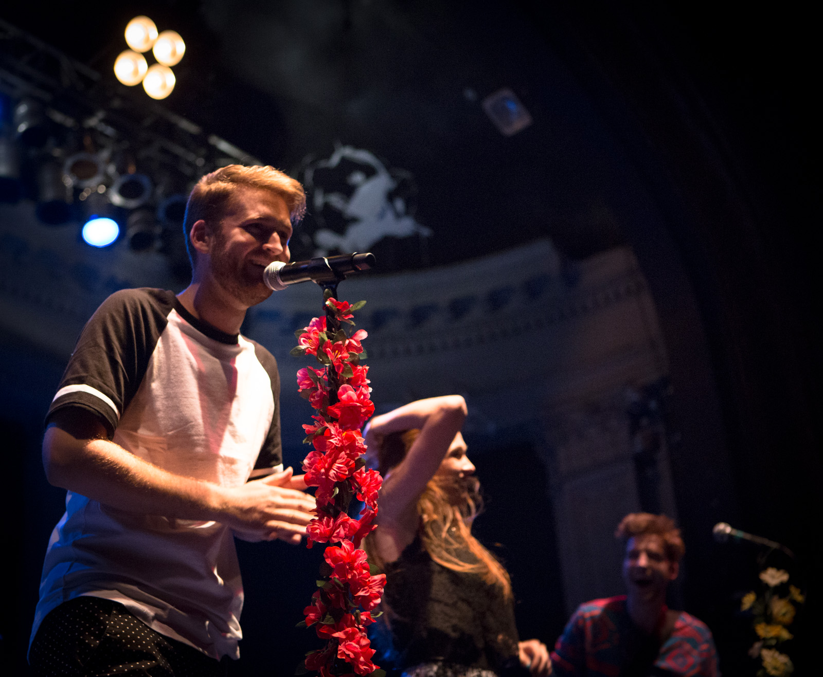With faux flower-bedecked mic stands and amps, NYC’s MisterWives took the stage with such gusto, that the walls of Newport Music Hall felt as though they might crumble. While Jesse Blum blared away on his trumpet, Mandy Lee jumped, cha-cha’d, and twirled her way around stage, the crowd ate it up and began their own dance party on the floor to the first song of the evening, Our Own House from their recently released debut album of the same name.