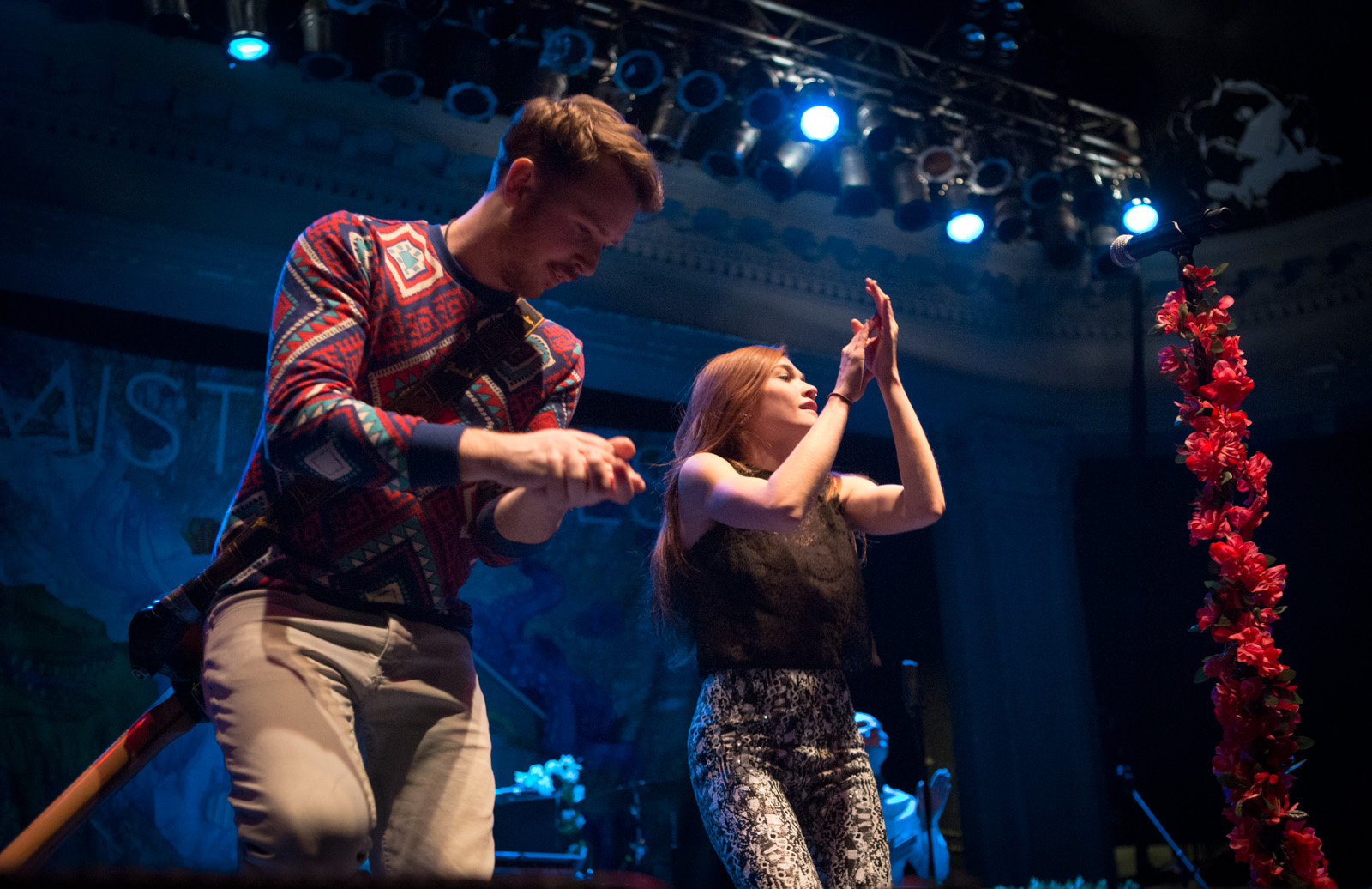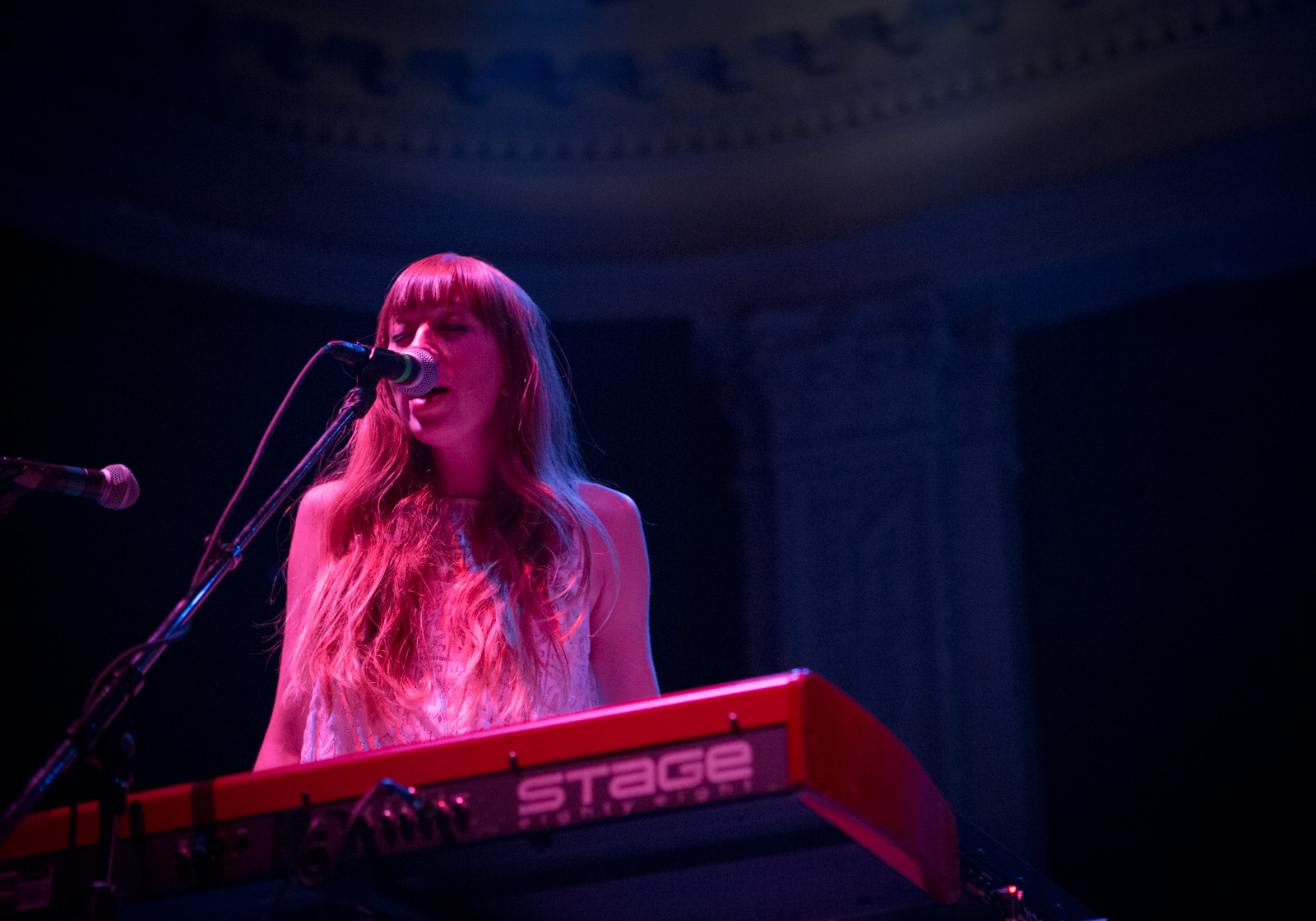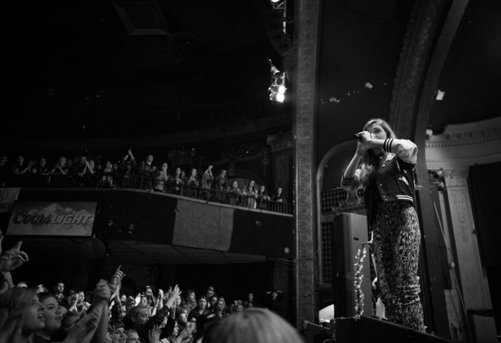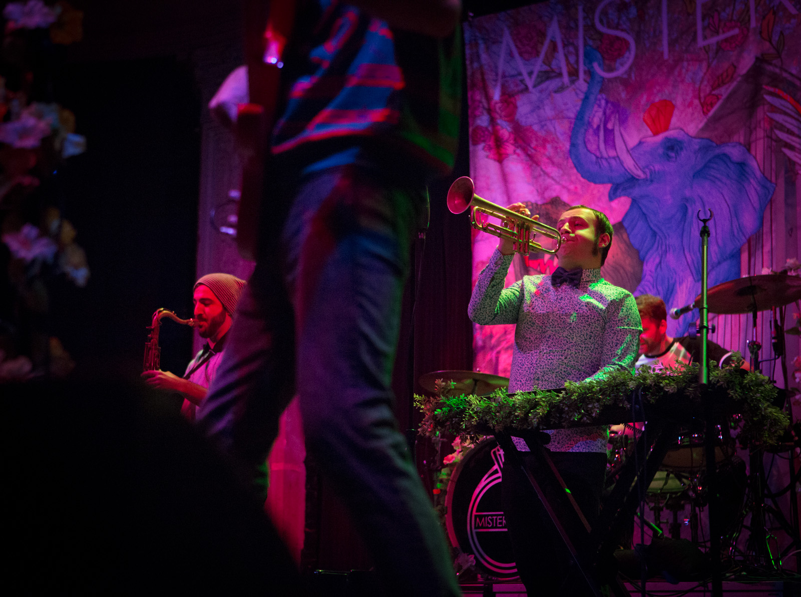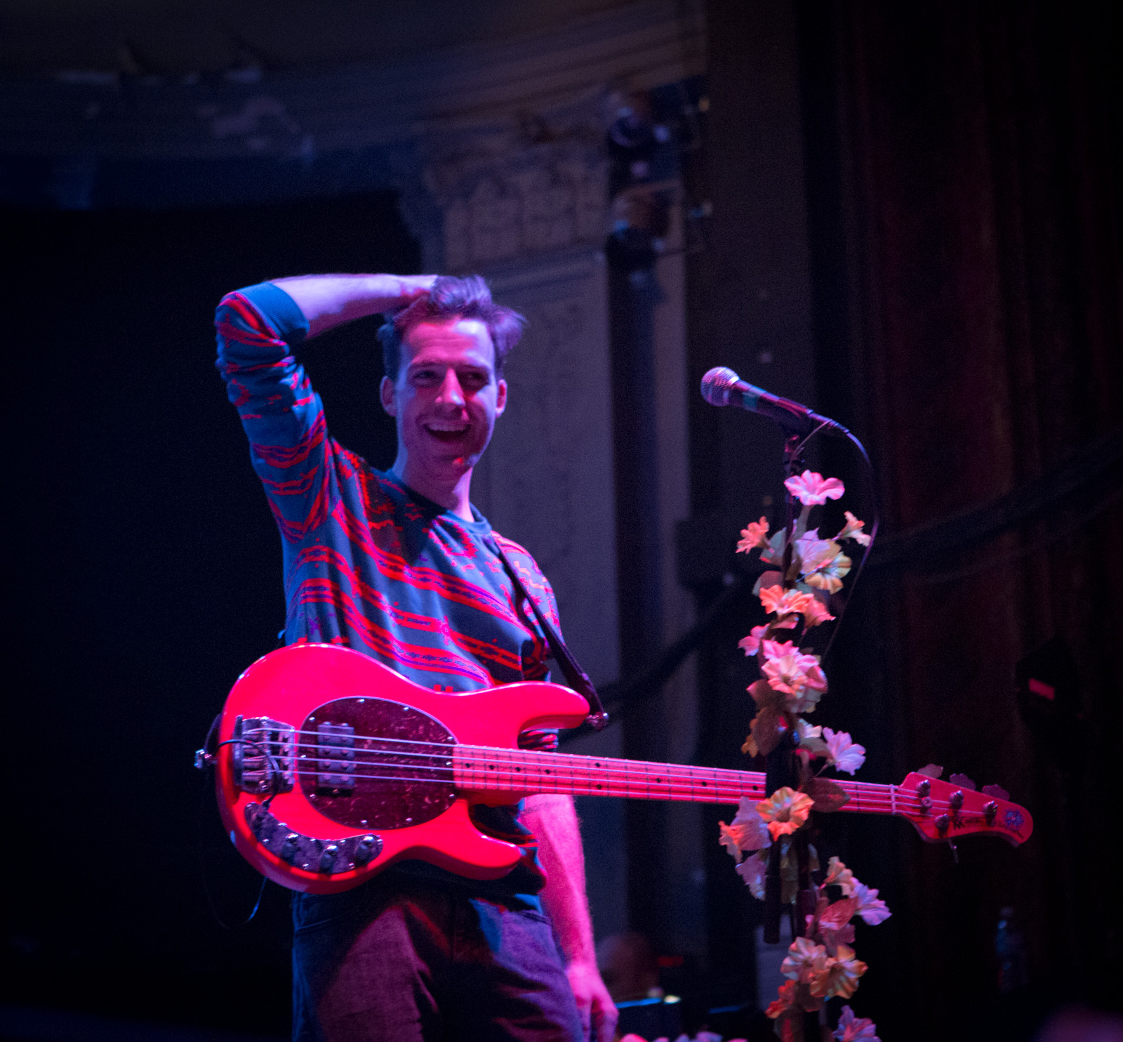With faux flower-bedecked mic stands and amps, NYC’s MisterWives took the stage with such gusto, that the walls of Newport Music Hall felt as though they might crumble. While Jesse Blum blared away on his trumpet, Mandy Lee jumped, cha-cha’d, and twirled her way around stage, the crowd ate it up and began their own dance party on the floor to the first song of the evening, Our Own House from their recently released debut album of the same name.