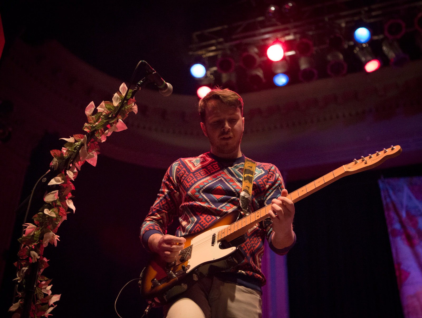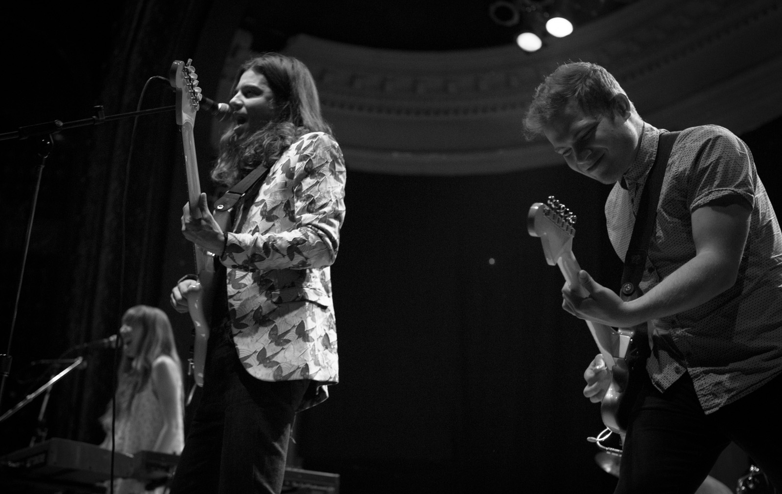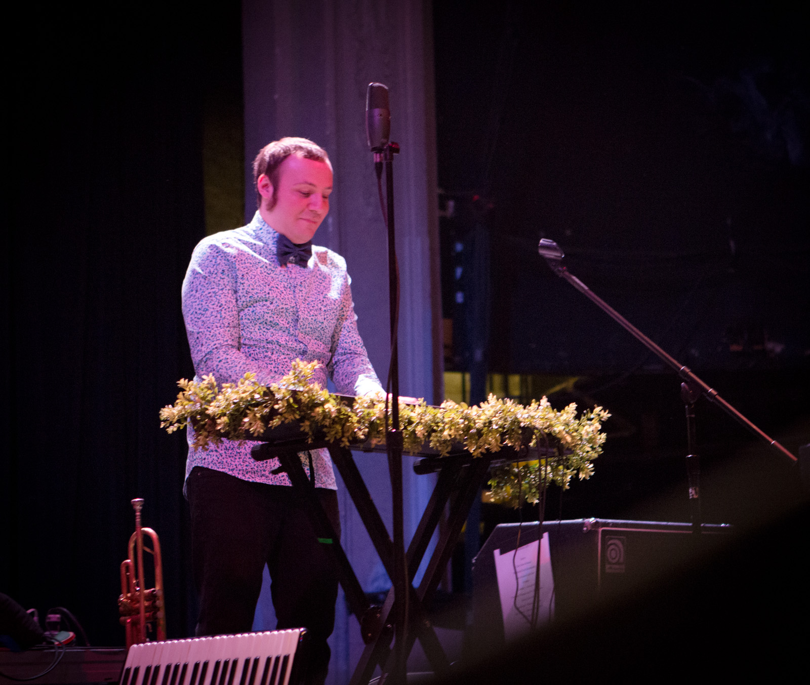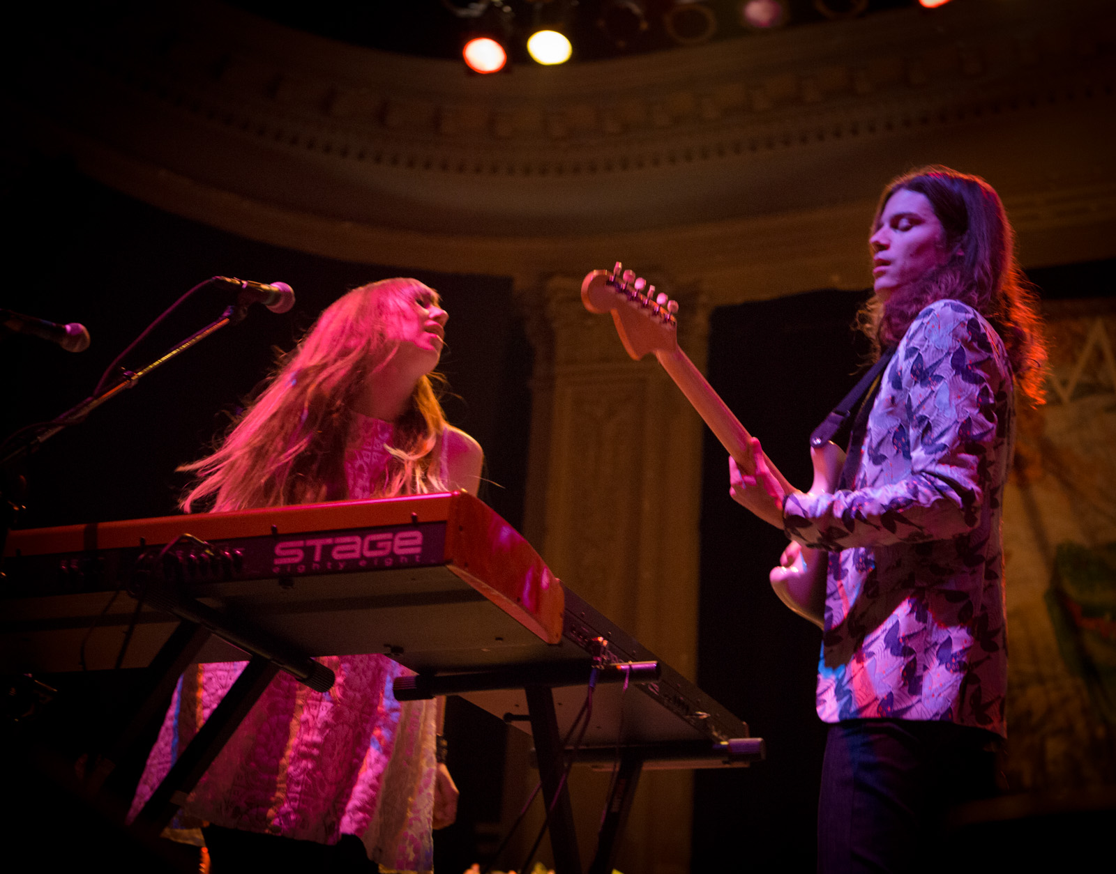 With faux flower-bedecked mic stands and amps, NYC’s MisterWives took the stage with such gusto, that the walls of Newport Music Hall felt as though they might crumble. While Jesse Blum blared away on his trumpet, Mandy Lee jumped, cha-cha’d, and twirled her way around stage, the crowd ate it up and began their own dance party on the floor to the first song of the evening, Our Own House from their recently released debut album of the same name.