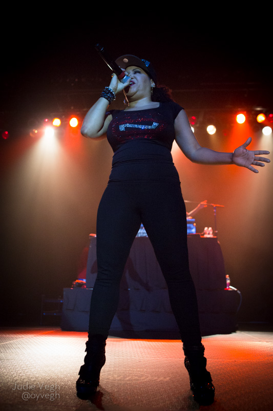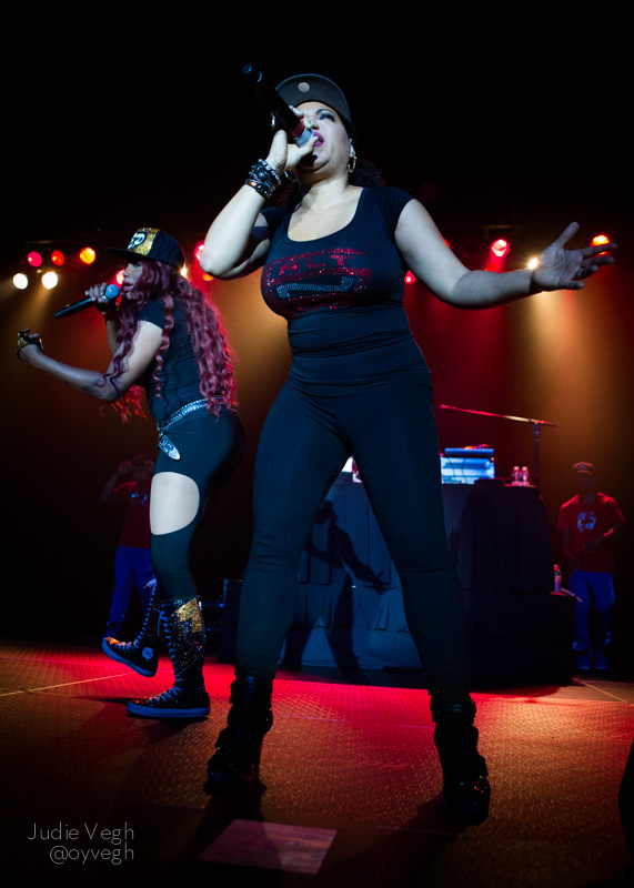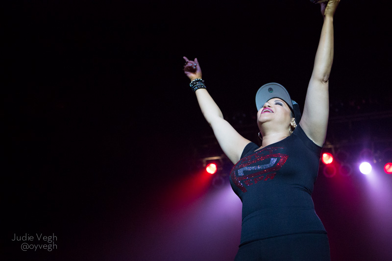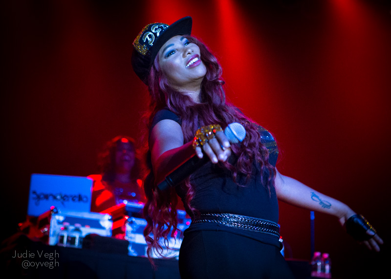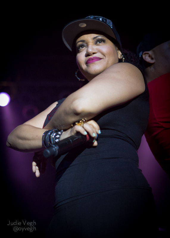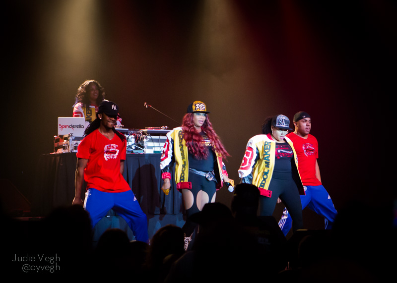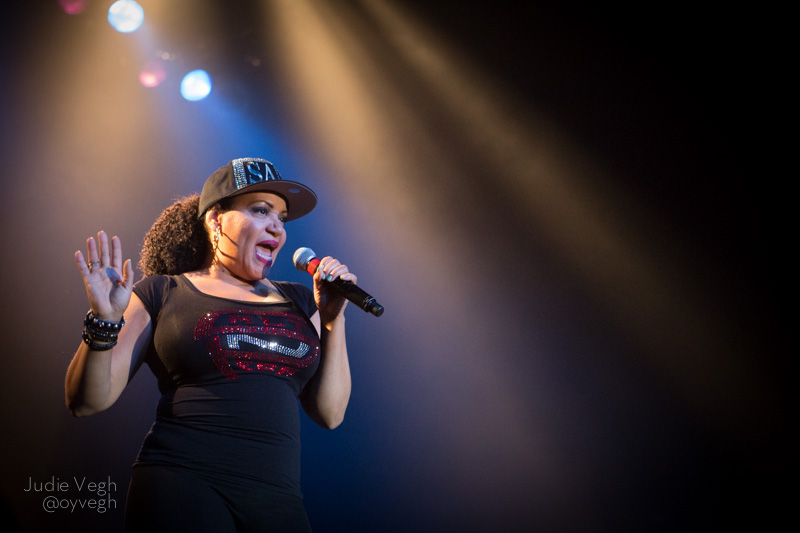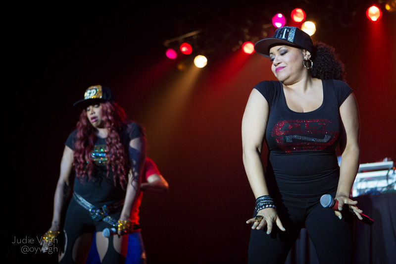 It’s hard to believe that its been thirty years of trailblazing and lending a voice for women in hip-hop for the queens from Queens, Salt-N-Pepa. Friday night at the Hard Rock Rocksino in Cleveland was no different. With no opener, plus DJ Spinderella took the stage and put on more of an experience than a performance. Armed with two young, and muscular back-up dancers, Pepa, in knee-length sequin-bedecked converse sneakers sauntered across the stage flashing a a big smile at the crowd while Spinderella took care of the beat on a her DJ throne high up on a platform.