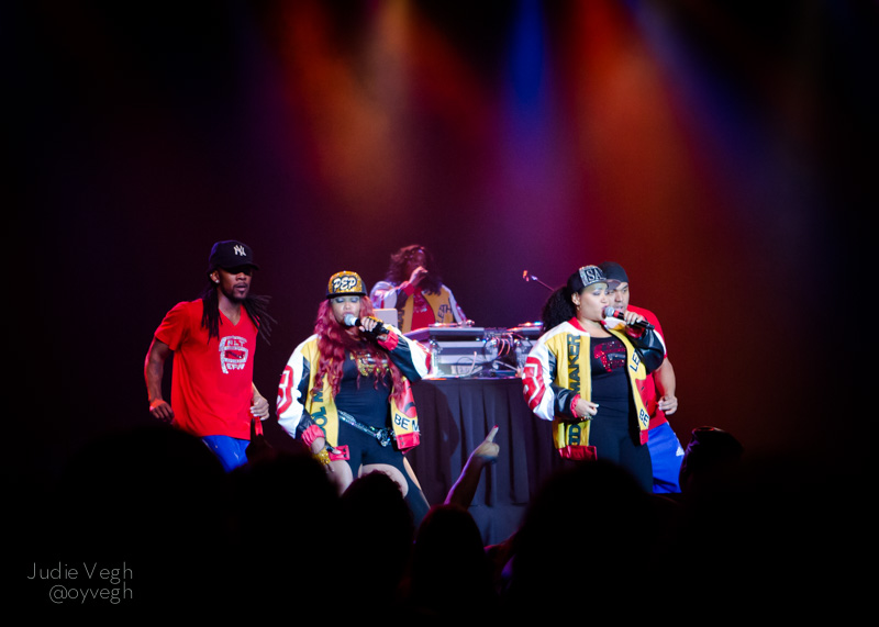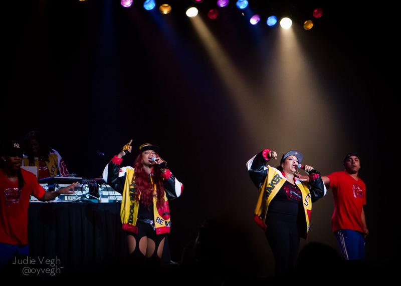 Salt-N-Pepa showed love and gratitude for the audience, and the crowd gave it right back. To round out their hour long set, Salt-N-Pepa finished up with the long-anticipated songs that sent them into the spotlight. “Let’s Talk About Sex”, “Whatta Man”, “Shoop” and “Push It” were played sequentially as the crowd jumped from their assigned seats and crowding the stage, and filling the aisles. During “Whatta Man”, men were invited to come up on stage to fight for the affections of Salt and Pepa. The winner ended up being a short older gentleman with white hair, to which Pepa mock spanked him and took time for selfies.