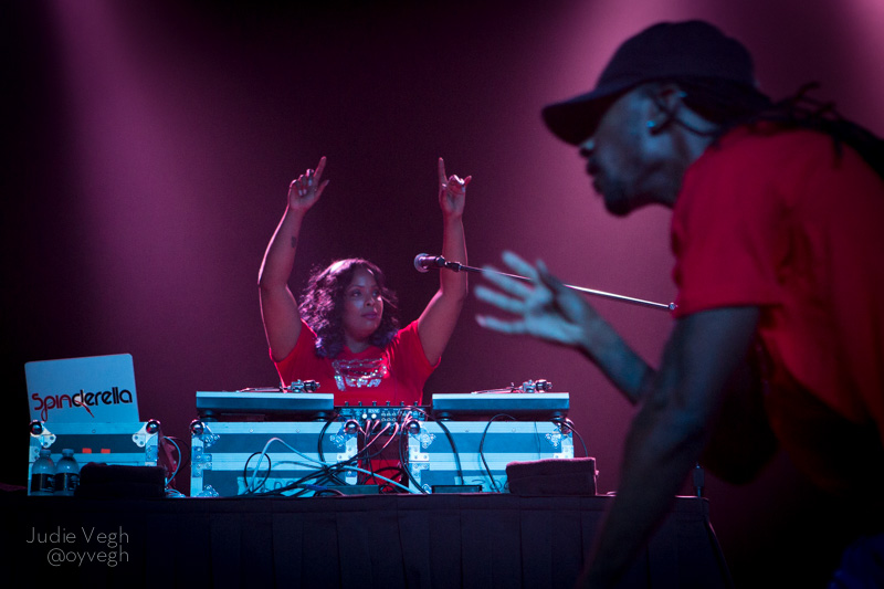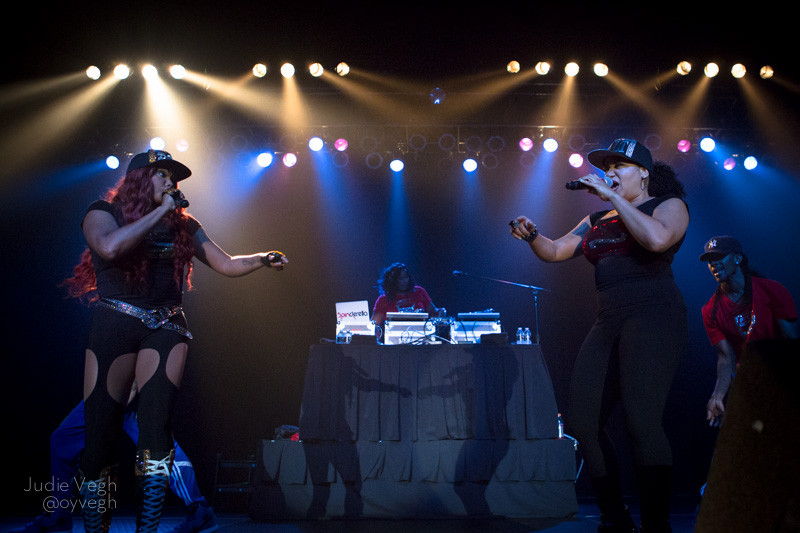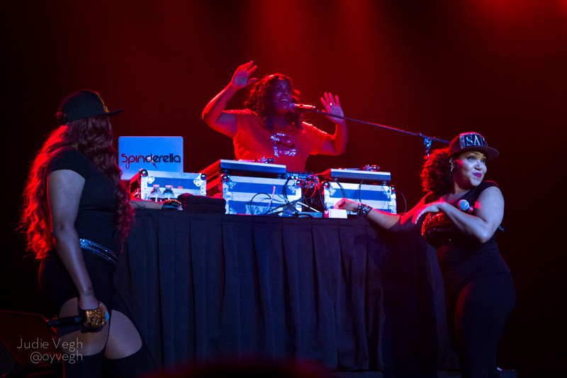 Salt, in heeled booties and a bedazzled hat with her namesake, called out for all the “’70s babies” to give a shout and went up a decade asking for the same response. A woman in the front row called out “What about ’60s babies?!”. The crowd, though ranged in various ages, was predominantly men and women in their 30s and 40s. SNP offered up a fun mash-up of hits throughout the decades encouraging the crowd to sing and dance along. Songs like”Engine Engine Number 9″, “Rapper’s Delight”, and “Just a Friend” were sung. As Spinderella played “Girls Just Wanna Have Fun”, SNP invited all the women in the audience to come up on stage. “We’re not supposed to do that. But we don’t care.”, quipped Salt. SNP mixed in their own songs, of course, including “Tramp” and “None of Your Business”. But even through the songs, there was an ever-lingering need to hear some of their greatest hits, as concertgoers yelled out “Push It!” or “Shoop!” when the music had quieted down for a brief moment.