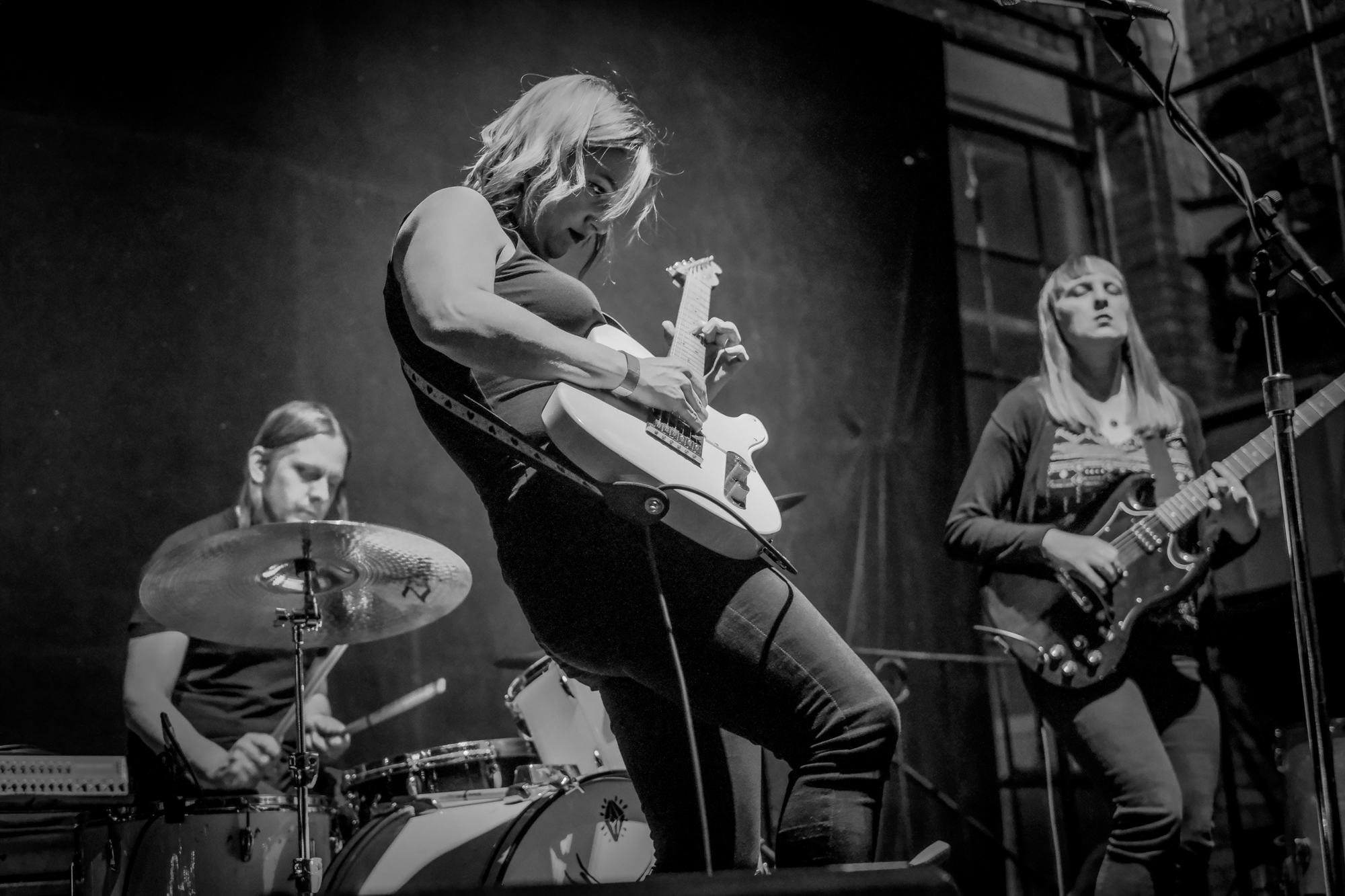 Fox Face took the stage next. I had heard of Fox Face prior to the show, likening them to Chicago’s Bleach Party or Strawberry Jacuzzi, but holy shit did their live show blow me away. I watched wide-eyed as frontwoman Lindsay DeGroot roared into the mic front-and-center. The rest of the outfit’s high energy instrumentation backed her confidently, bringing the best parts of riot grrl movement to the stage: harmonized shouting, guitar melodies, and a driving beat.