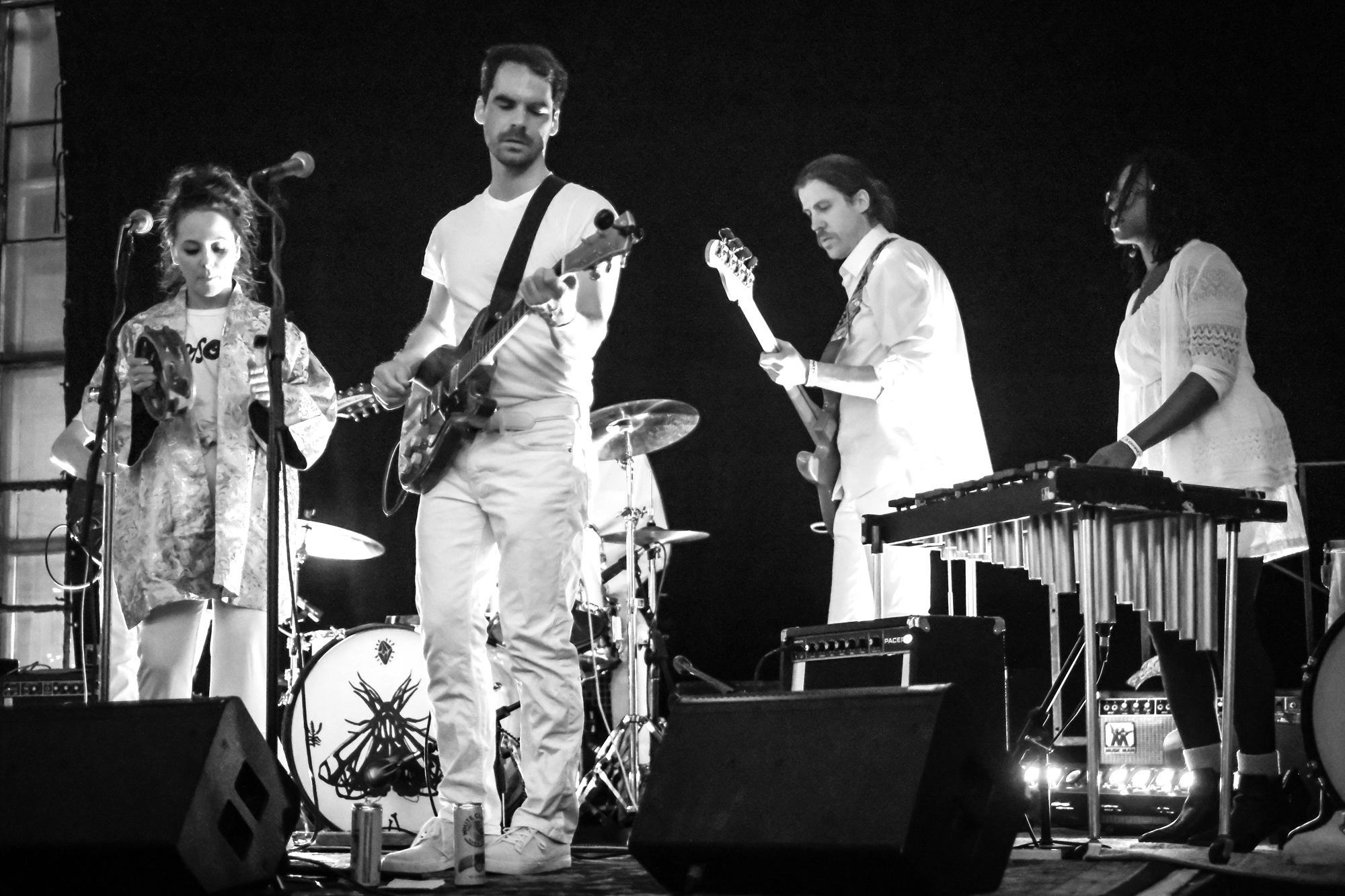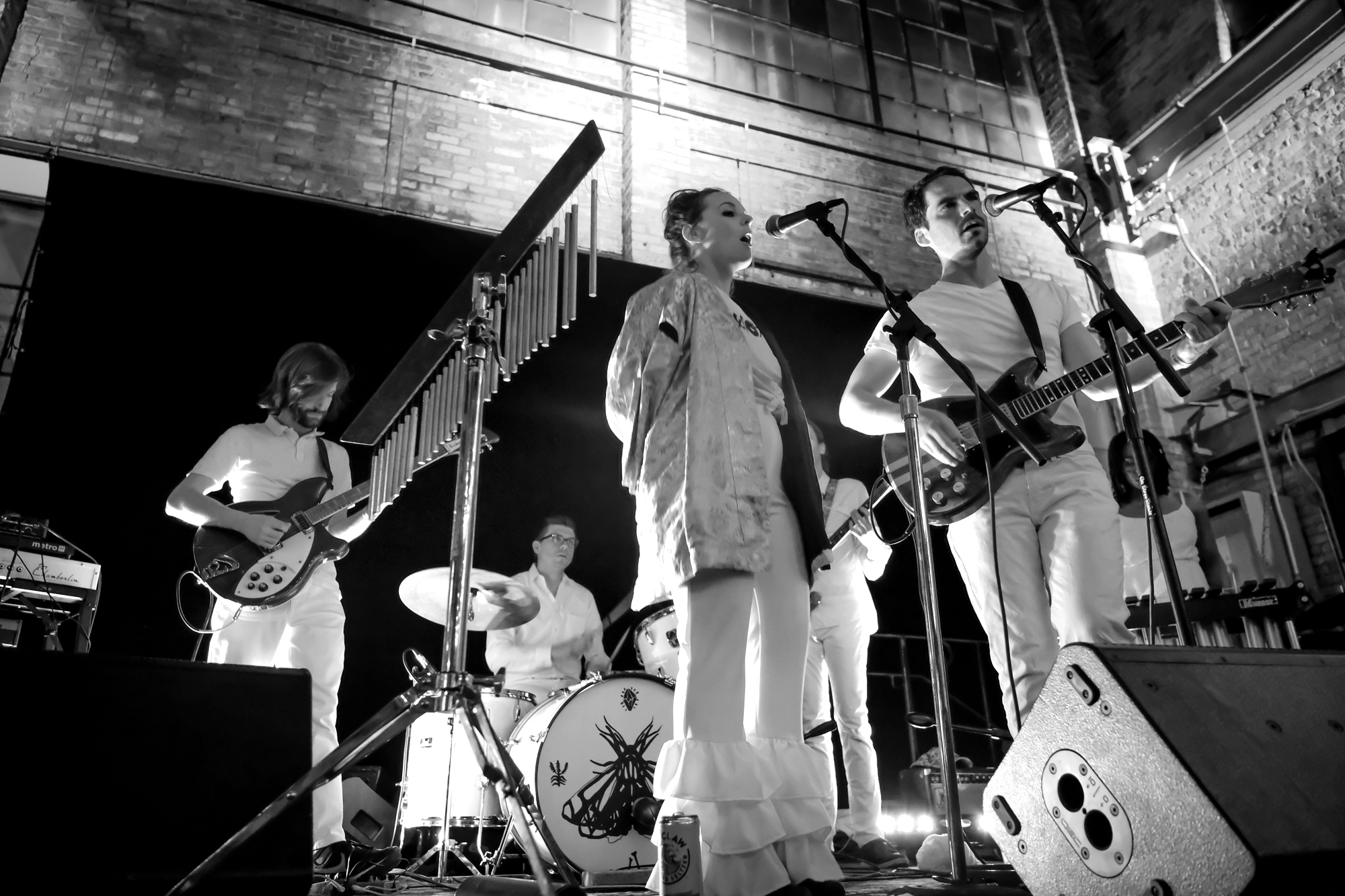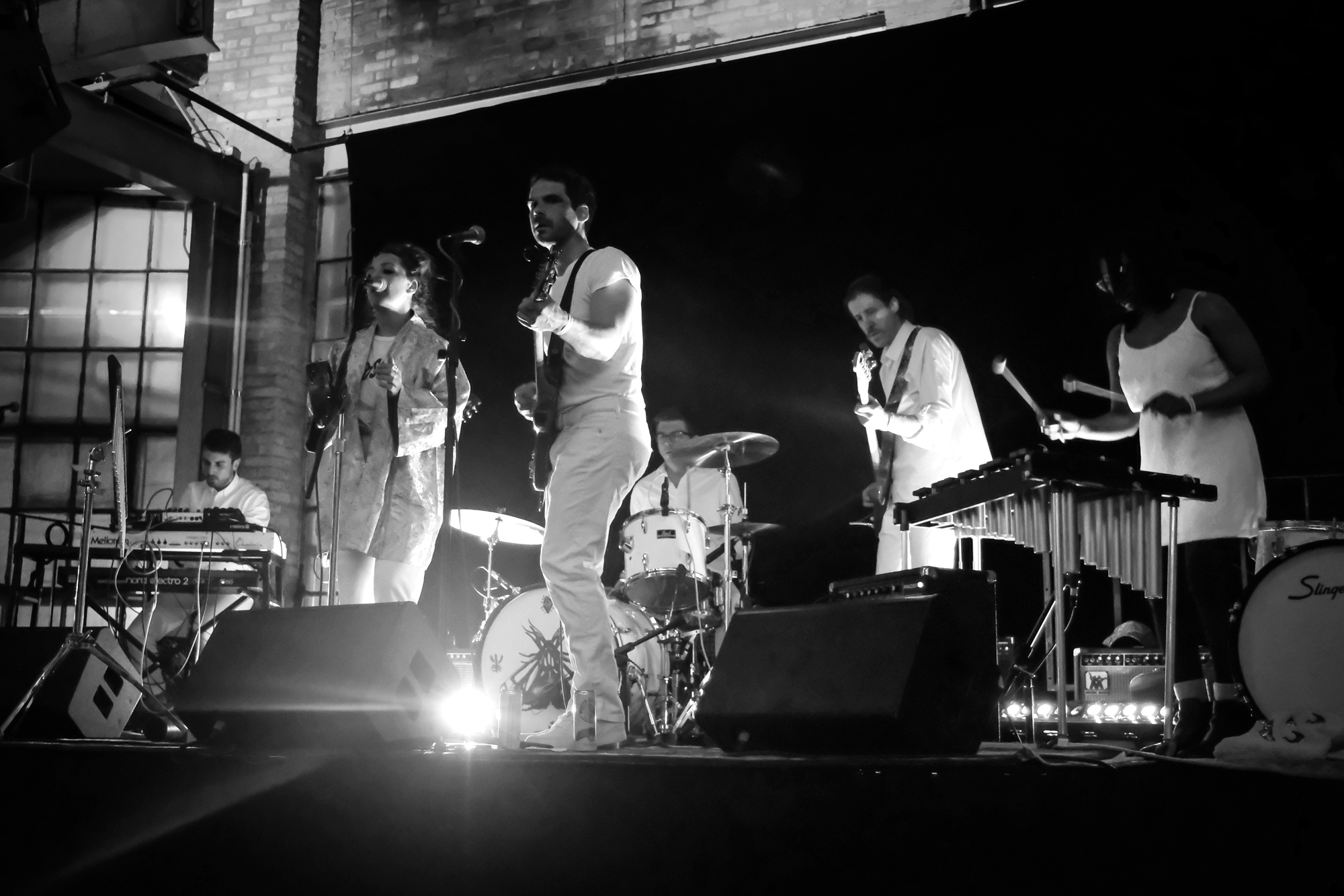 Milwaukee’s L’Resorts took the stage first, dressed all in white. The band bounced and swayed as they played through their set. They dub themselves as “tropical pop,” which made all the more sense with a marimba player right on stage. I don’t think I had seen a marimba played live until that night, and it only added to the cheerful feel of the night. The full sound of the marimba complimented singer Martha Cannon’s sweet vocals.