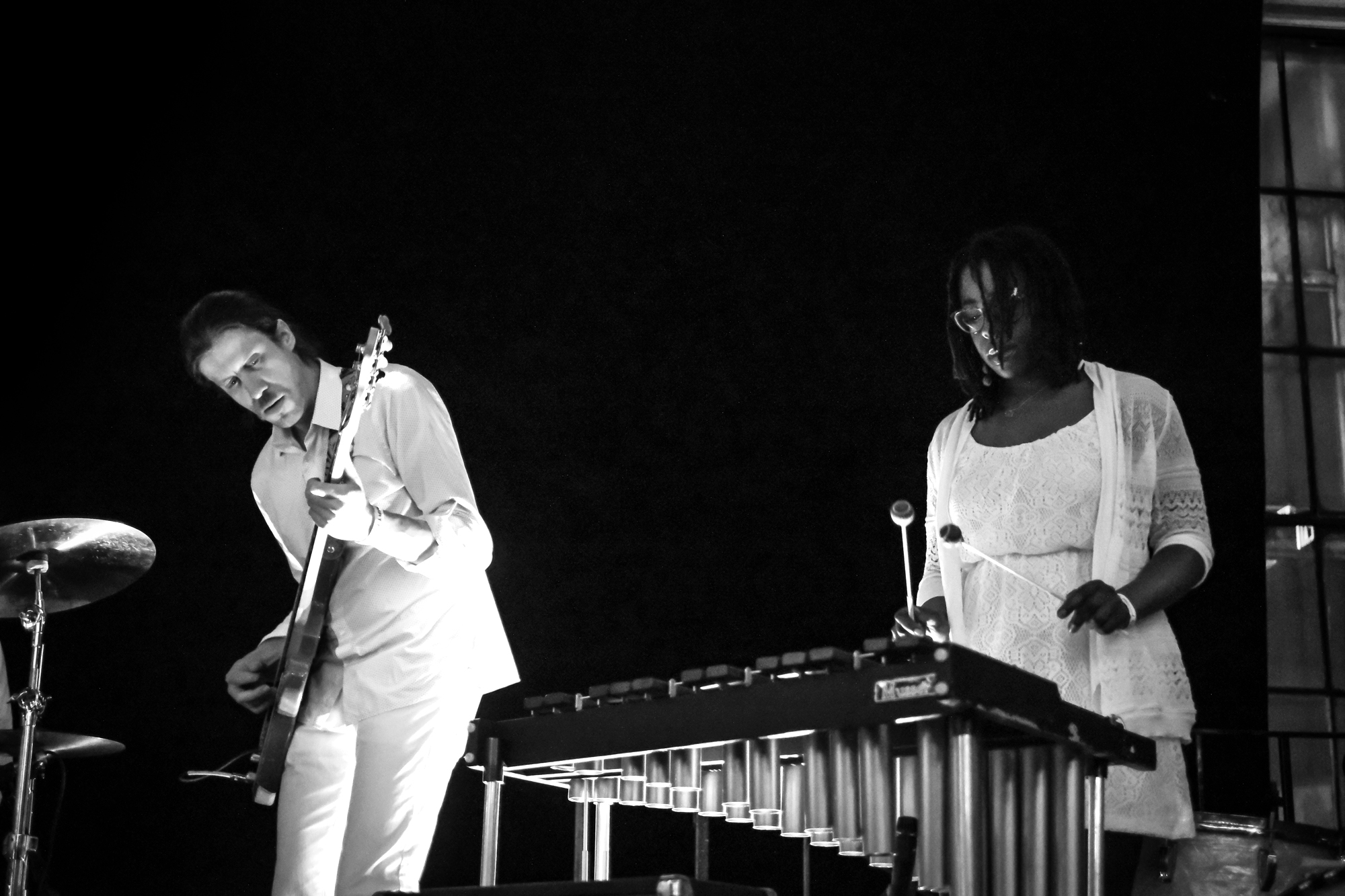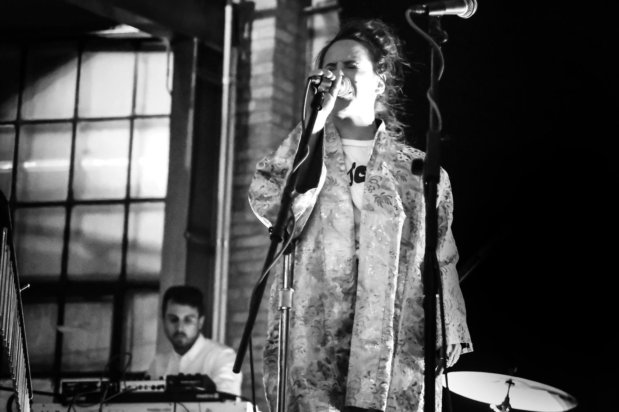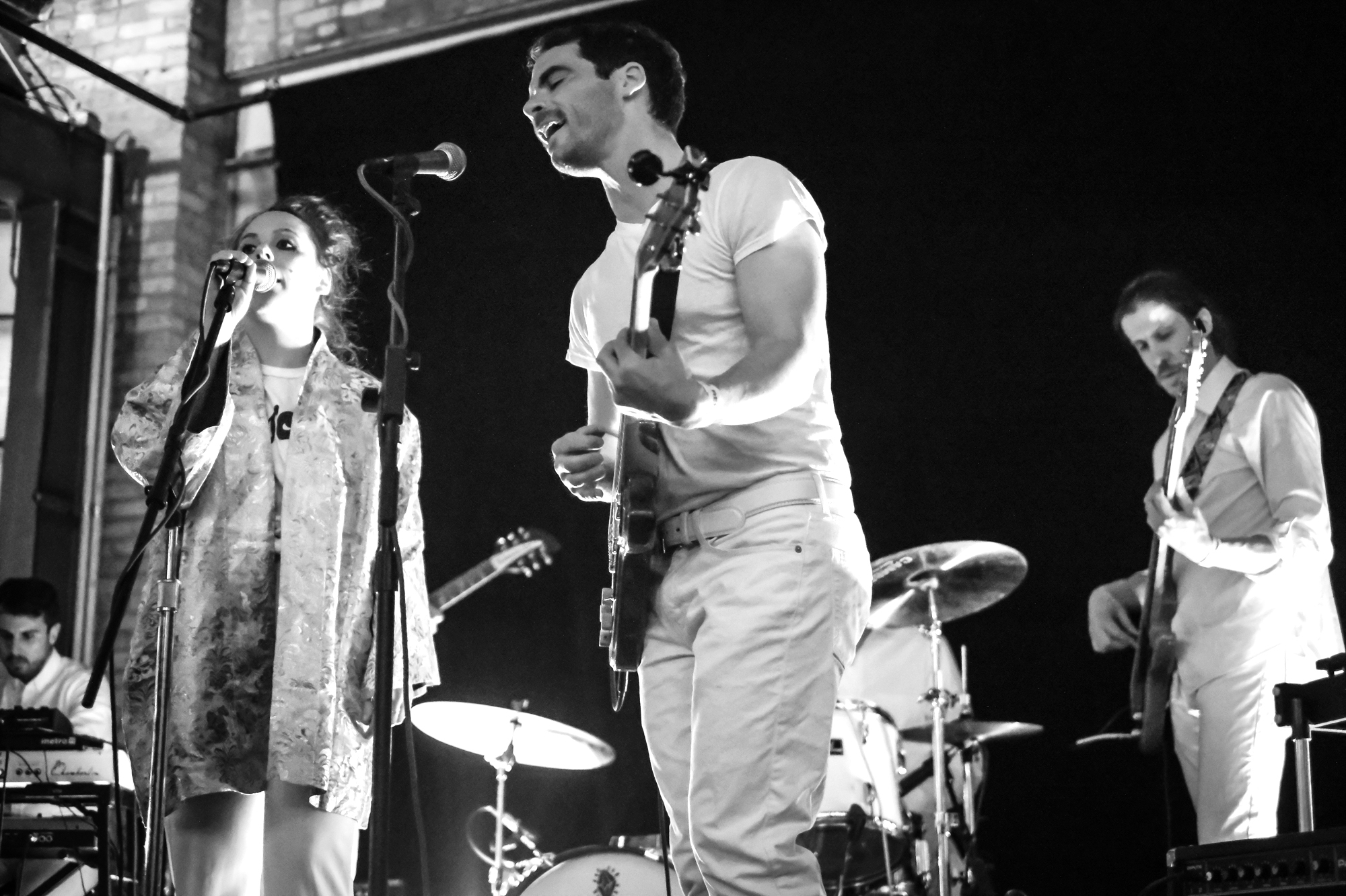 Milwaukee’s L’Resorts took the stage first, dressed all in white. The band bounced and swayed as they played through their set. They dub themselves as “tropical pop,” which made all the more sense with a marimba player right on stage. I don’t think I had seen a marimba played live until that night, and it only added to the cheerful feel of the night. The full sound of the marimba complimented singer Martha Cannon’s sweet vocals.