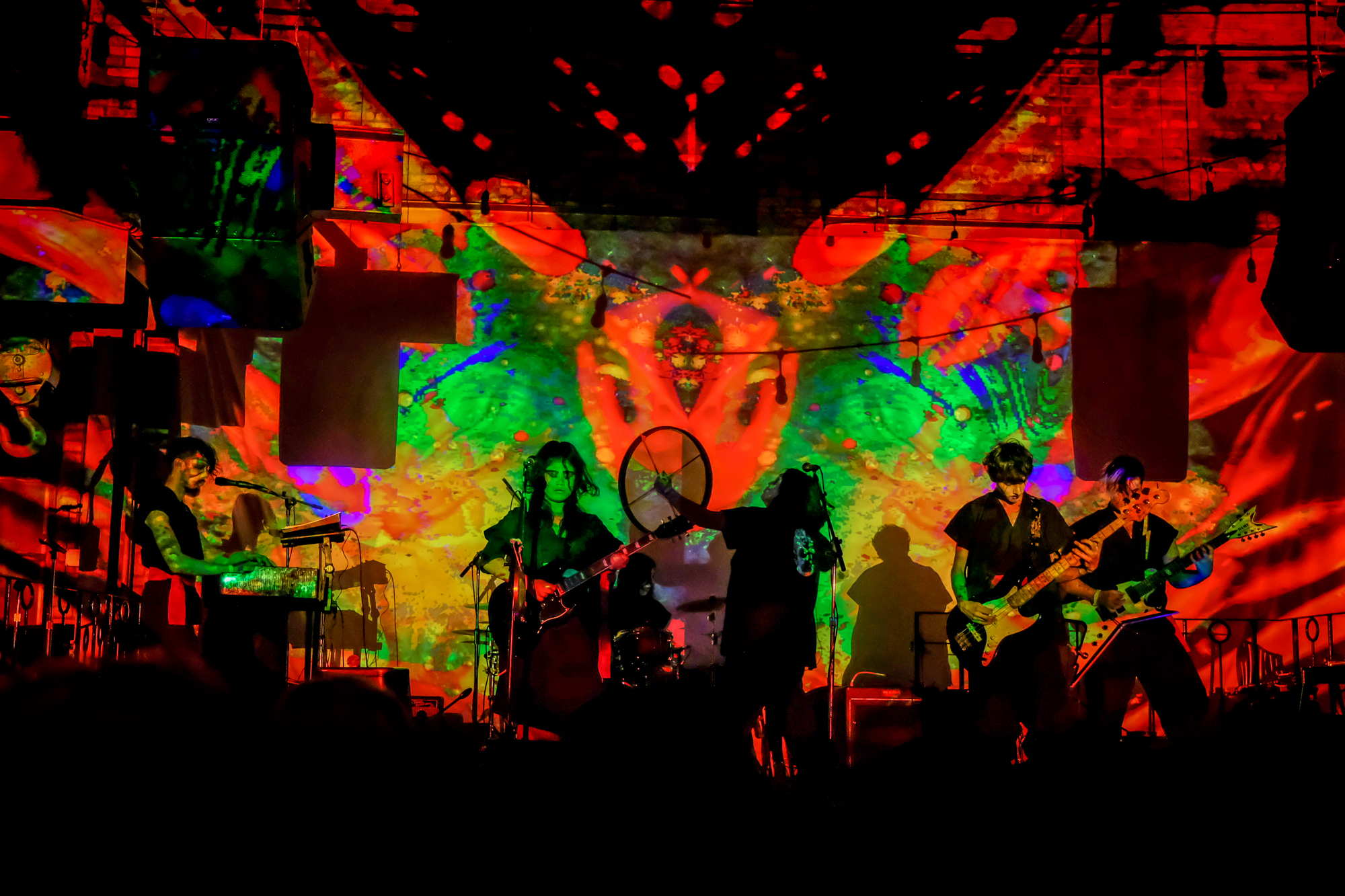 Even though art and music collective Yamantaka // Sonic Titan hail from Canada their live set feels like a psychedelic kabuki theater from another world. The band is a massive wall of guitars, drums, and energetic vocal harmonies that blur the line between heavy metal riffs and psych drones.