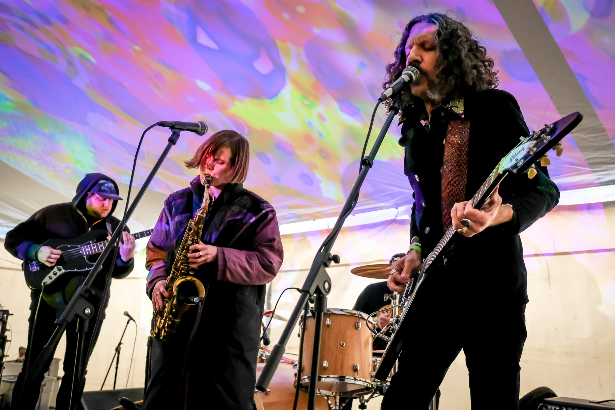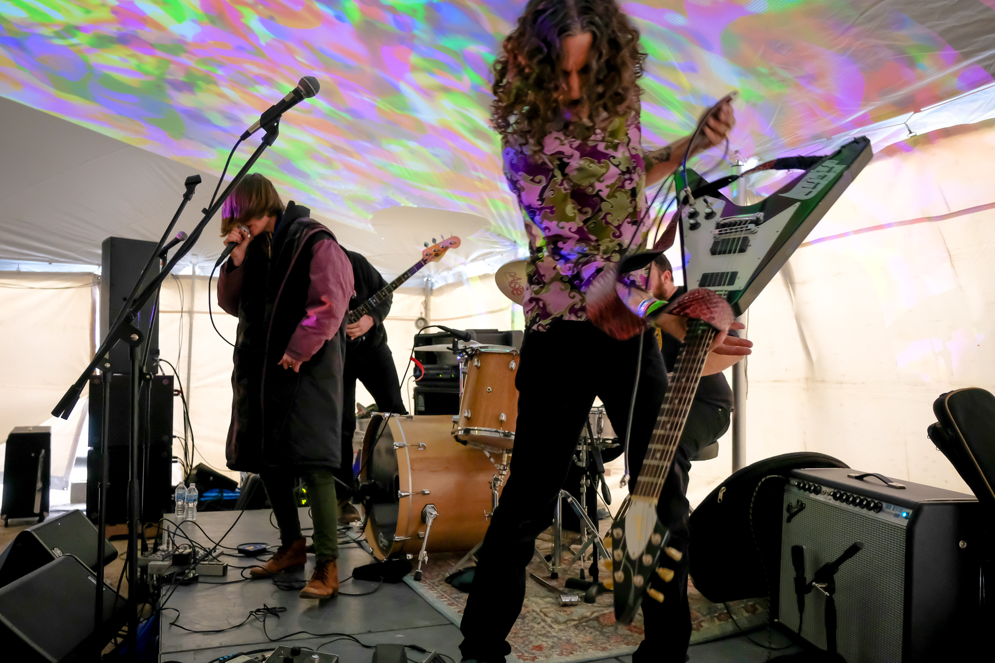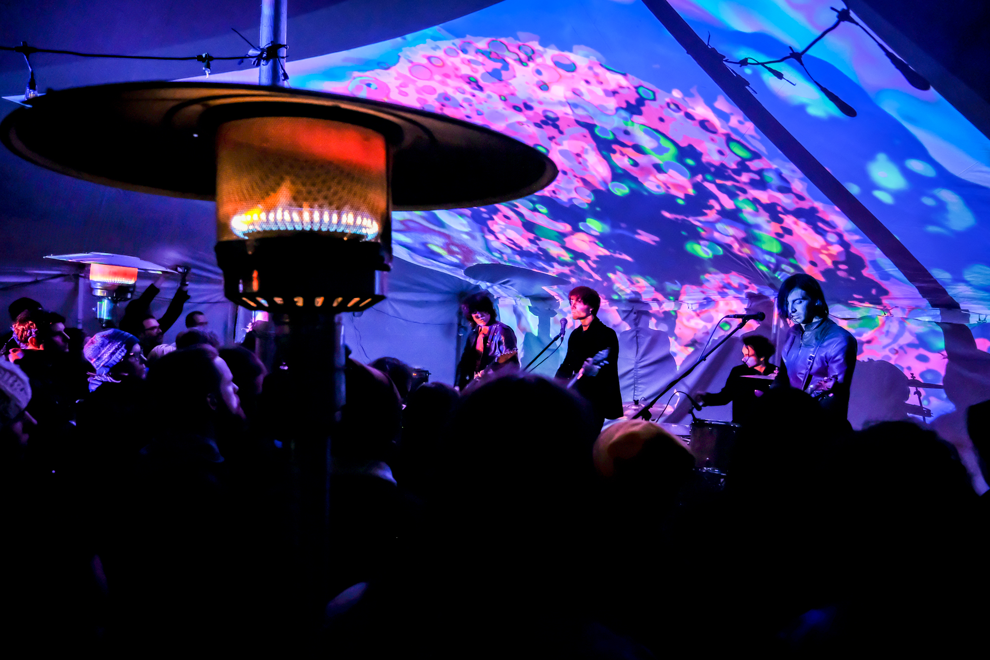 Back out on the Tent Stage, massive propane heaters were turned on and Chicago-favorites Plastic Crimewave Syndicate took the stage. Steven Krakow (AKA Plastic Crimewave) and his gang ripped through a set of heavy-psych jams culminating in an explosive Yoko Ono cover. I guess now we know why they call that guitar a “Flying” V.