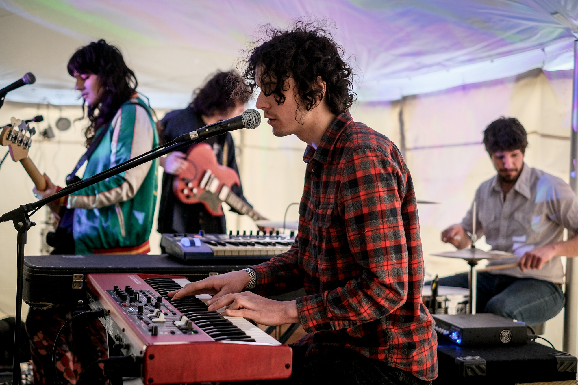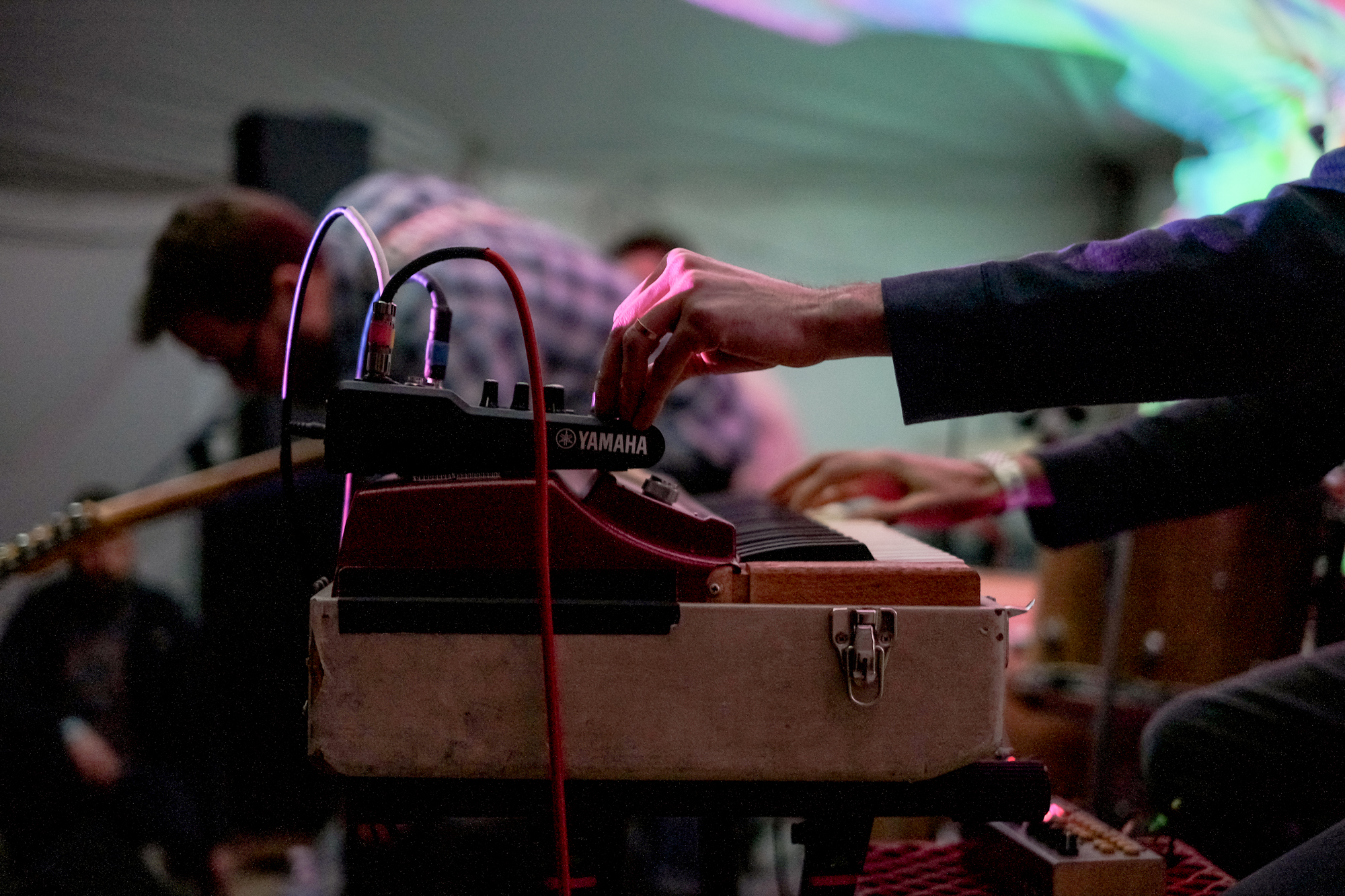 Normally a duo, Elkhorn was joined by members of Dire Wolves on drums and keys to add some extra vibes to their early evening set on the Tent Stage. The combination of acoustic 12-string guitar and electronic instruments took the band’s psych-folk sound to some new levels. A good portion of the crowd felt comfortable enough to take a seat near the heat lamps and let the music wash over them. The relaxed setting was a nice breather as the night ramped up to the headlining sets.