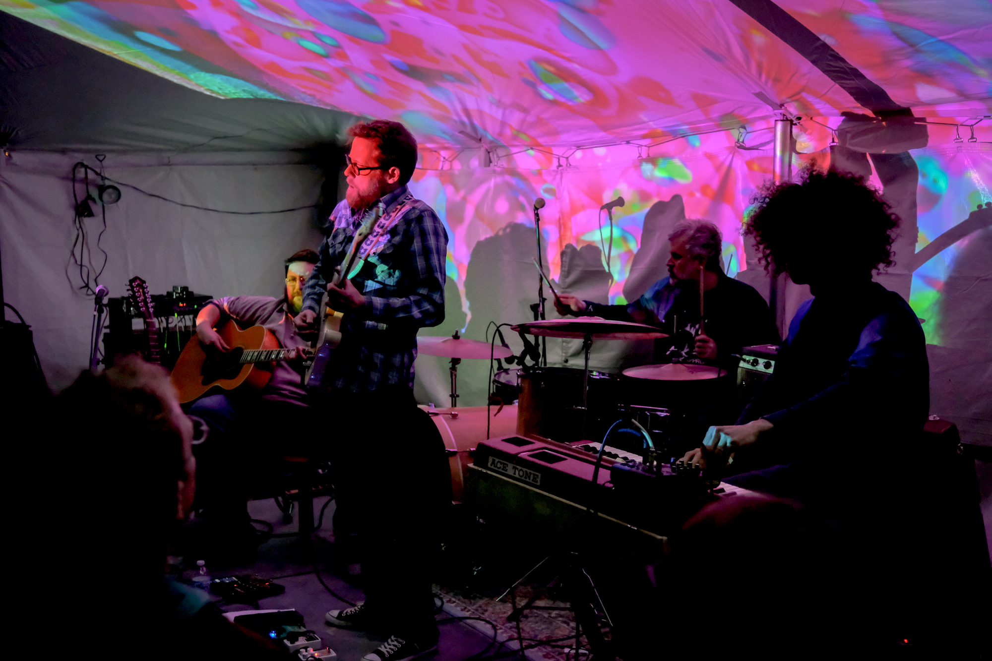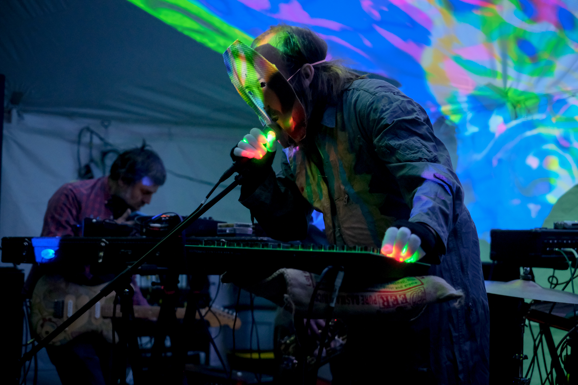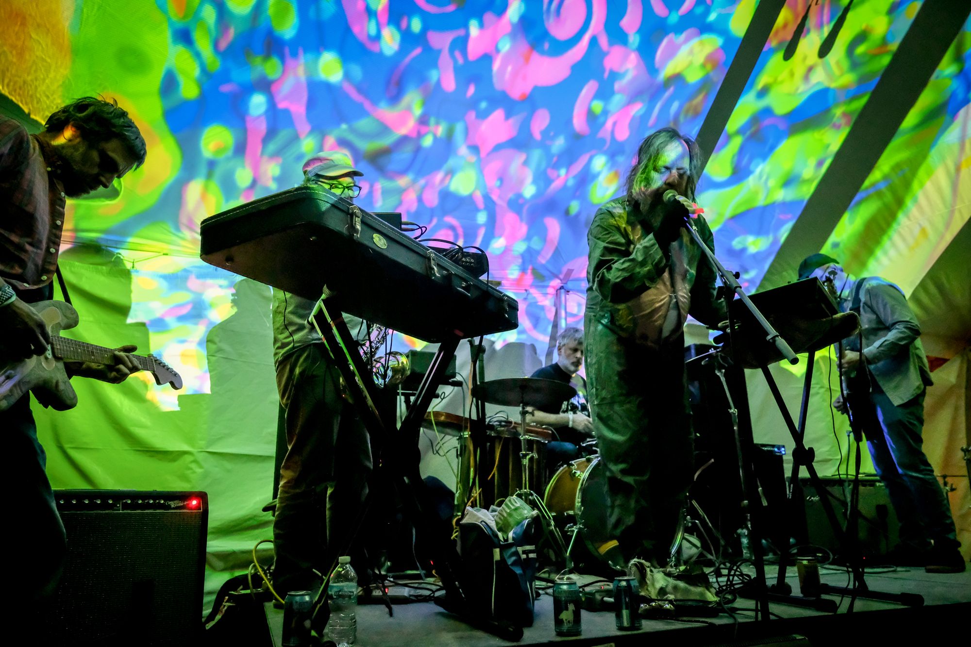 Bringing some much needed “weirdness” to the lineup—experimental psych legends Sunburned Hand of the Man took the outdoor stage complete with light up cloves and masks. Two of the guitar players were delegated to the floor of the tent due to the size of the band but that didn’t stop them from creating some avant-garde jams. The Massachusetts band is more of a collective featuring a wide variety of collaborators and a deep catalog of releases with plenty noise-rock royalty in tow.