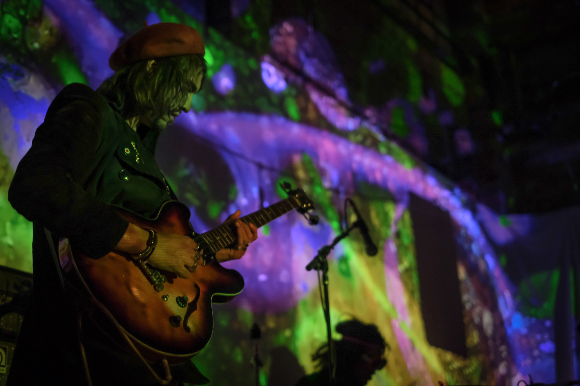 The Mad Alchemy Light Show was in full force when we returned inside for Garcia Peoples‘ set. As their name suggests, the New Jersey band create Grateful Dead-inspired jams that seemed to become one with the visuals behind them. They’re much more than a bunch of Dead-heads though, the band gets into some serious psychedelic territory and finds some high energy grooves that are hard to ignore.